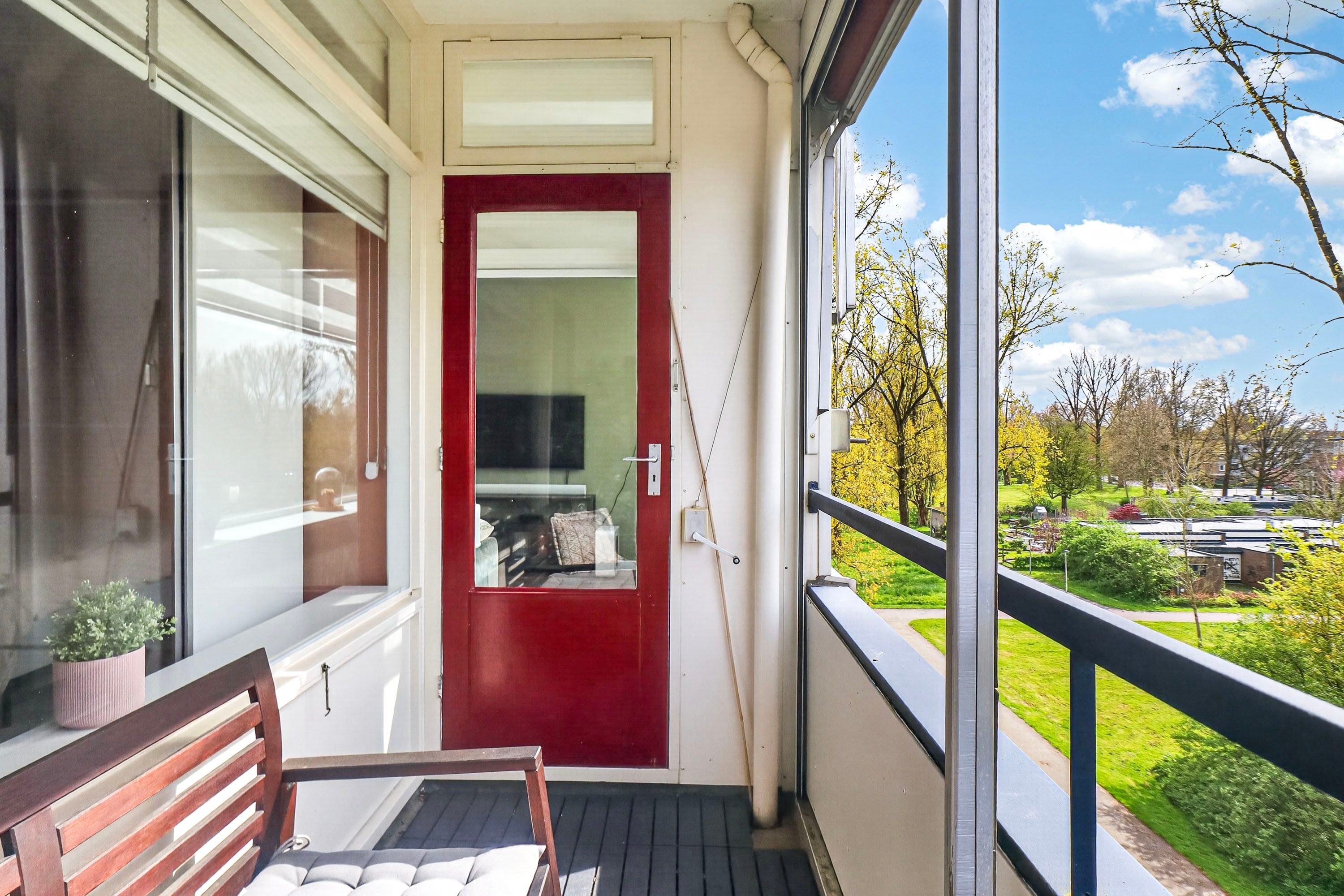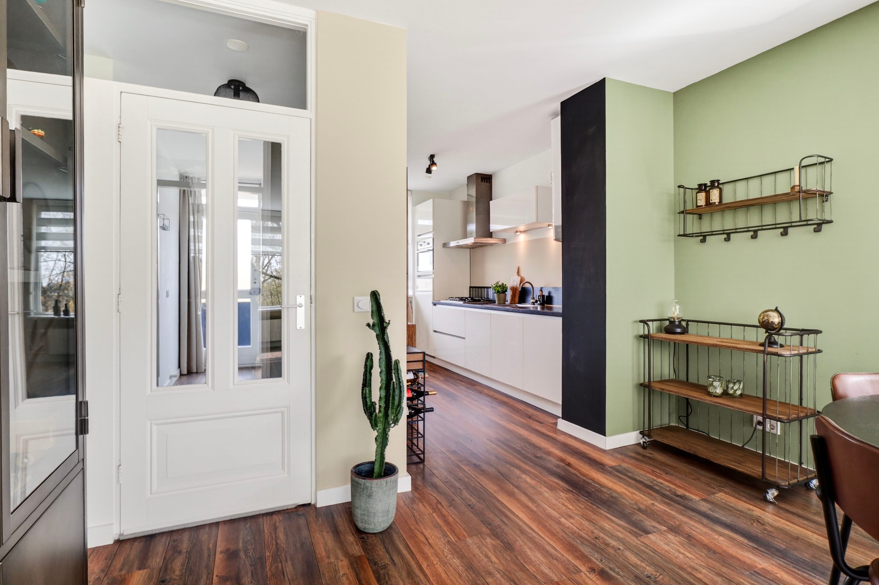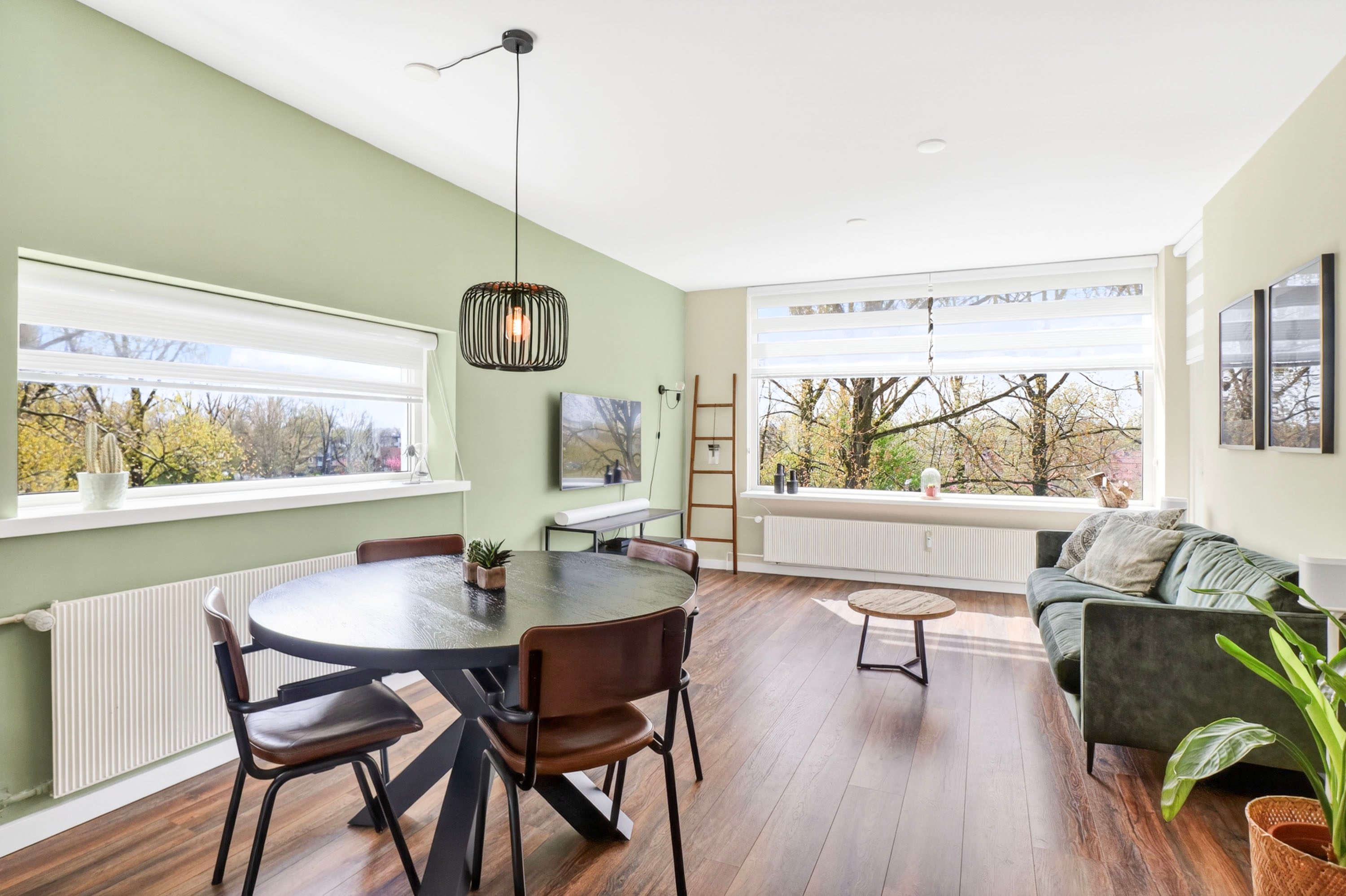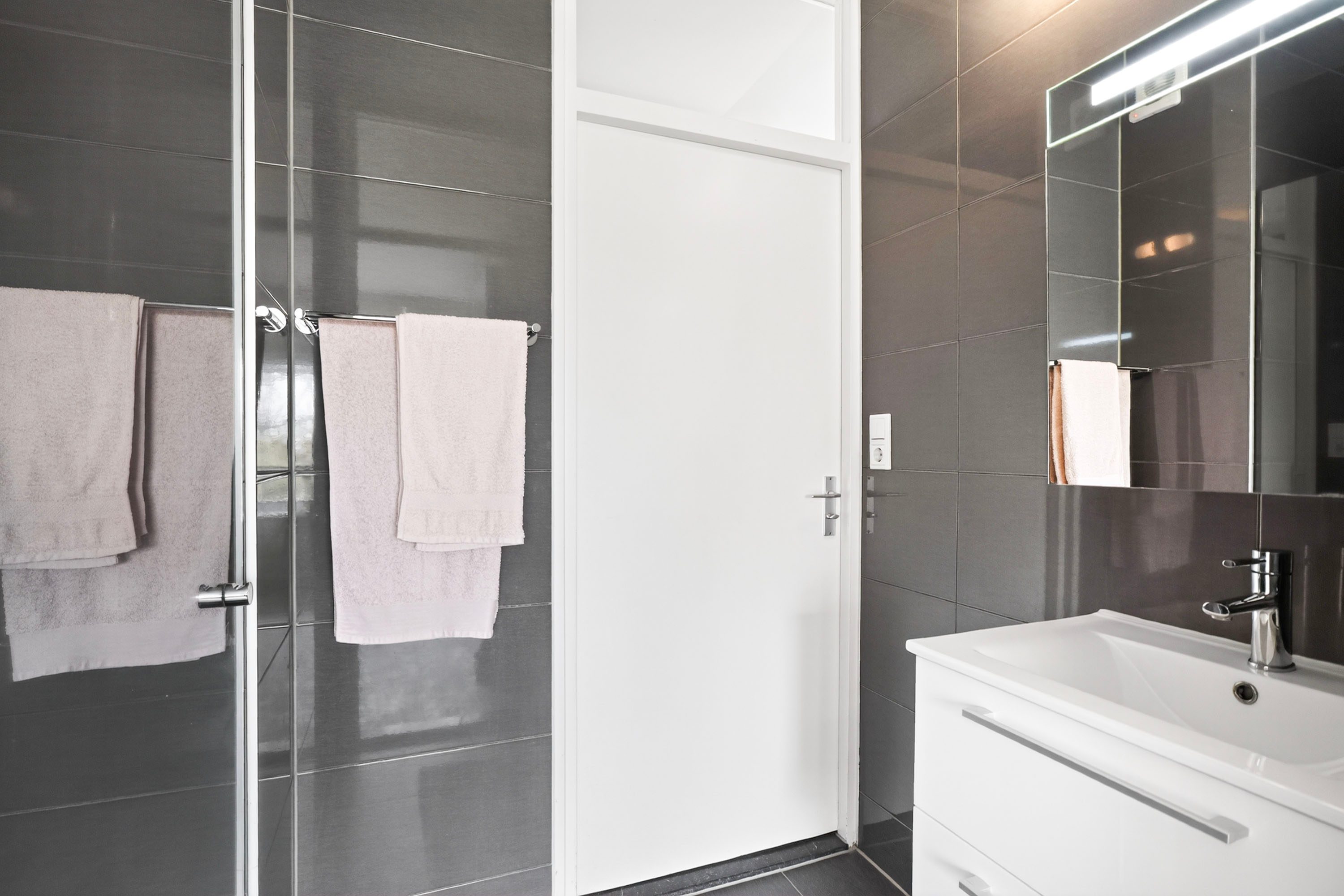 De ruime hal met meterkast geeft je toegang tot alle vertrekken. De lichte woonkamer is voorzien van een laminaatvloer en dankzij de grote raampartijen geniet je hier van veel lichtinval en een fraai, vrij uitzicht. Met een oppervlakte van circa 25 m² biedt de woonkamer volop ruimte voor een gezellige zithoek en een eettafel. Vanuit de woonkamer bereik je het balkon, waar je uitkijkt over een groene omgeving en dankzij de hoge ligging geniet je van een weids uitzicht. Een fijne plek om tot rust te komen en van het buitenleven te genieten. De hoekligging zorgt bovendien voor een extra raam, wat de woning voorziet van nog meer daglicht. De moderne keuken heeft een lichte uitstraling en is uitgerust met diverse inbouwapparatuur, waaronder een koel-vriescombinatie, gasfornuis, afzuigkap, vaatwasser en een combi-oven/magnetron.