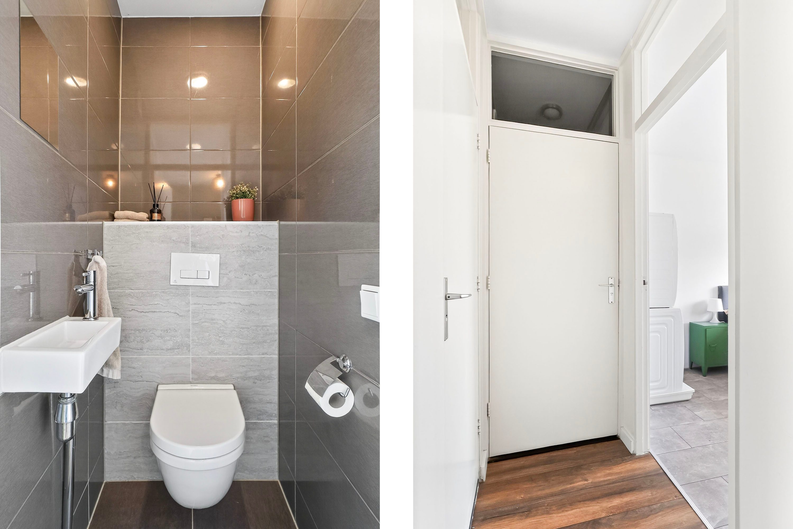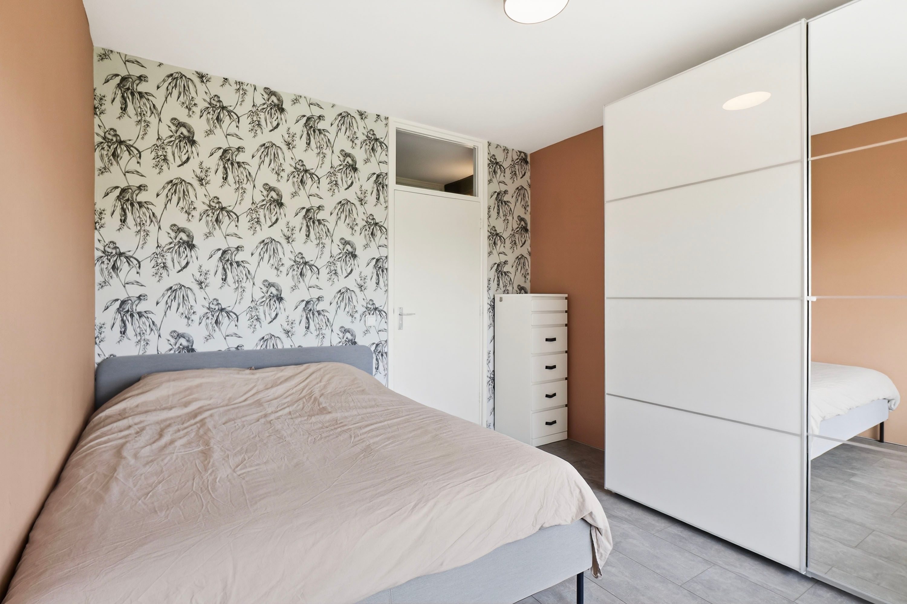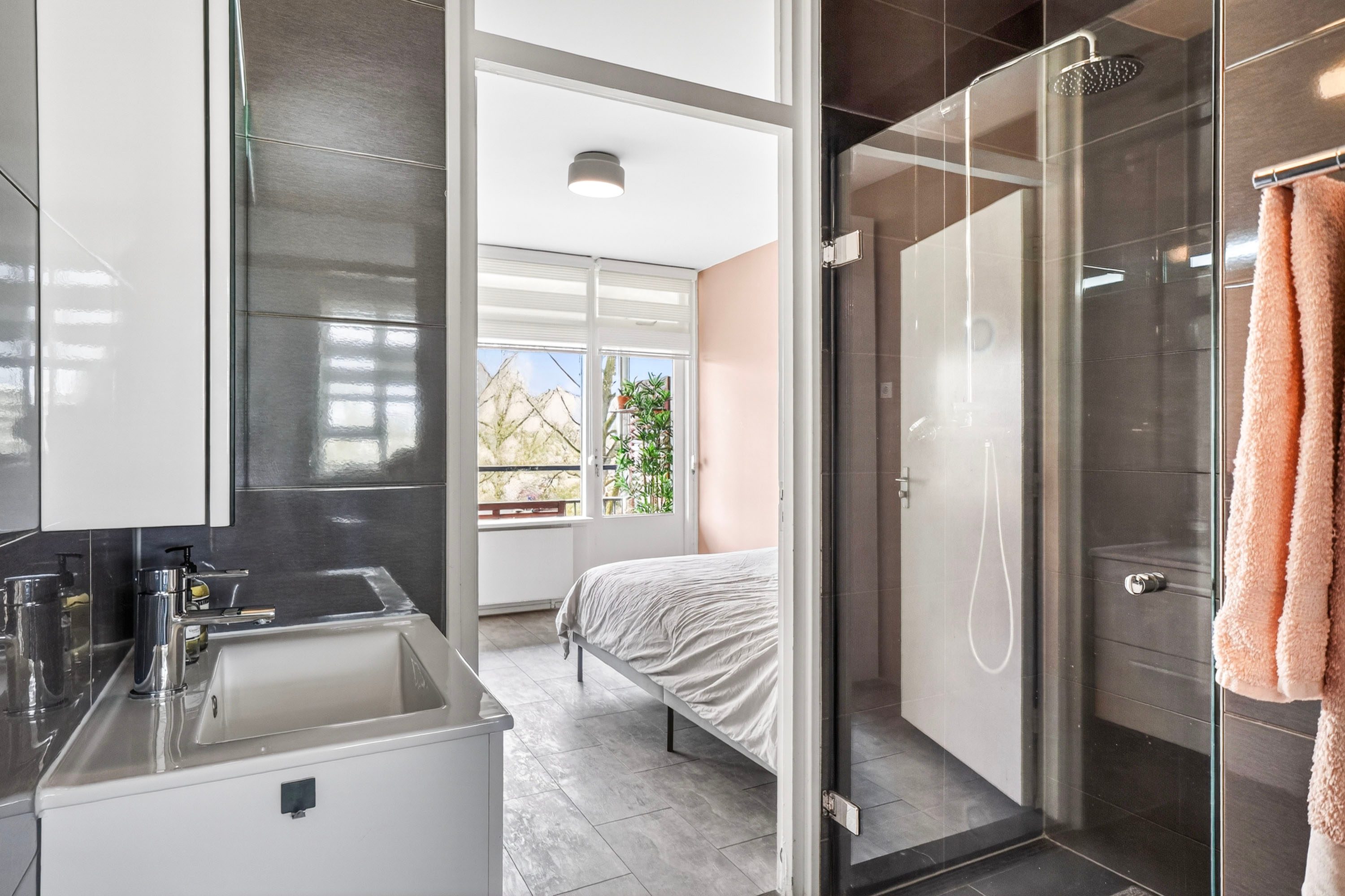 De twee slaapkamers hebben een oppervlakte van circa 12 m² en 7 m². Beide kamers zijn voorzien van een laminaatvloer en hebben een prettige lichtinval. De grootste slaapkamer biedt toegang tot het fijne balkon op het zonnige zuidwesten. De badkamer, voorzien van een douche en wastafelmeubel, is zowel vanuit de hal als vanuit de grootste slaapkamer bereikbaar. Daarnaast is er een separate toiletruimte aanwezig.