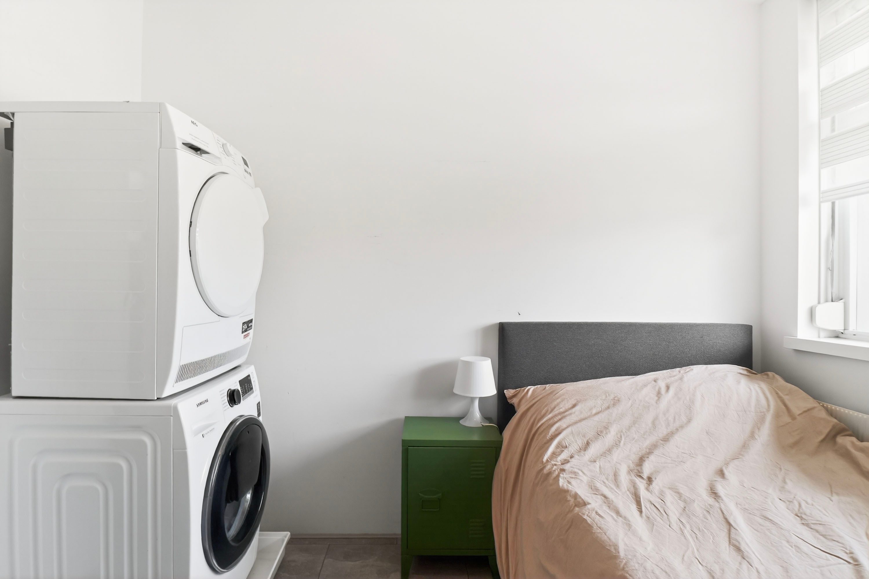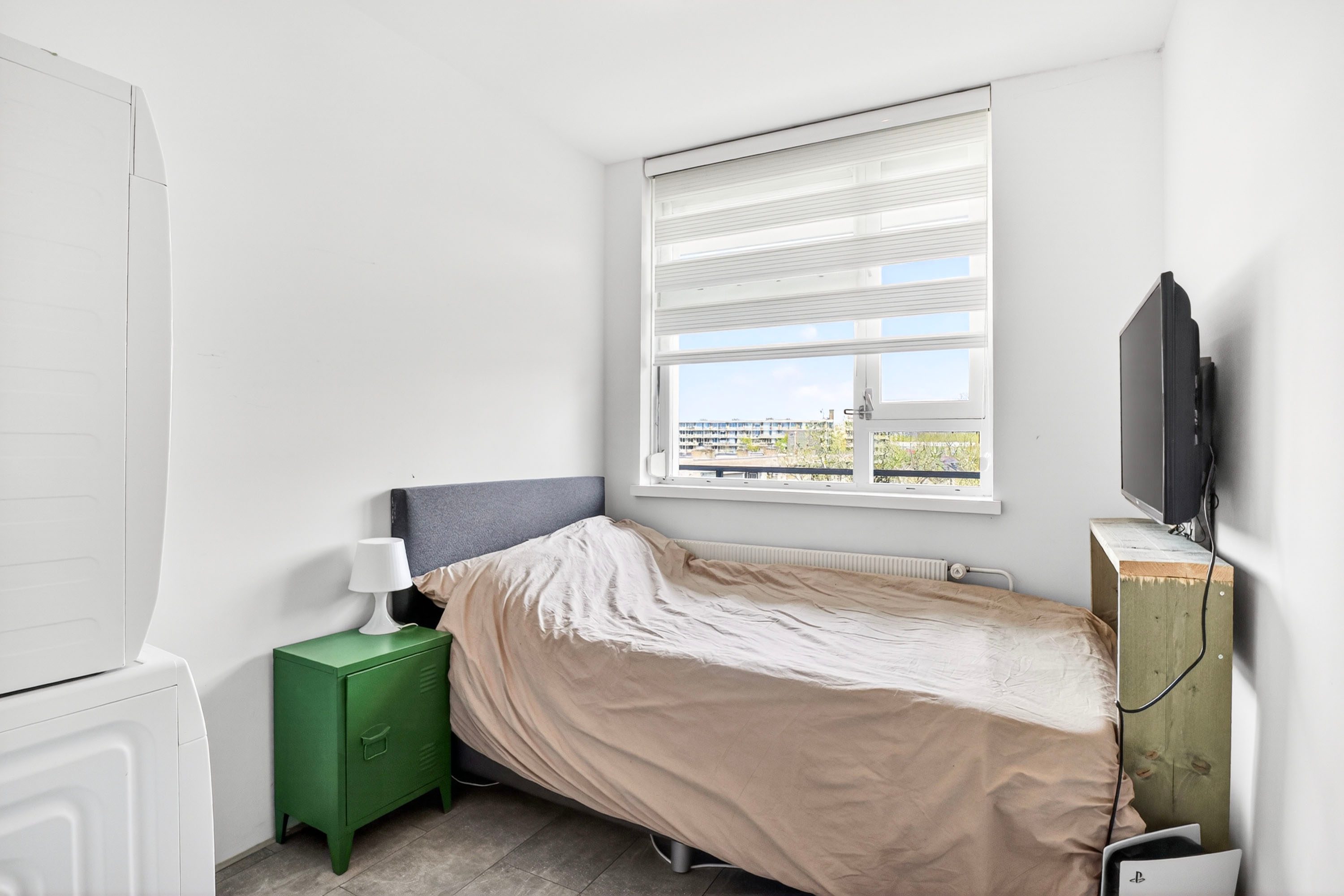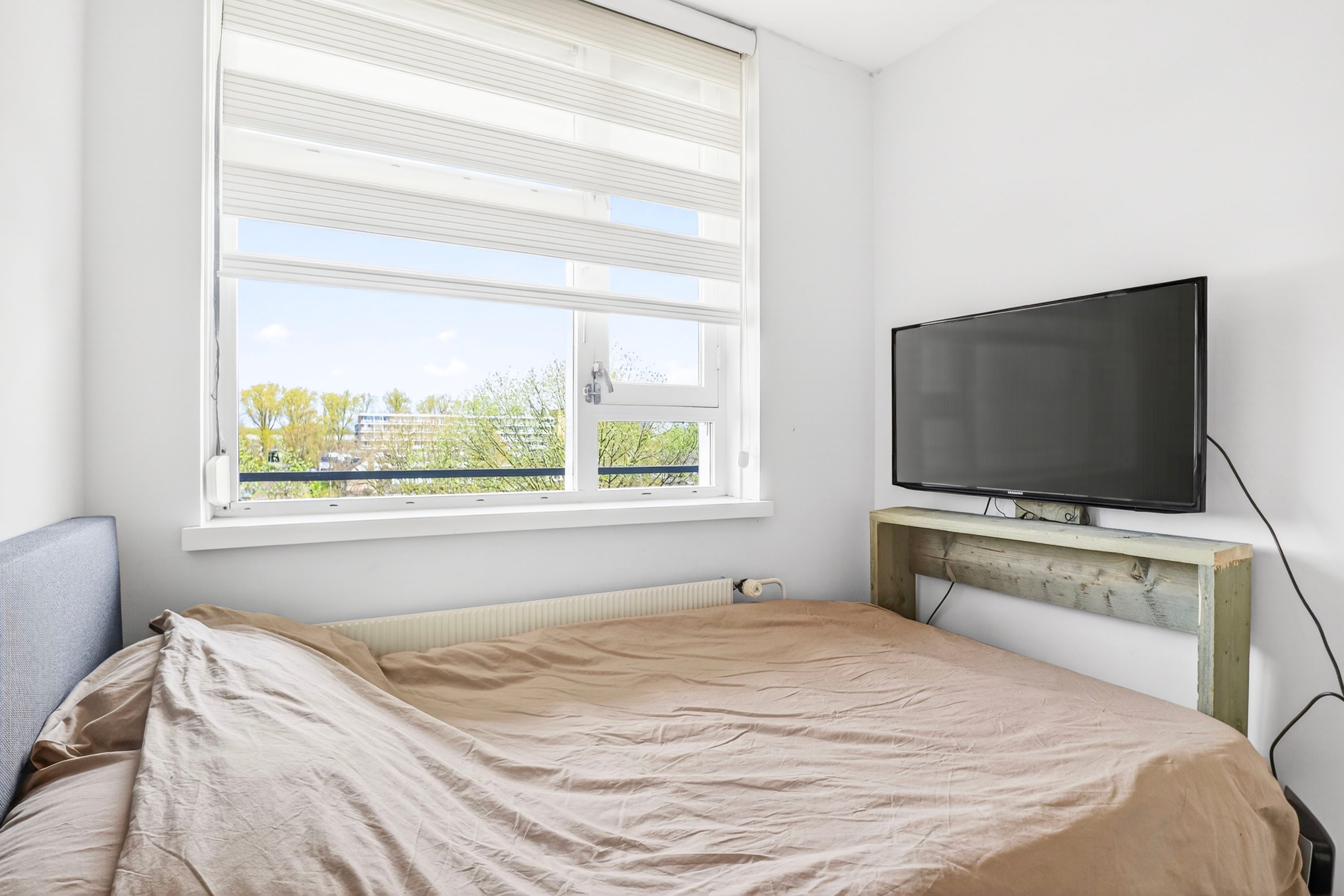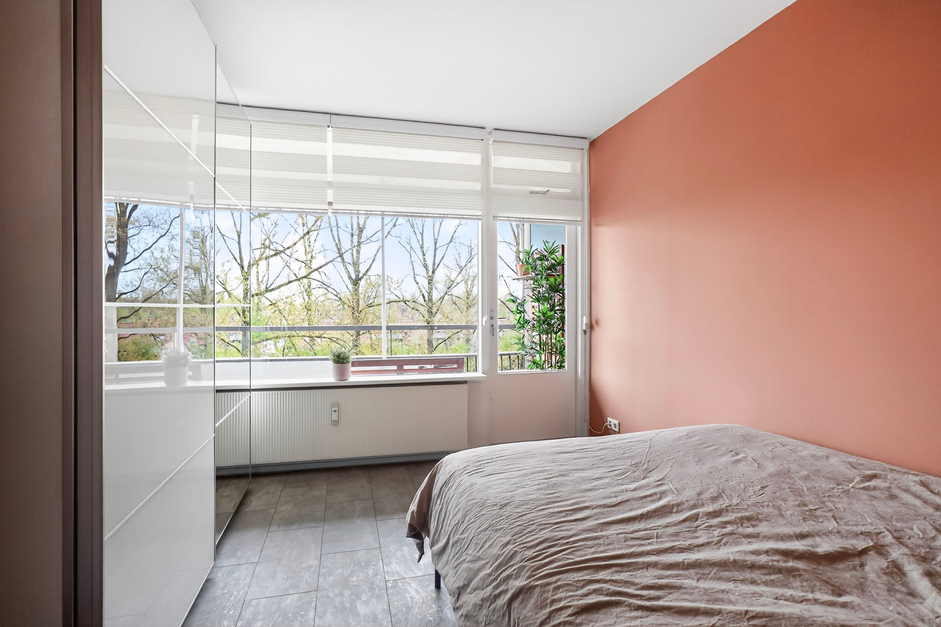 De twee slaapkamers hebben een oppervlakte van circa 12 m² en 7 m². Beide kamers zijn voorzien van een laminaatvloer en hebben een prettige lichtinval. De grootste slaapkamer biedt toegang tot het fijne balkon op het zonnige zuidwesten. De badkamer, voorzien van een douche en wastafelmeubel, is zowel vanuit de hal als vanuit de grootste slaapkamer bereikbaar. Daarnaast is er een separate toiletruimte aanwezig.