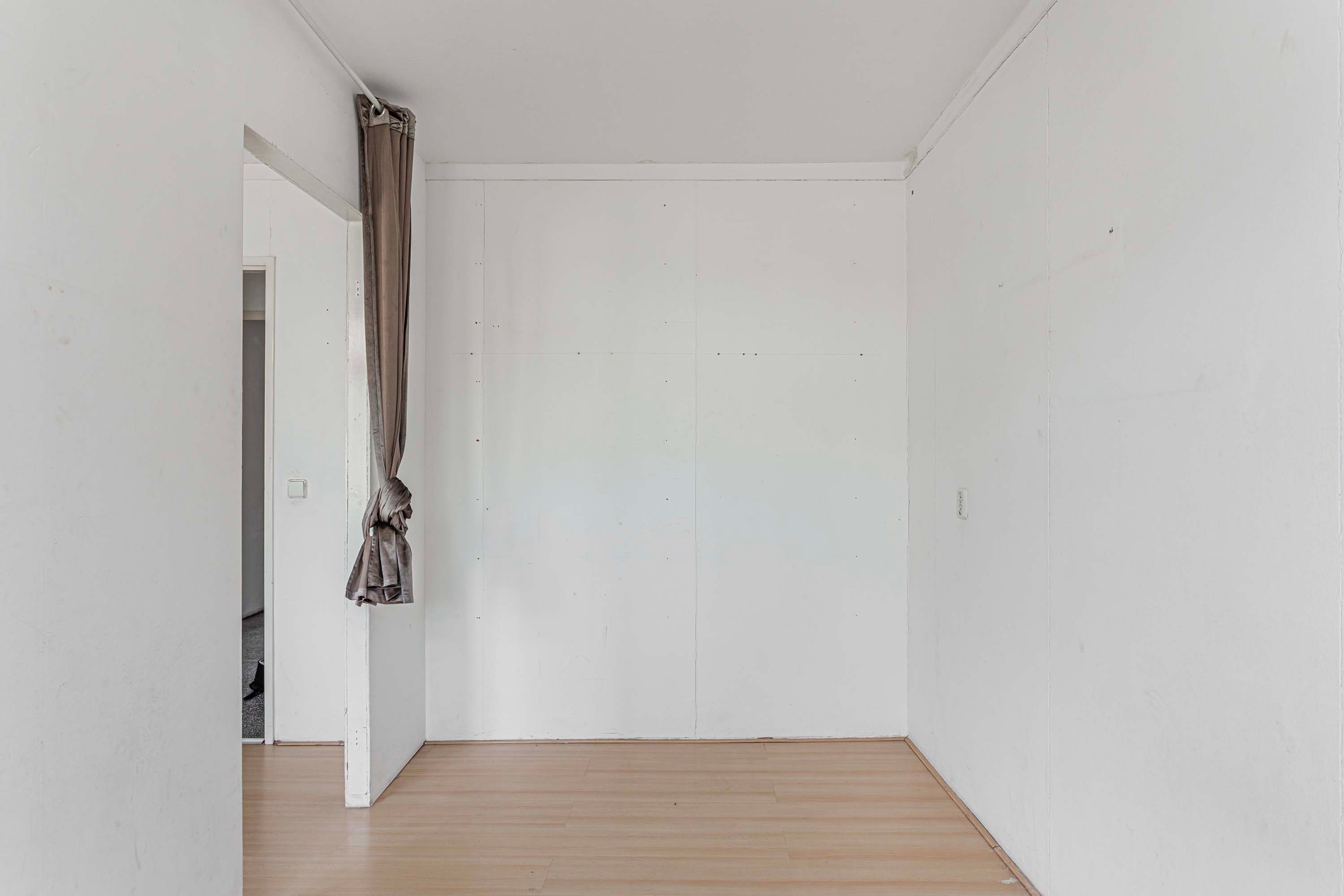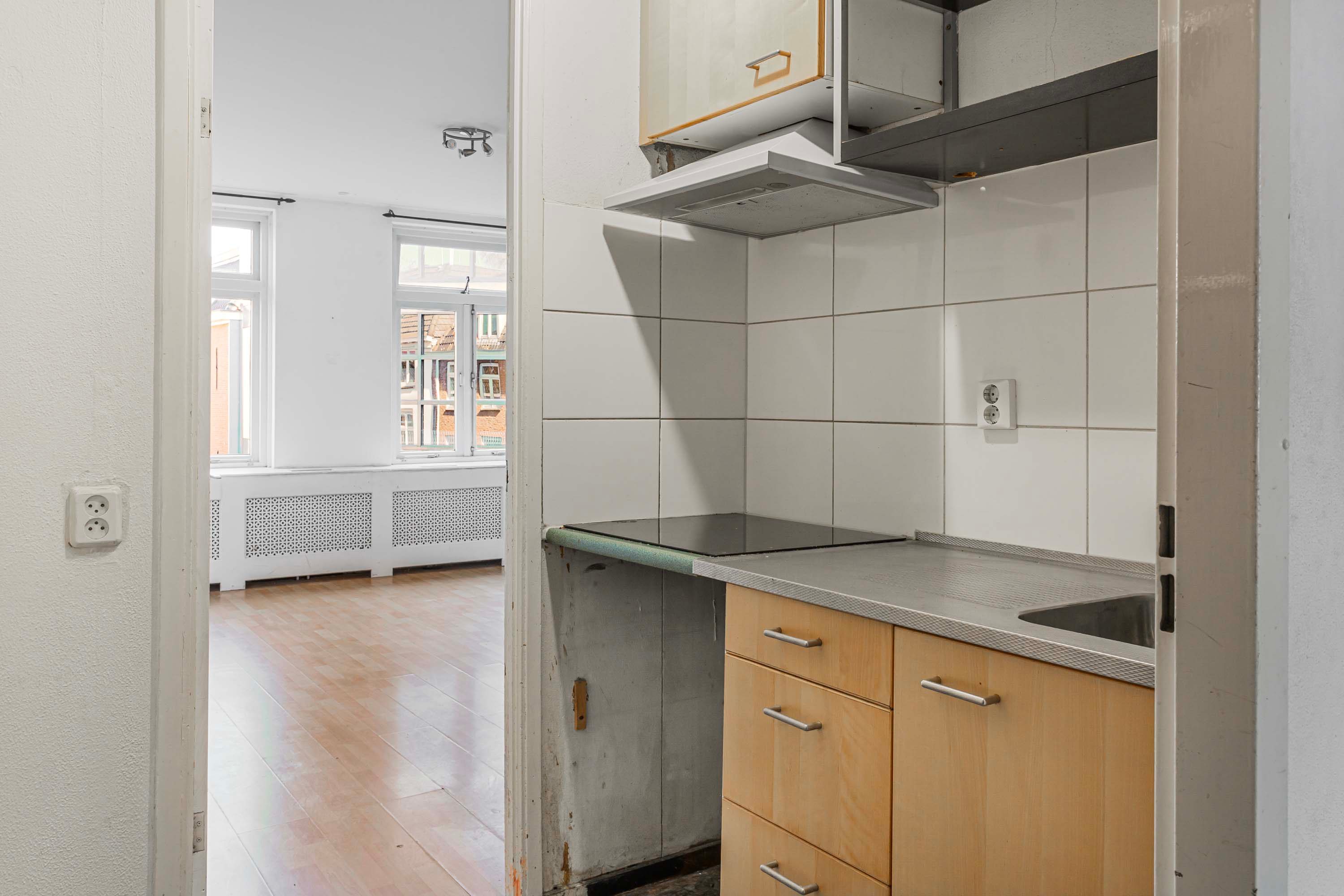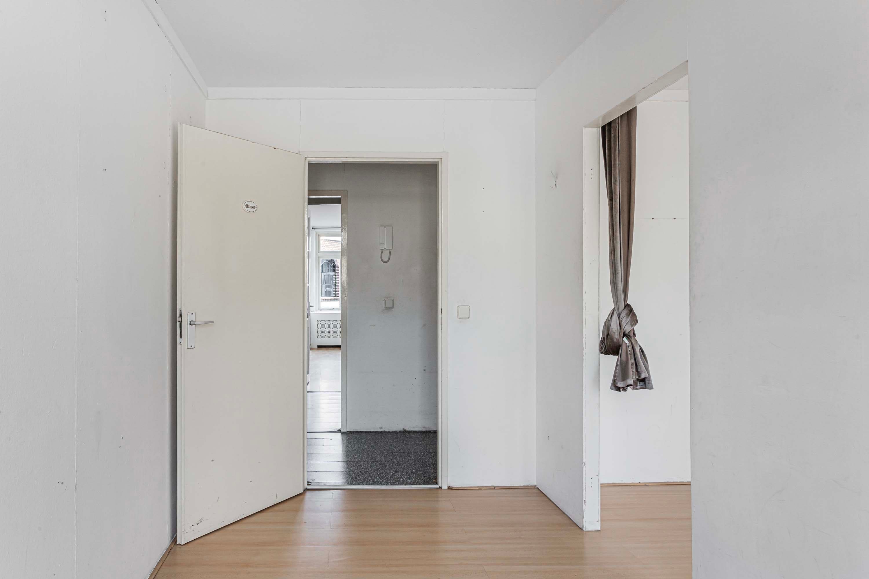 Via de entree stap je het appartement binnen. Vanuit hier heb je direct toegang tot de centraal gelegen keuken en toegang biedt tot de woonkamer. De keuken is uitgerust met een eenvoudig keukenblok, voorzien van een kookplaat, afzuigkap en spoelbak. Aan de achterzijde bevindt zich de lichte woonkamer (ca. 17 m²), waar twee raampartijen zorgen voor een mooie lichtinval en een open, aangename sfeer. Vanuit hier kijk je richting de binnenstad, terwijl de ruimte zich uitstekend leent voor een gezellige zithoek en een eettafel, waardoor je de woonkamer sfeervol en praktisch kunt inrichten. Aan de voorzijde bevinden zich twee slaapkamers van vergelijkbare grootte (ca. 7,8 m² en 7,9 m²). Dankzij de ligging bieden deze kamers een leuk uitzicht richting de Nelson Mandelabrug. Beide ruimtes zijn praktisch in te richten en lenen zich uitstekend voor een comfortabele slaapkamer met inloopkast en fijne thuiswerkplek. De badkamer is compact en voorzien van een douche, toilet en wastafel. Daarnaast is er een separate berging van ca. 2 m² aanwezig, ideaal voor het plaatsen van de wasmachine én het creëren van extra opbergruimte voor voorraad, schoonmaakspullen of andere spullen die je graag uit het zicht bewaart.
