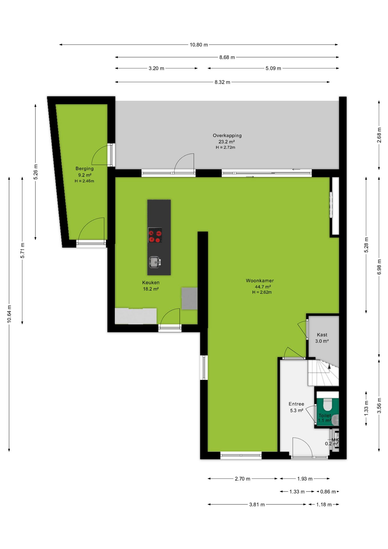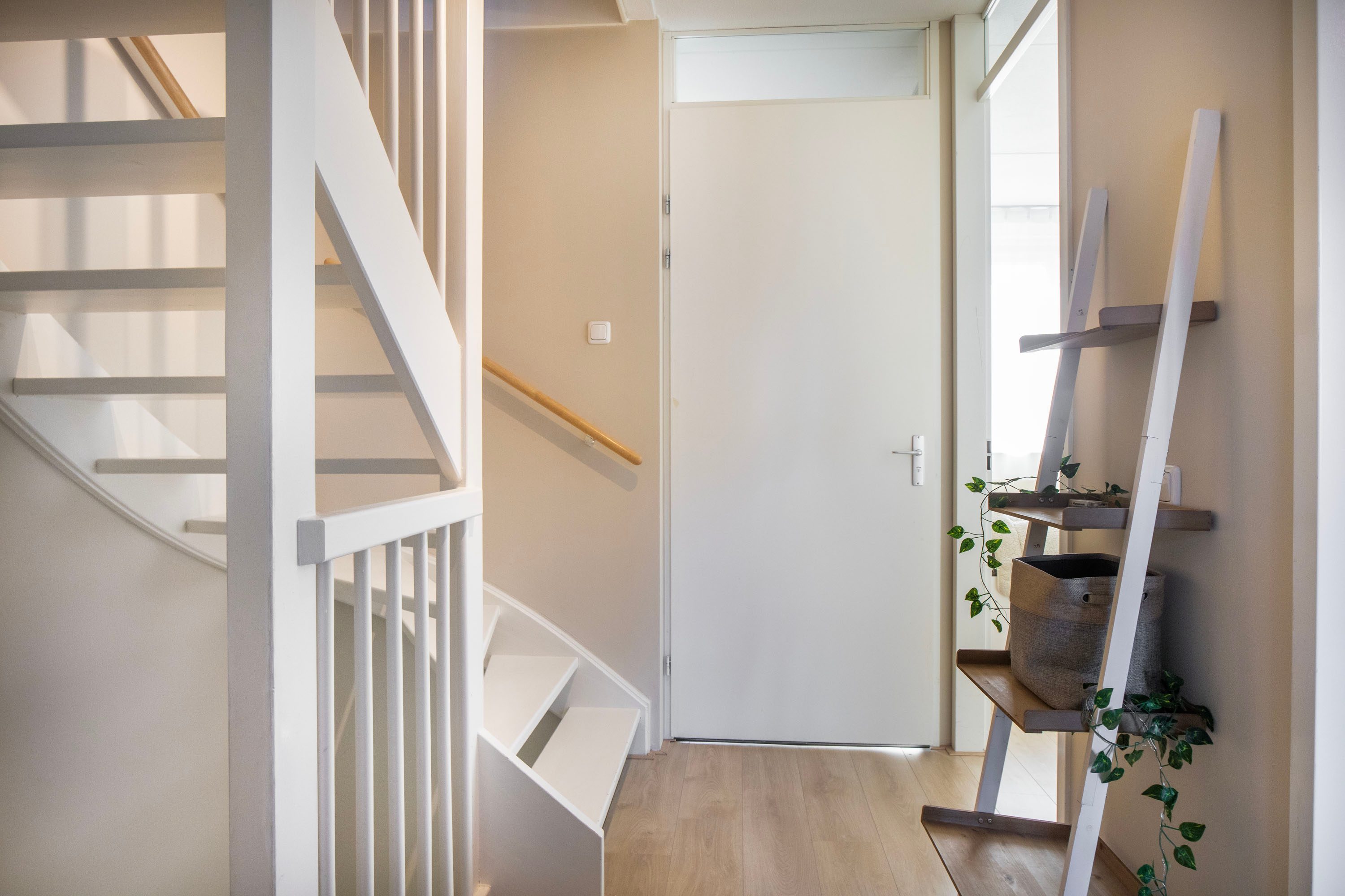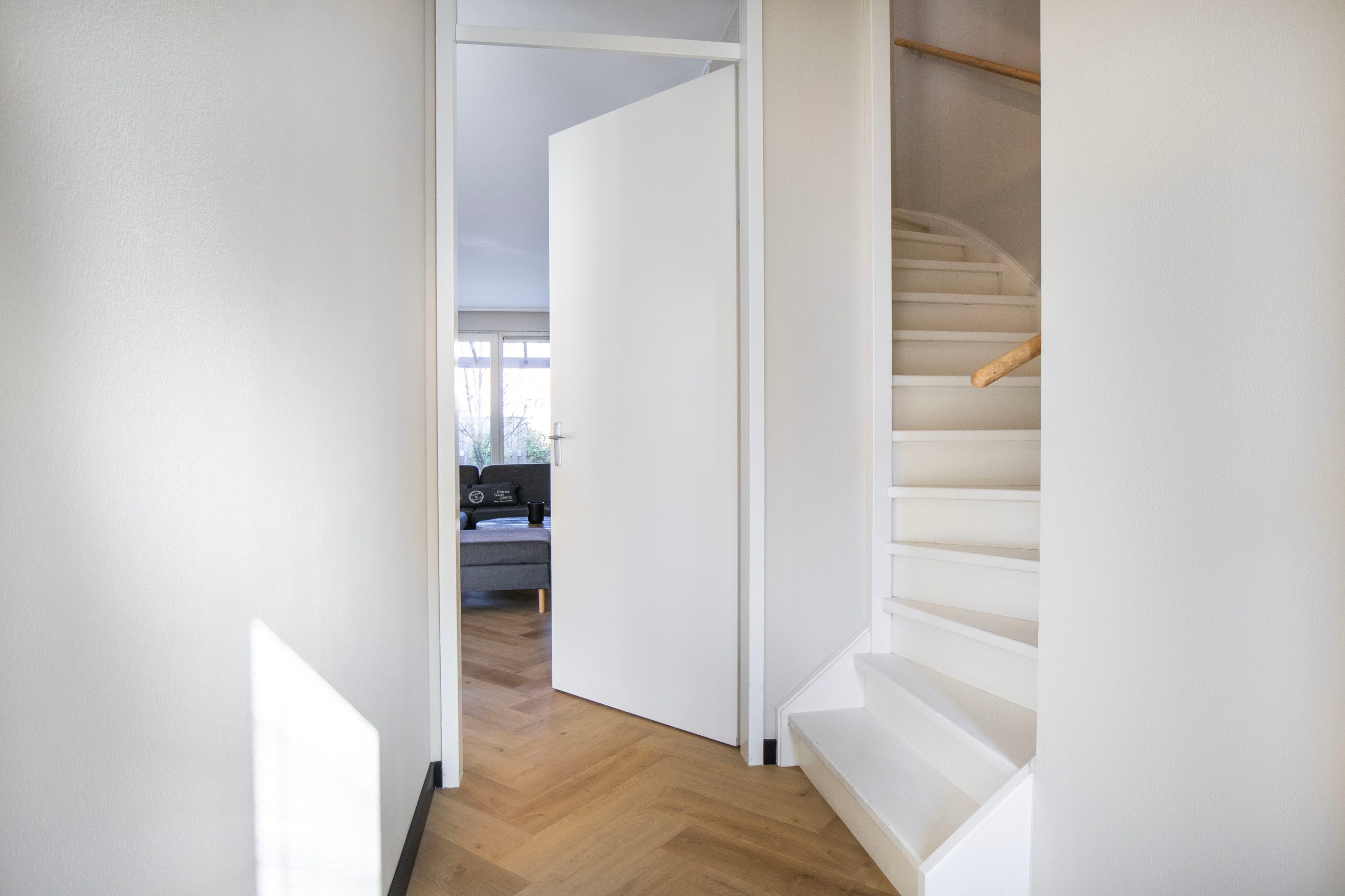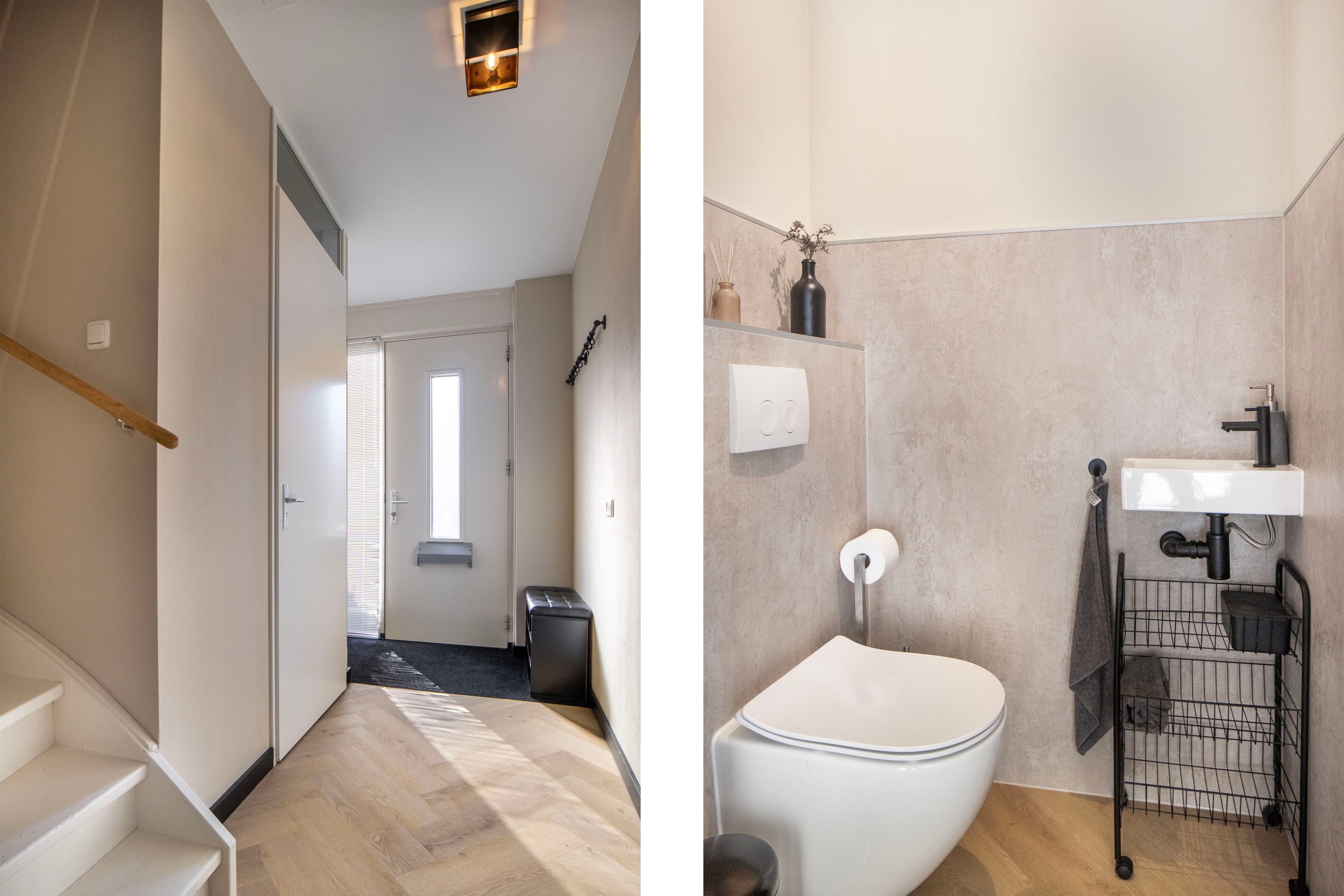 Je komt binnen in een nette hal met een modern afgewerkt toilet. Vanuit hier stap je de ruime woonkamer binnen, waar de sfeervolle visgraatvloer met vloerverwarming direct zorgt voor een warme en stijlvolle uitstraling. Aan de tuinzijde is een comfortabele zithoek ingericht, compleet met een sfeervolle ethanolhaard en een strakke houten lattenwand, een echte blikvanger. Dankzij de grote raampartijen en de schuifpui geniet je hier de hele dag van een prachtige lichtinval en een naadloze verbinding met de tuin. Aan de voorzijde van de woning bevindt zich een ideale plek voor een werk- of speelgedeelte.