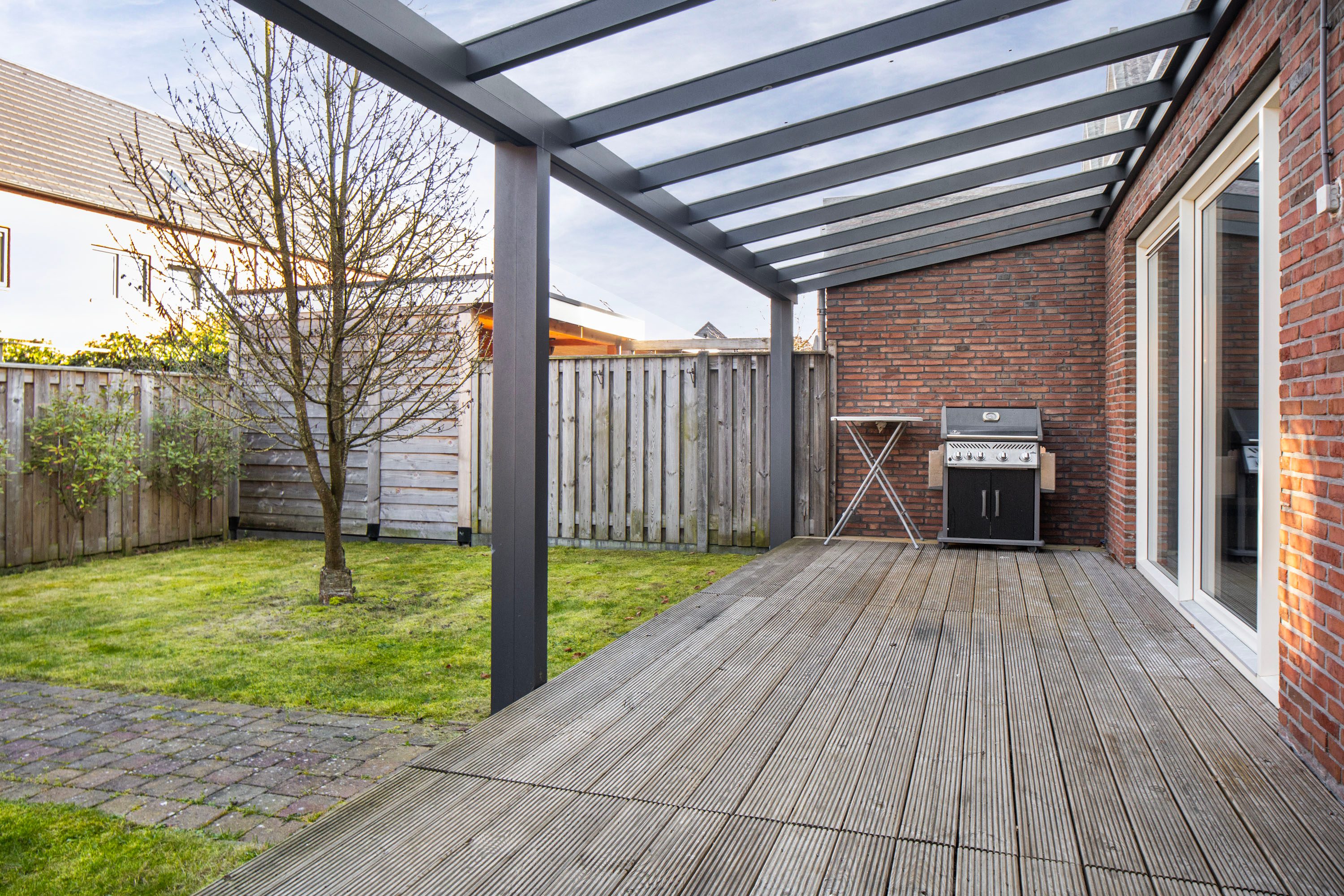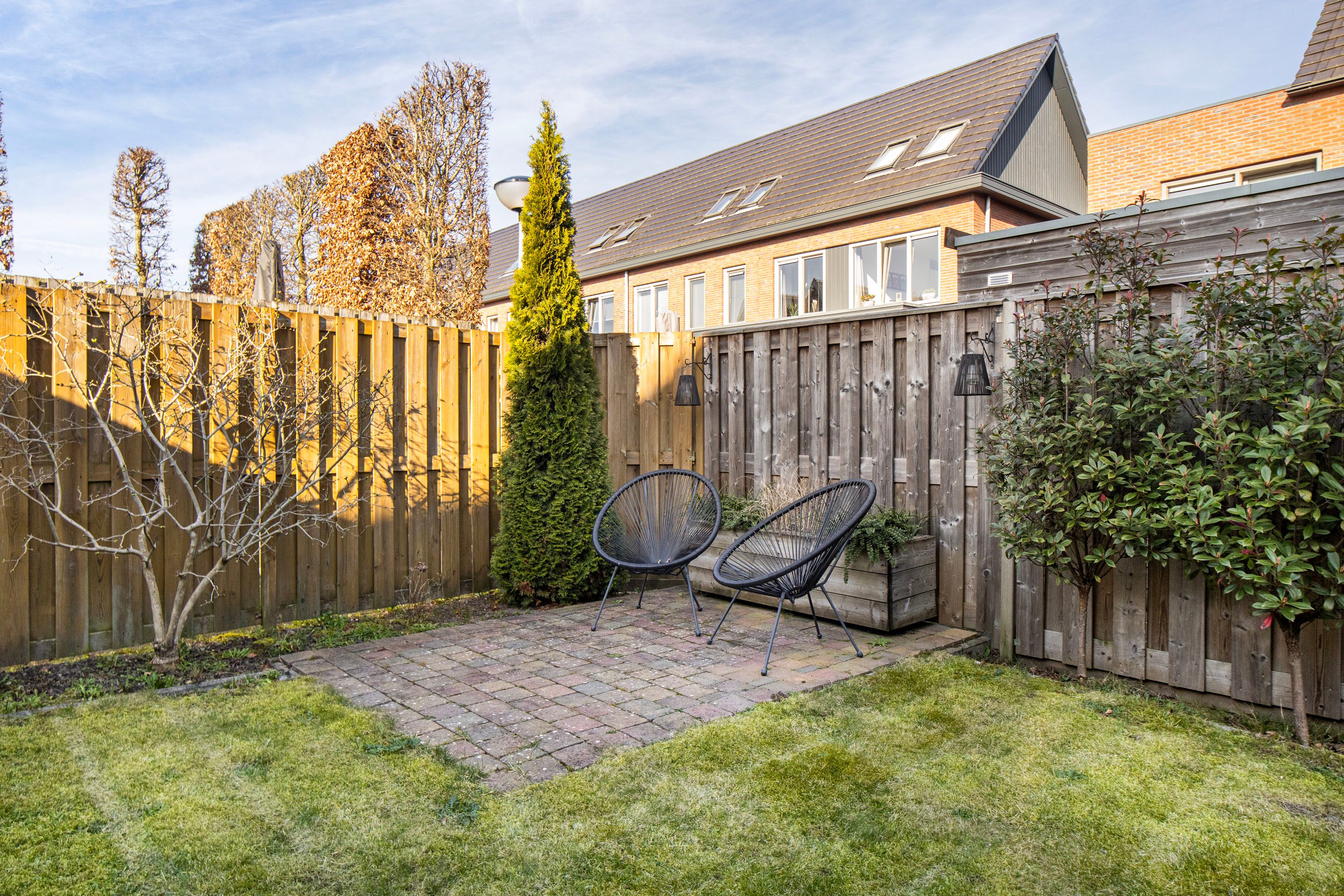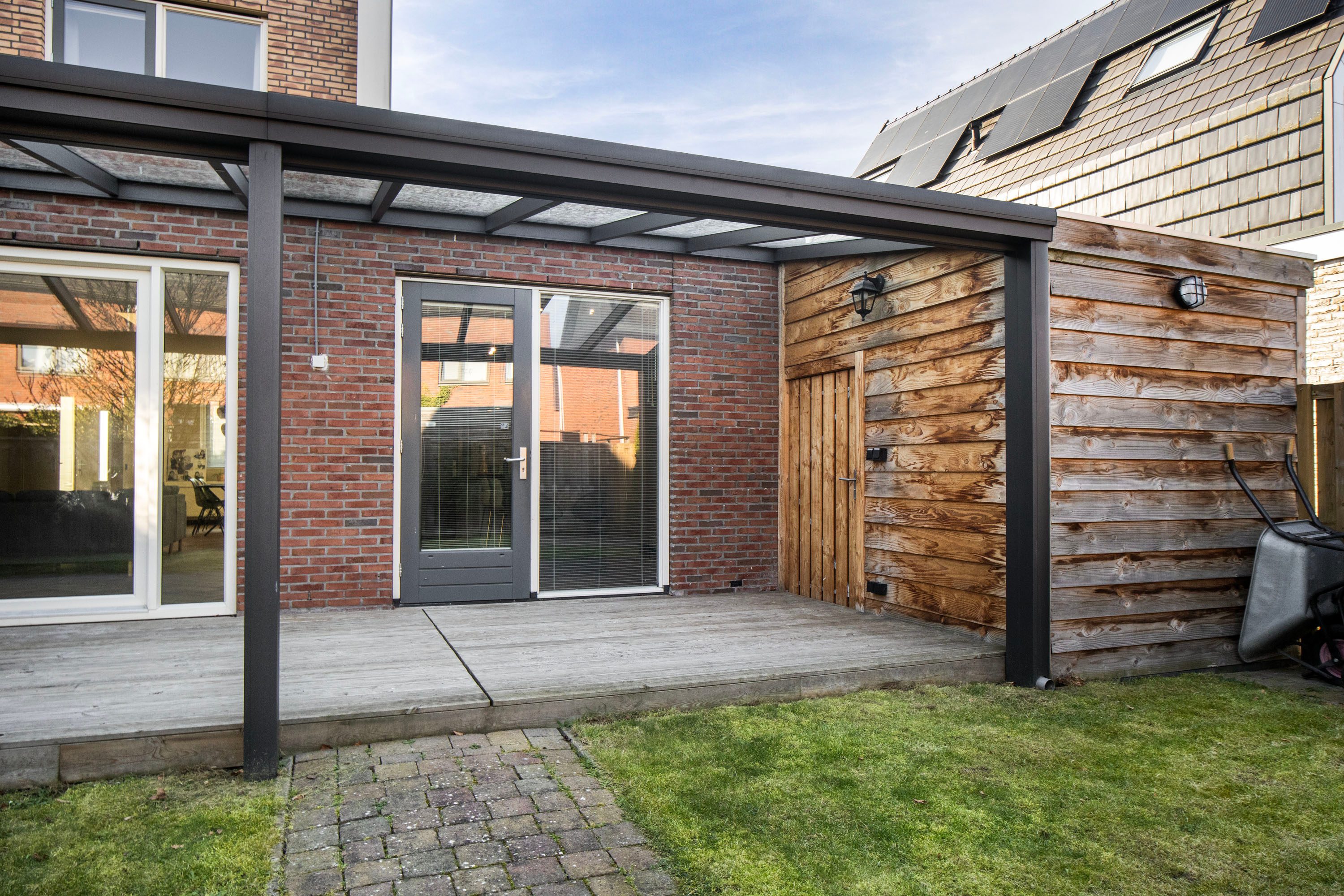 Via de schuifpui stap je zo de fijne achtertuin in, gelegen op het noordoosten. Dankzij de ruime afmetingen kun je hier op elk moment van de dag een plek in de zon óf juist in de schaduw vinden, ideaal voor zowel ontspannen loungen als gezellig buiten eten. De stijlvolle overkapping fungeert als een natuurlijk verlengstuk van de woonkamer, waardoor je al vroeg in het voorjaar én tot laat in het najaar heerlijk buiten kunt zitten. Inpandig is er een praktische berging aanwezig, ideaal voor fietsen, tuinspullen of extra opslag. Daarnaast beschikt de woning over een achterom. Je auto parkeer je gemakkelijk op je eigen oprit.