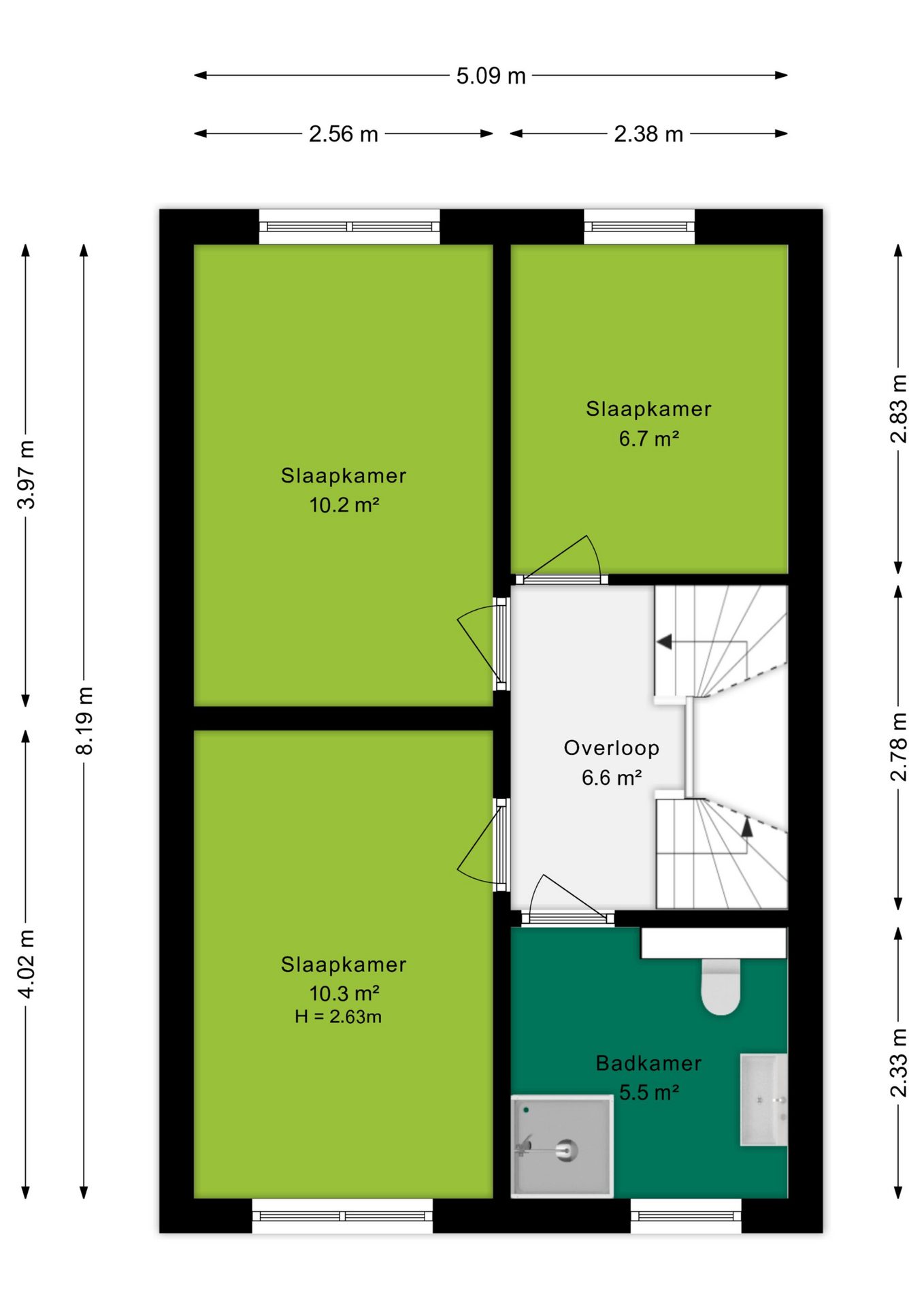 - Drie volwaardige slaapkamers op de eerste verdieping