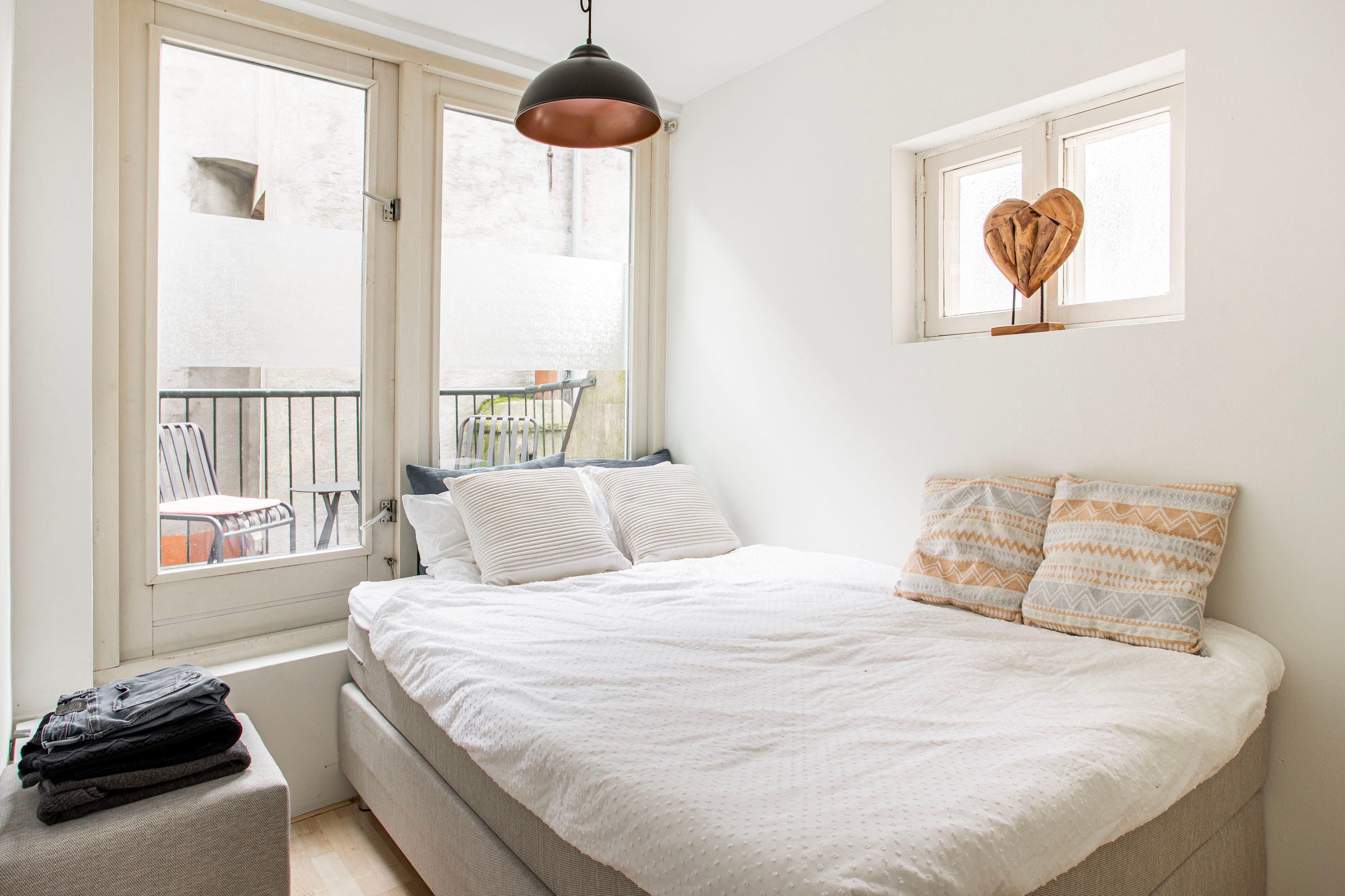 - Slaapkamer aan de achterzijde met direct toegang naar de badkamer en het balkon
