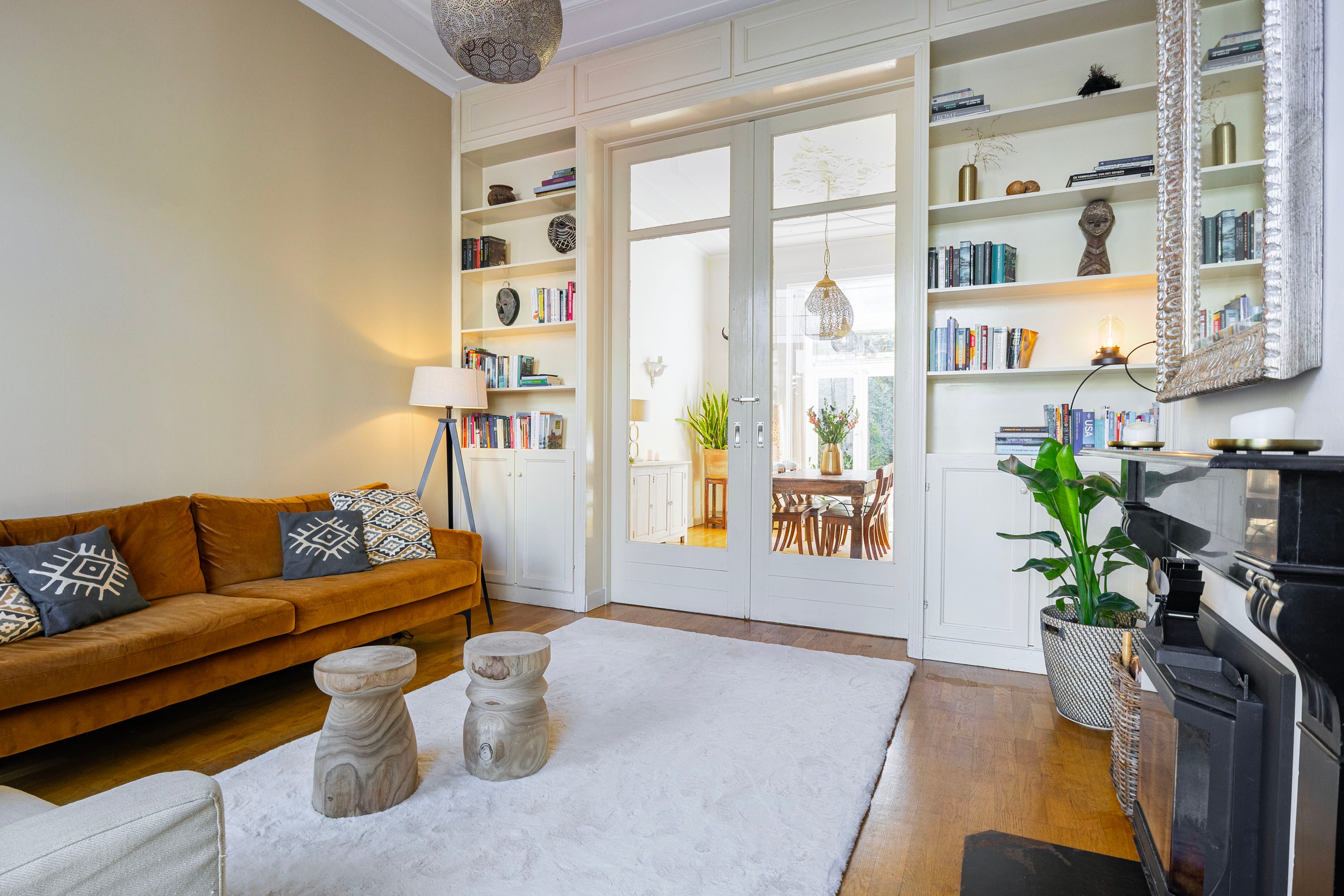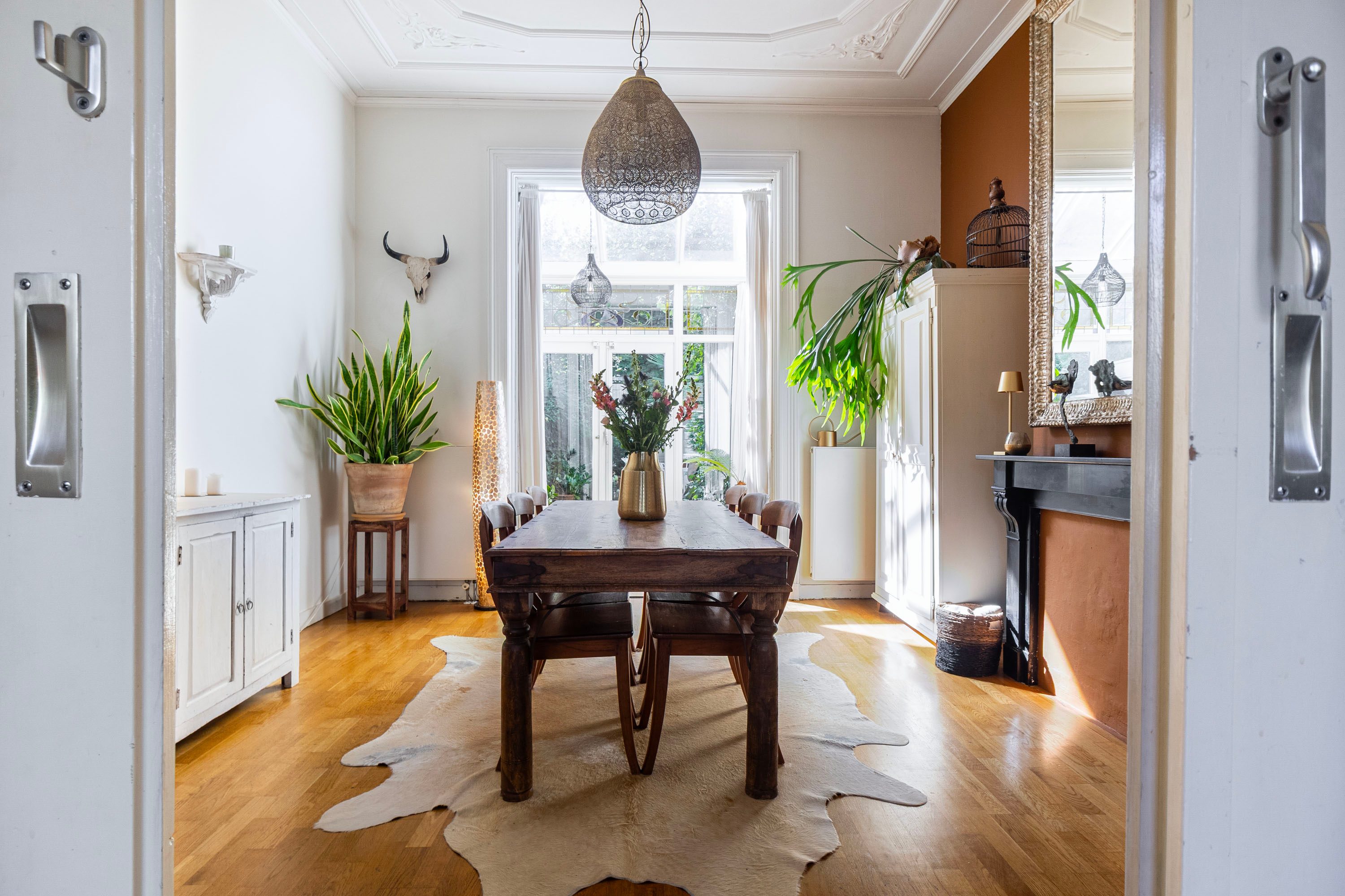 - Authentieke details: ornamentenplafonds, kamer-en-suite met schuifdeuren en fraaie paneeldeuren