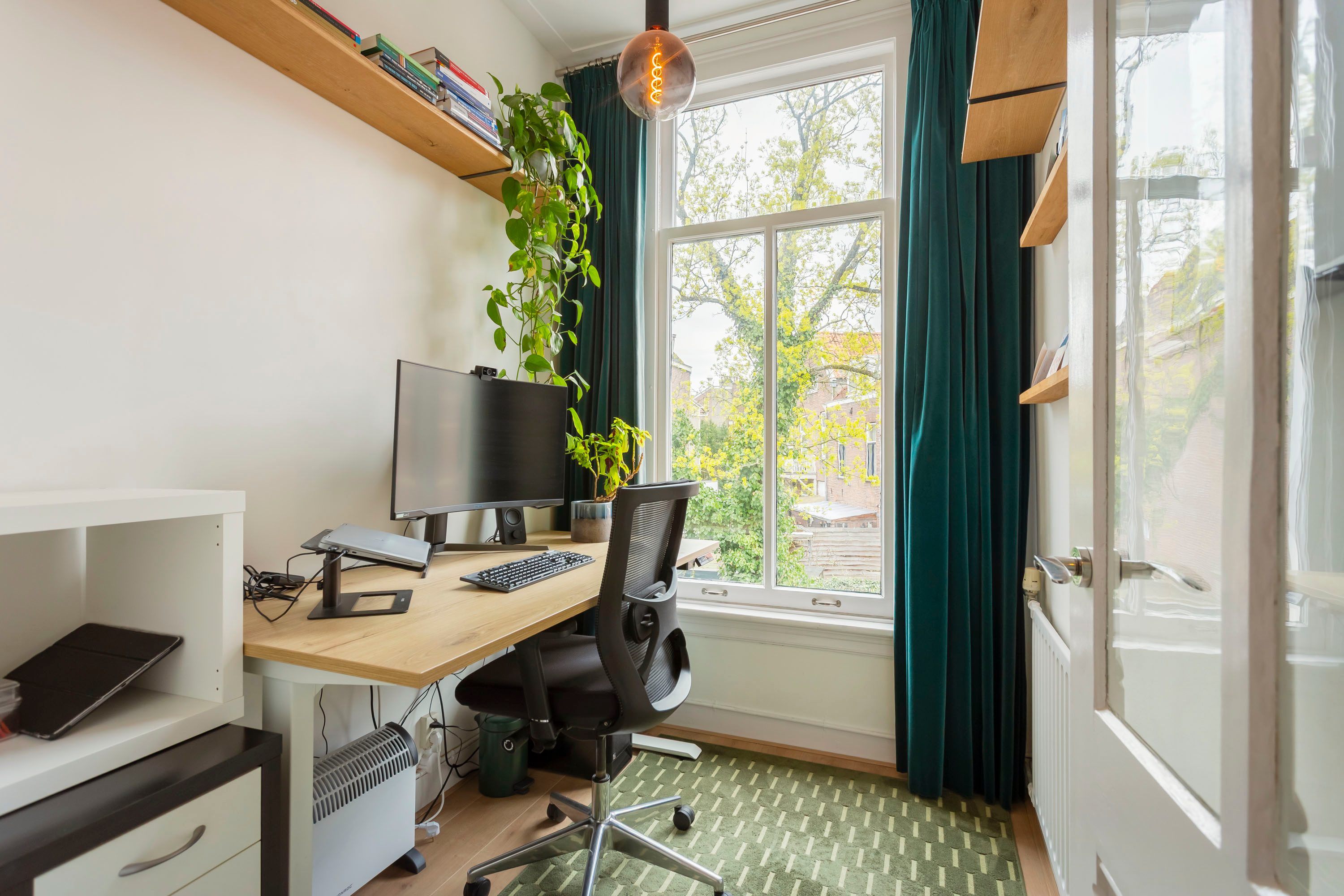 De woning ademt warmte, karakter en klasse en ligt aan een van de mooiste straten van de wijk. Met drie slaap- en/of werkkamers is er volop ruimte en flexibiliteit, terwijl de ruime overloop met vaste kasten zorgt voor praktische bergruimte. Het zonnige dakterras op het zuidwesten is een heerlijke plek om te ontspannen in de buitenlucht. Deze woning biedt alles wat gewenst is: meerdere (slaap)kamers, een fijne werkruimte, een zonnig dakterras en sfeervolle, authentieke details die zorgen voor een warme uitstraling. Daarnaast is er een zolder aanwezig, ideaal als extra bergruimte.