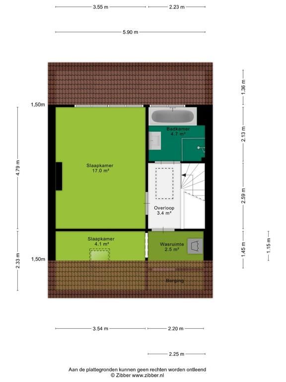 De overloop geeft toegang tot de vertrekken. Deze verdieping is voorzien van een groot dakkapel waardoor je nog meer woongenot ervaart. De slaapkamers hebben een afmeting van 17m² en 4,1m², zijn voorzien van een laminaatvloer en voldoende lichtinval. De badkamer is opgesteld in een moderne kleurstelling en voorzien van een ligbad, inloopdouche, wastafel met wastafelmeubel en een raam om te kunnen ventileren. De wasruimte is voorzien van witgoed-aansluiting en tevens is hier opbergruimte aanwezig.