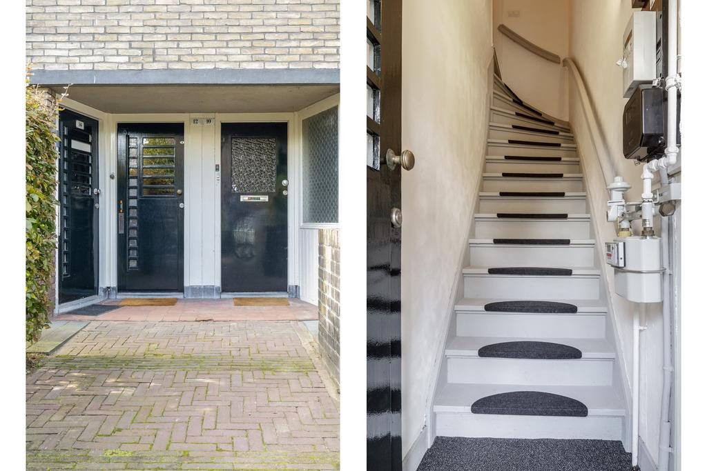 Entree met hal en trapopgang naar het appartement.