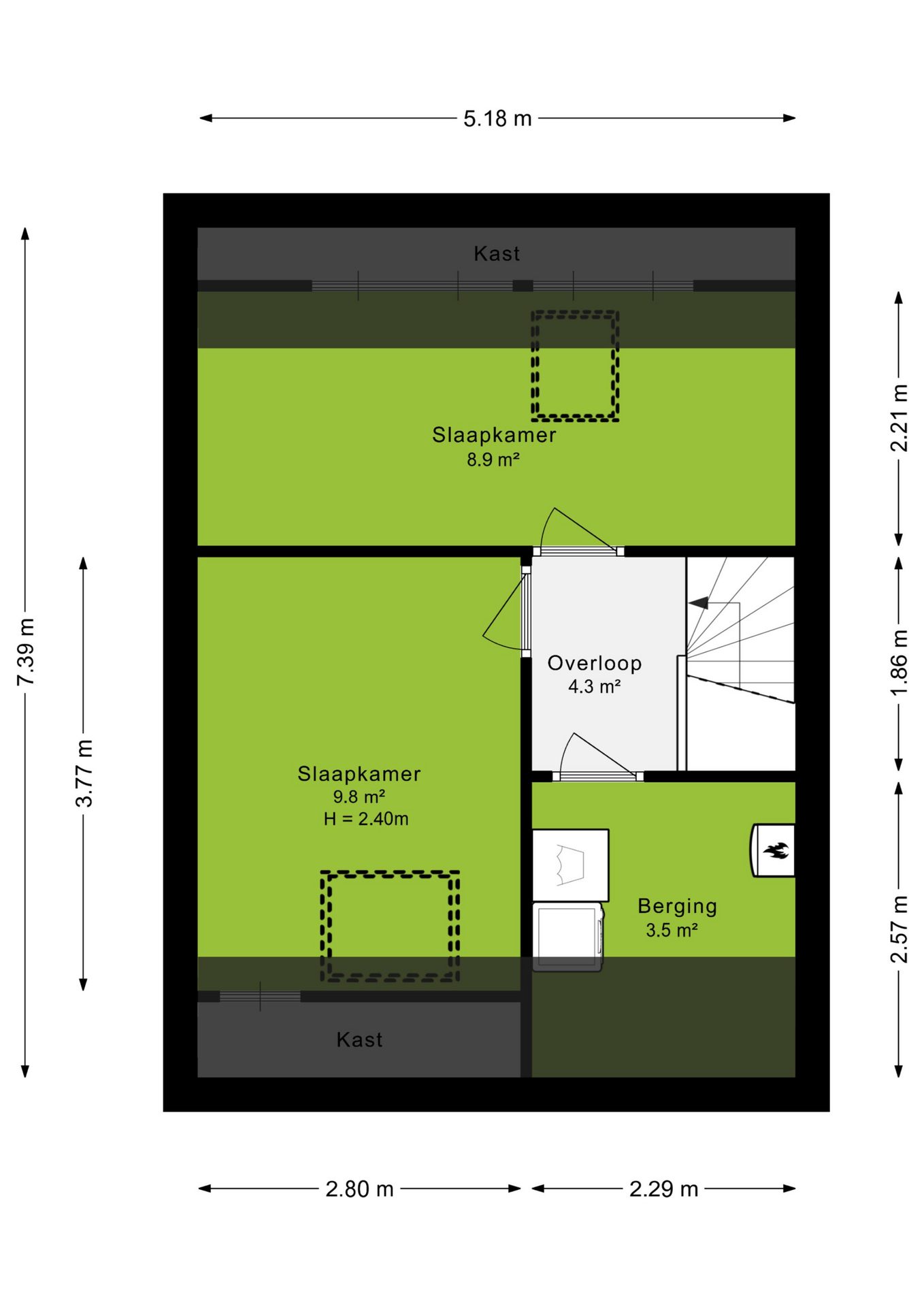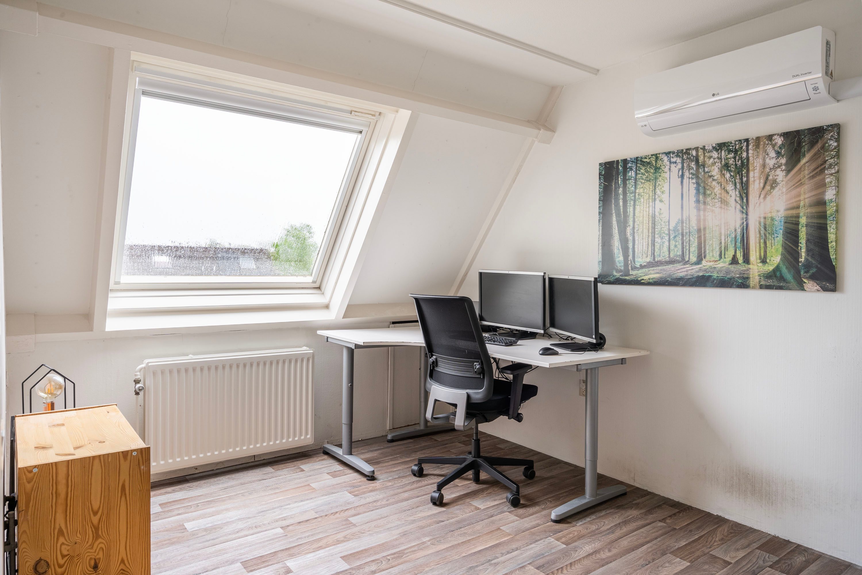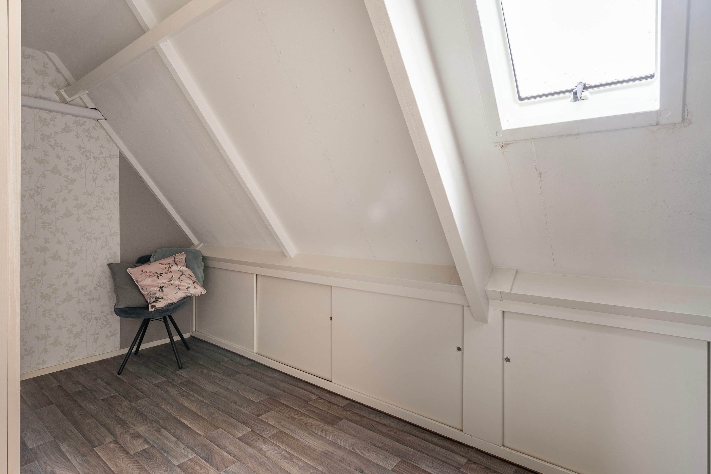 Via de vaste trap bereik je de tweede verdieping met toegang naar twee slaapkamers en een aparte was-/bergruimte. Beiden slaap-/werkkamers zijn voorzien van een dakraam en geven de mogelijkheid om hier een werk-/ logeer of hobbykamer te realiseren. In de was-/ bergruimte tref je de witgoedaansluiting, C.V. opstelling en extra bergruimte. Ook de thuisbatterij tref je in het washok, ideaal dat hiermee de opgewekte stroom vanuit de zonnepanelen wordt opgeslagen.