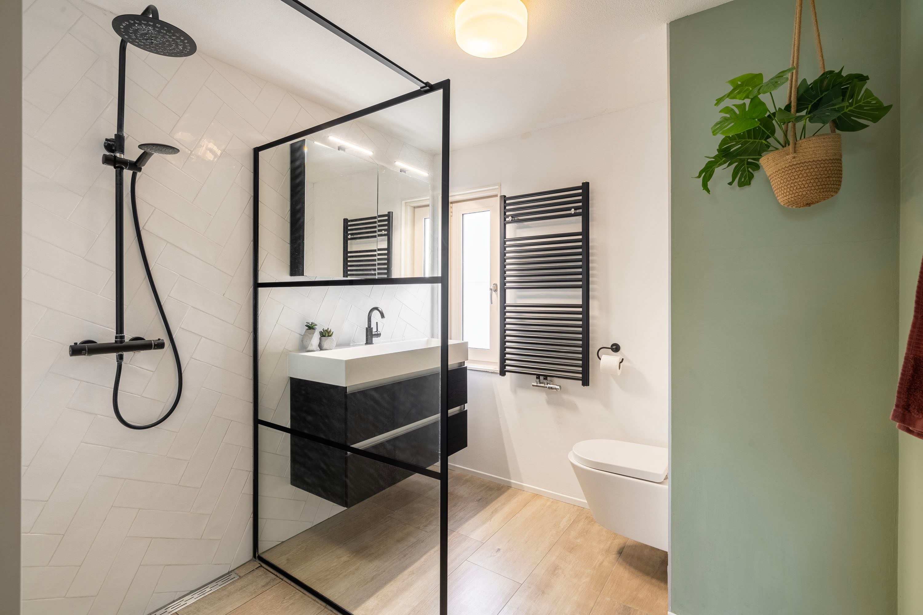 De overloop geeft toegang tot drie slaapkamers, de badkamer en de trapopgang naar de tweede verdieping. Alle slaapkamers zijn licht en netjes afgewerkt met een houtlook laminaatvloer. De dakkapel aan de achterzijde zorgt voor nog meer ruimte in de slaapkamers en voorziet ze van een fijne lichtinval. De badkamer is opgesteld in een mooie kleurstelling, vernieuwd in 2021 en uitgerust met een inloopdouche, een wastafelmeubel, handdoekradiator en een tweede toilet. Het raam biedt een fijn daglicht en de mogelijkheid om de badkamer op een natuurlijke manier te ventileren.