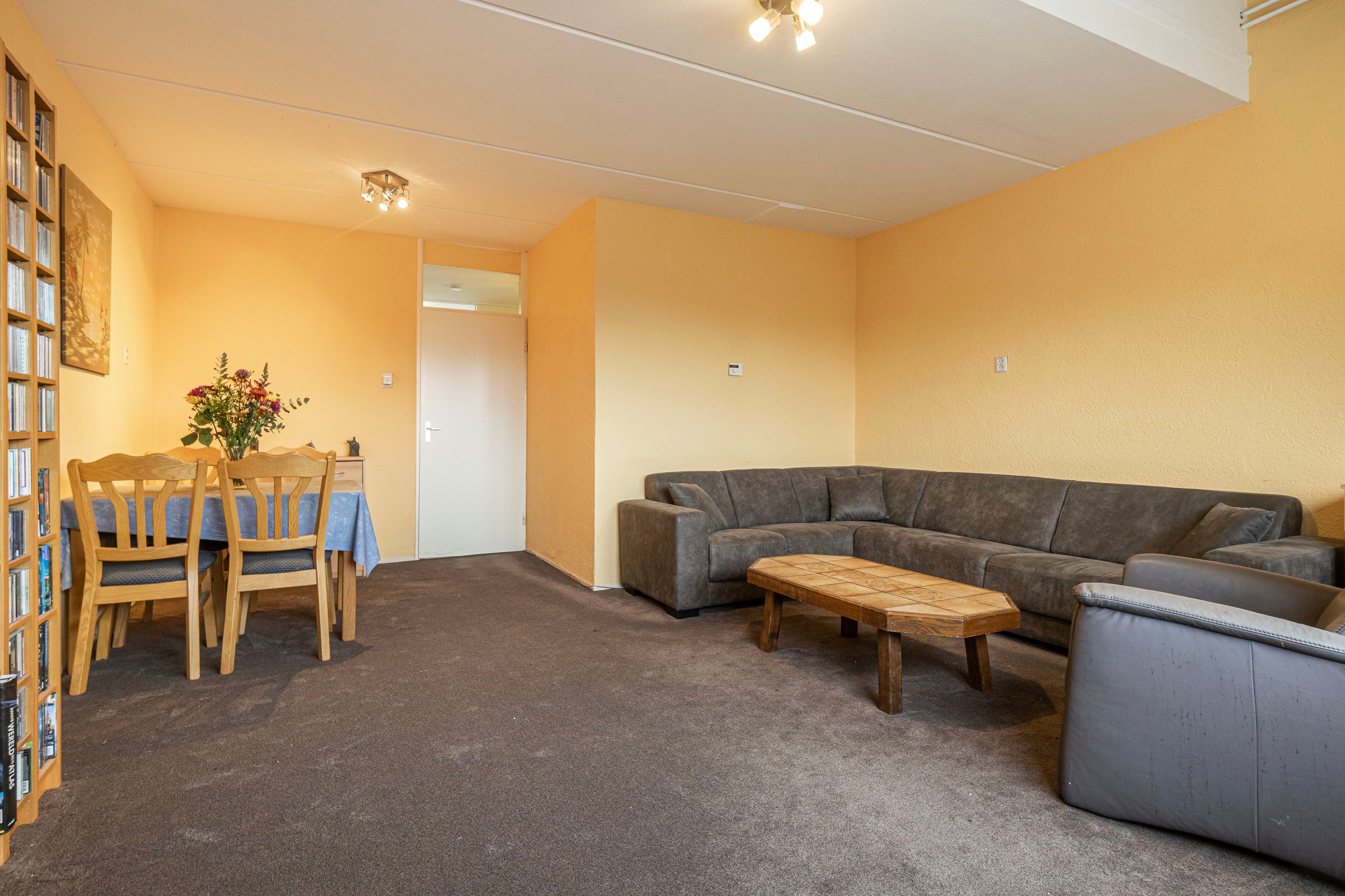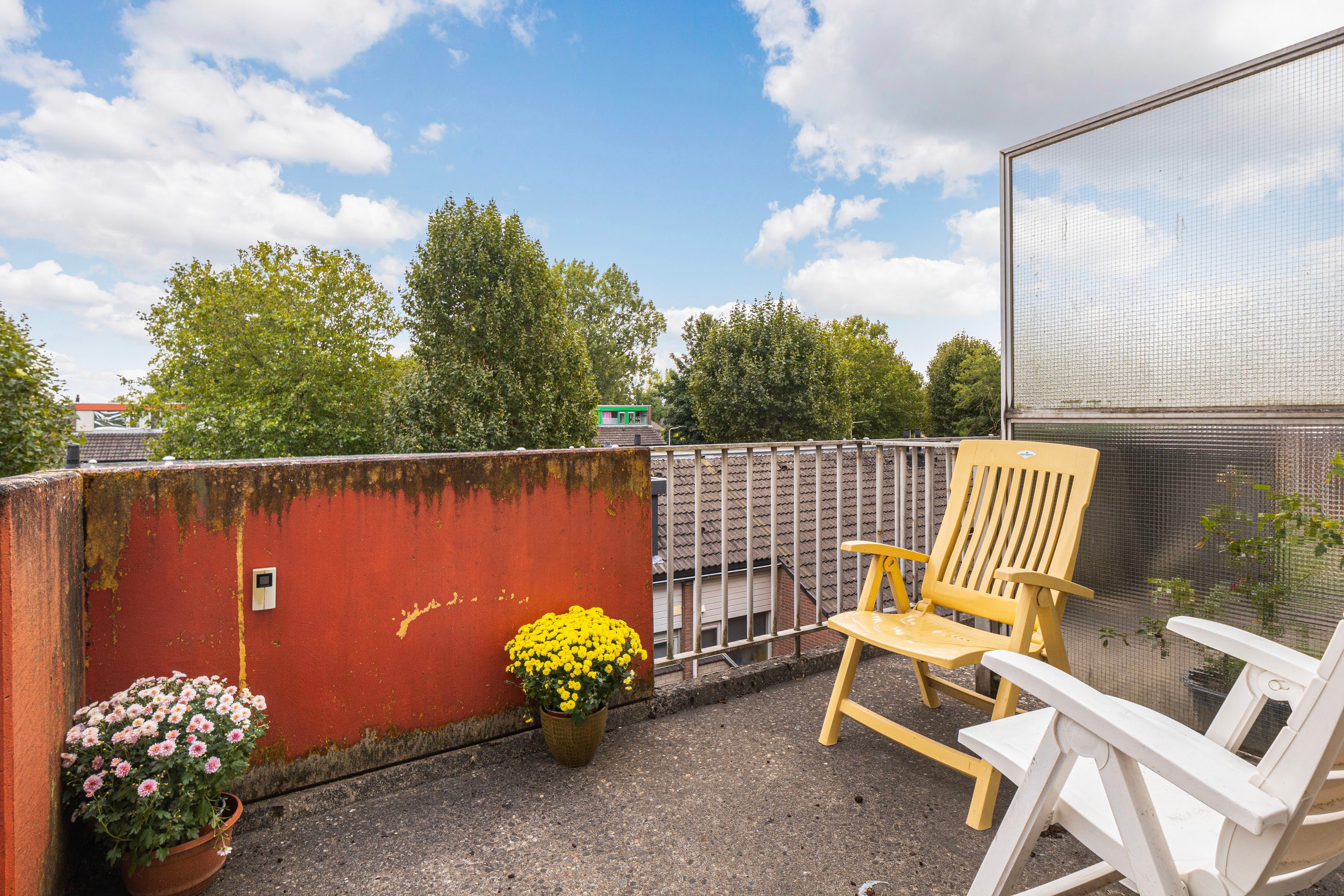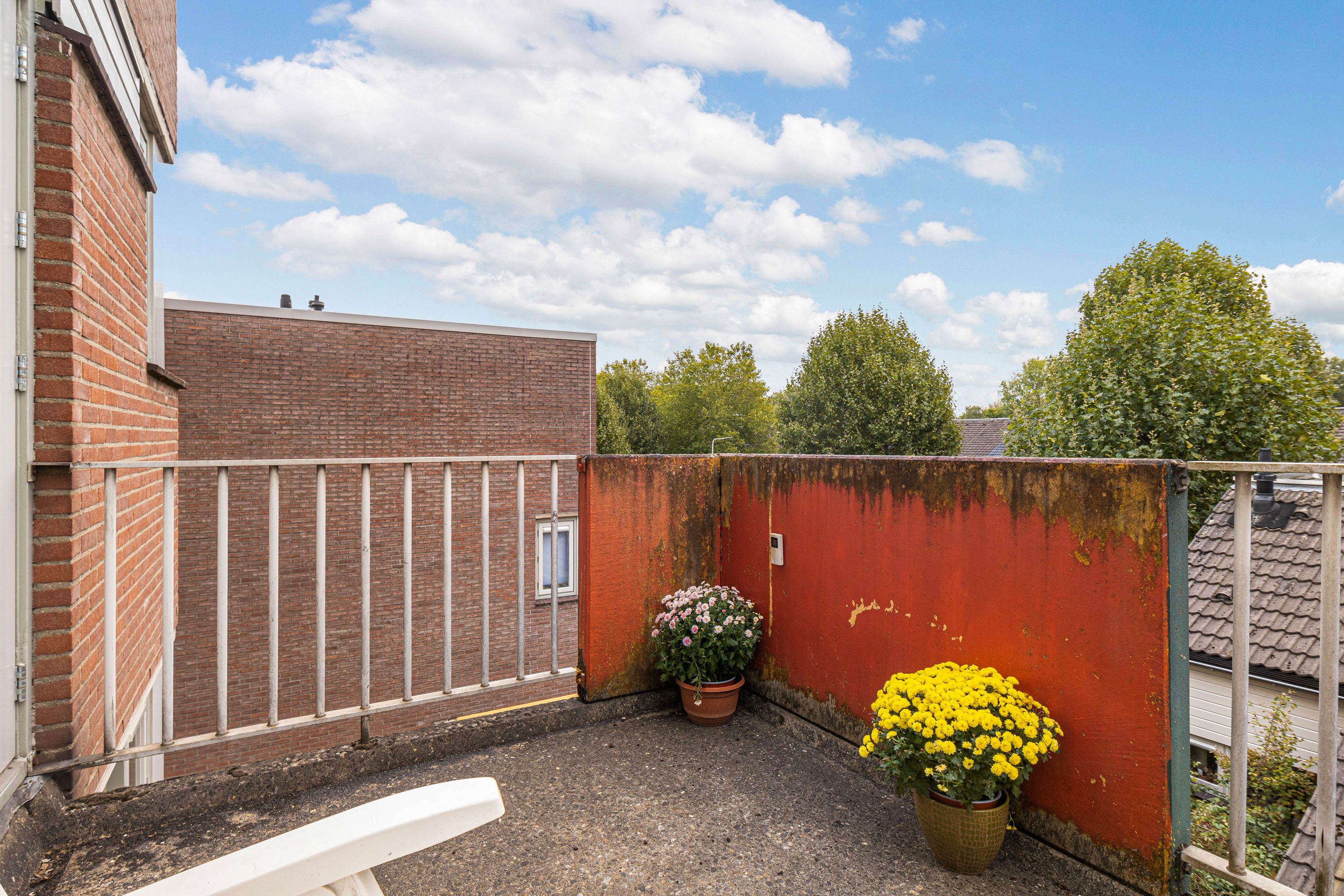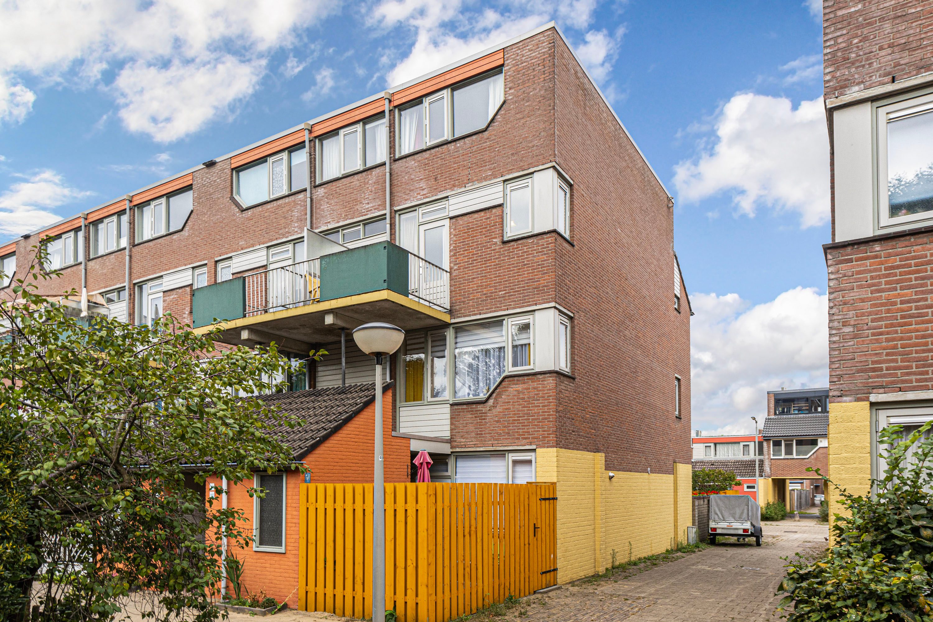 Bij binnenkomst word je verwelkomd in een ruime hal, die toegang biedt tot de woonkamer, keuken, toiletruimte en de trap naar de verdieping. Het balkon van ongeveer 6 m² nodigt uit om even buiten te ontspannen en te genieten van het uitzicht. Op de verdieping beschik je over vier kamers en een badkamer. Daarnaast beschikt de woning over een eigen berging, ideaal voor opslag of het stallen van de fiets. Deze woning biedt de kans om geheel naar eigen wens te moderniseren. De speelse indeling doet denken aan een complete gezinswoning, maar met het gemak van onderhoud binnen een Vereniging van Eigenaren.