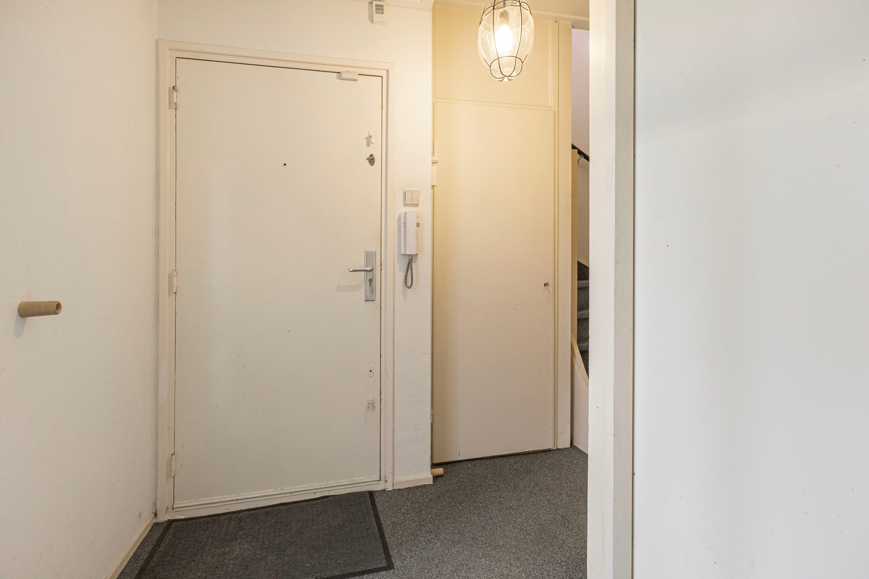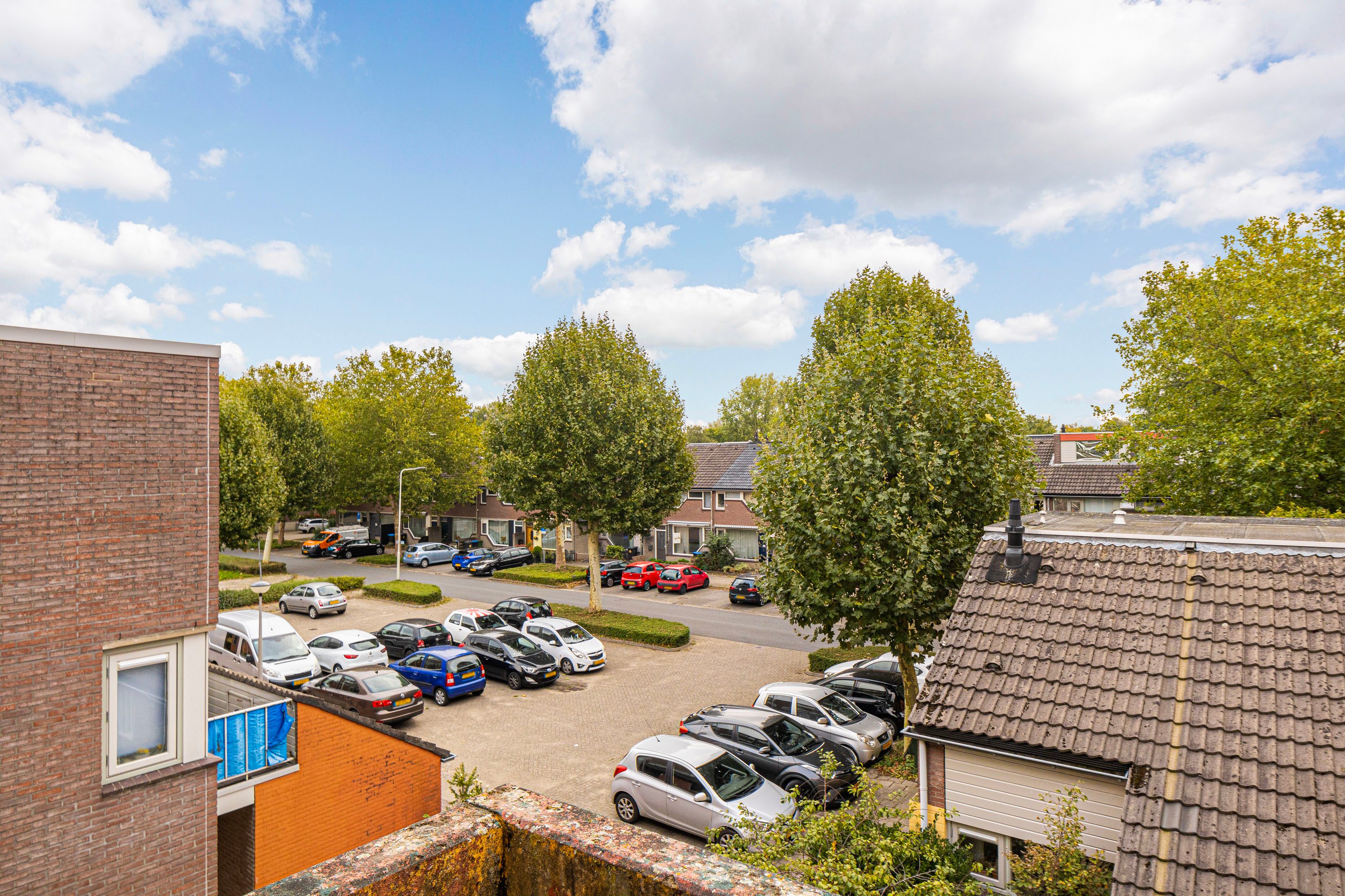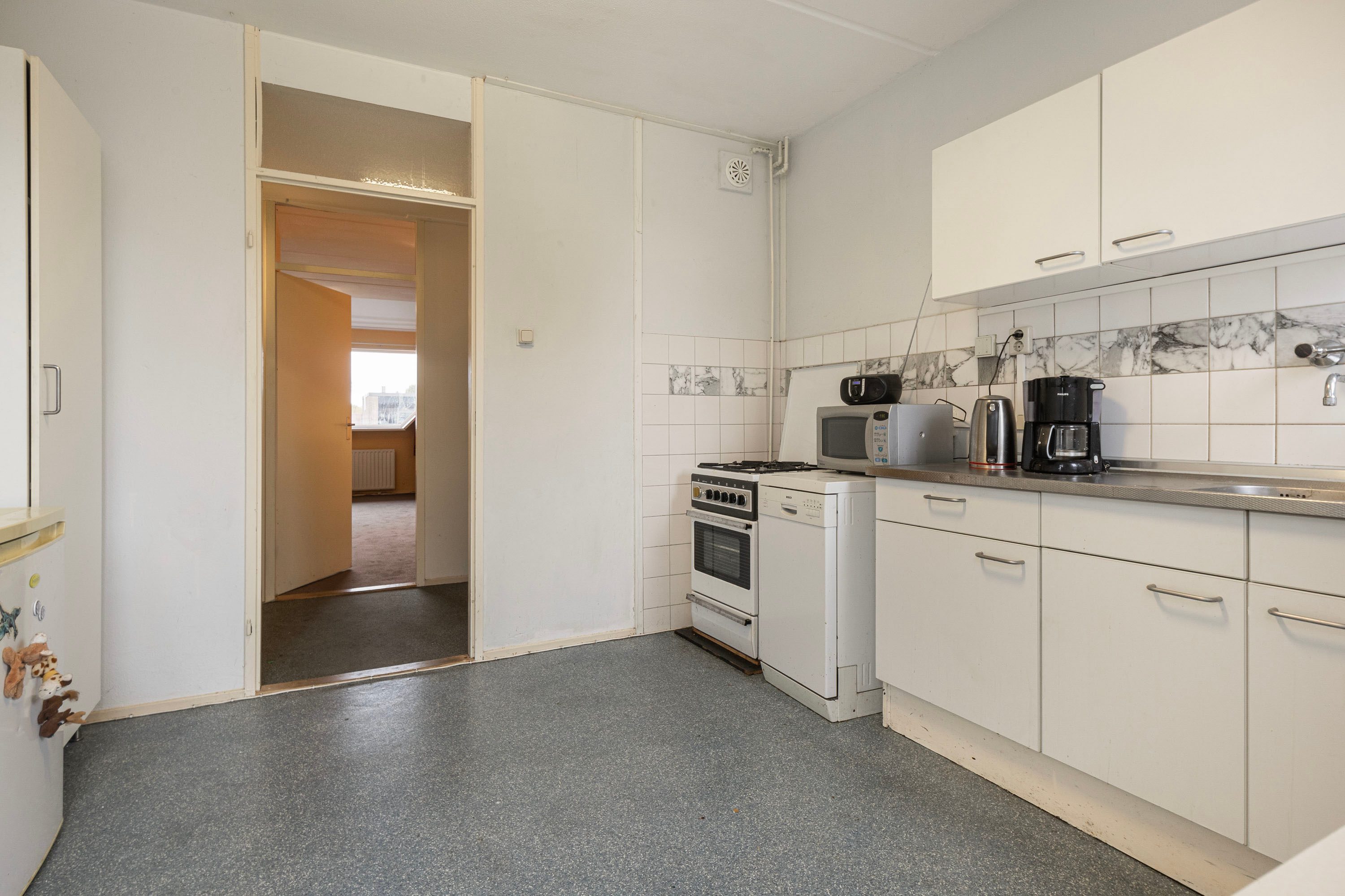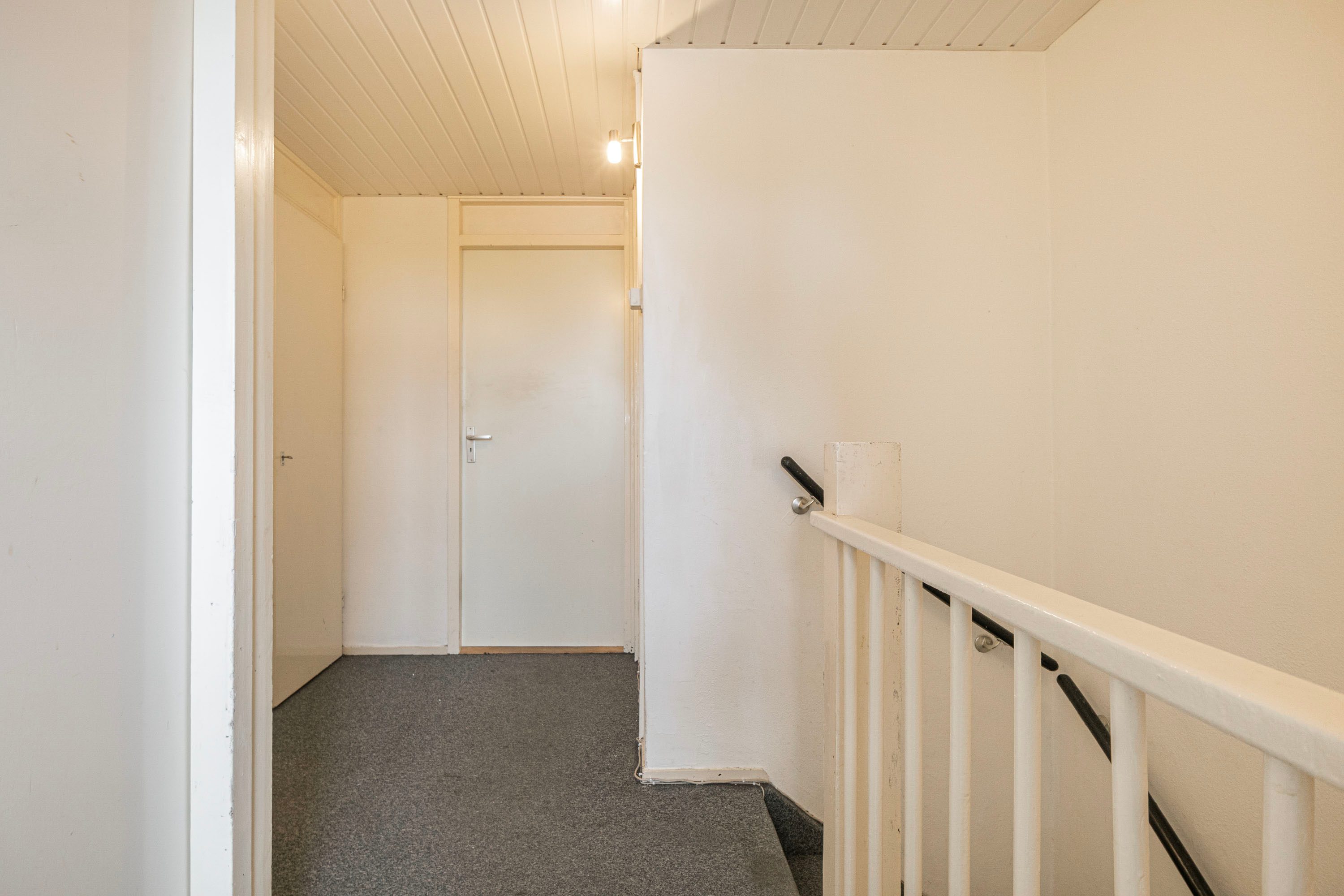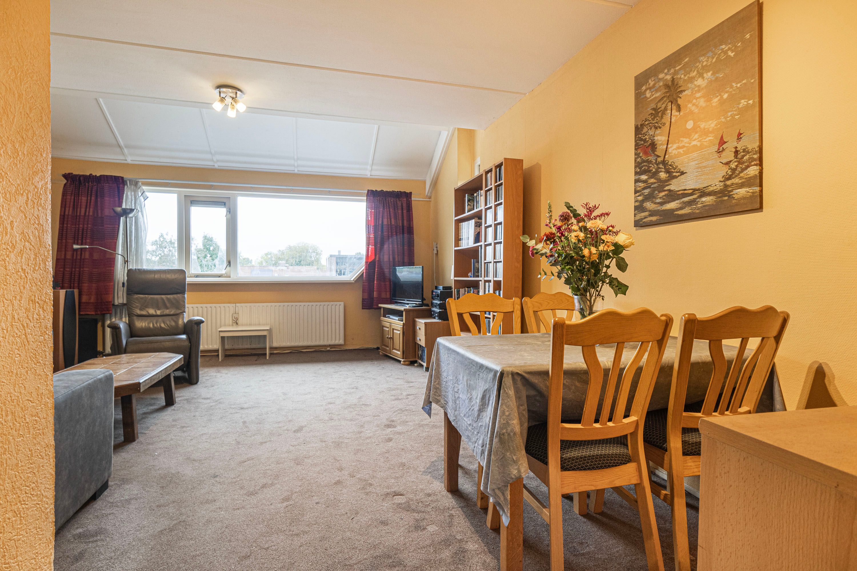 Bij binnenkomst word je verwelkomd in een ruime hal, die toegang biedt tot de woonkamer, keuken, toiletruimte en de trap naar de verdieping. Het balkon van ongeveer 6 m² nodigt uit om even buiten te ontspannen en te genieten van het uitzicht. Op de verdieping beschik je over vier kamers en een badkamer. Daarnaast beschikt de woning over een eigen berging, ideaal voor opslag of het stallen van de fiets. Deze woning biedt de kans om geheel naar eigen wens te moderniseren. De speelse indeling doet denken aan een complete gezinswoning, maar met het gemak van onderhoud binnen een Vereniging van Eigenaren.