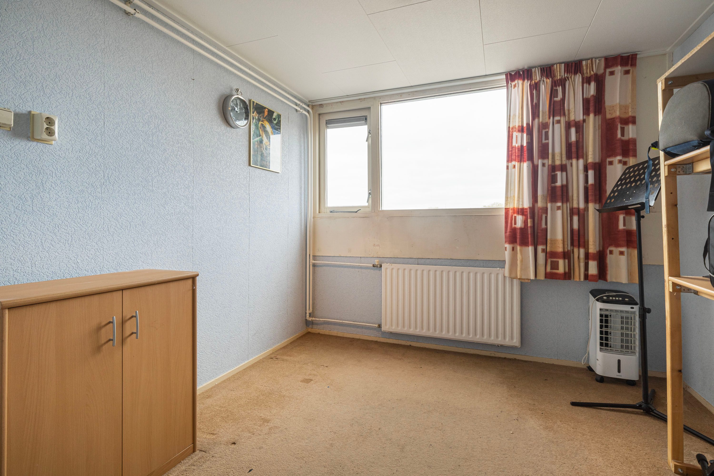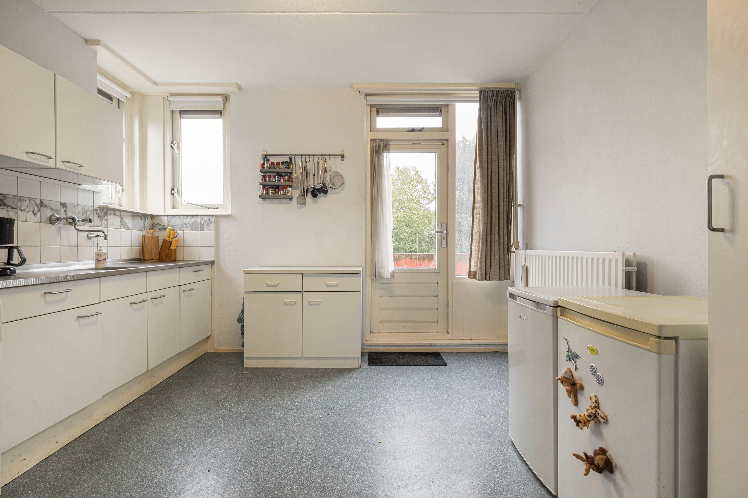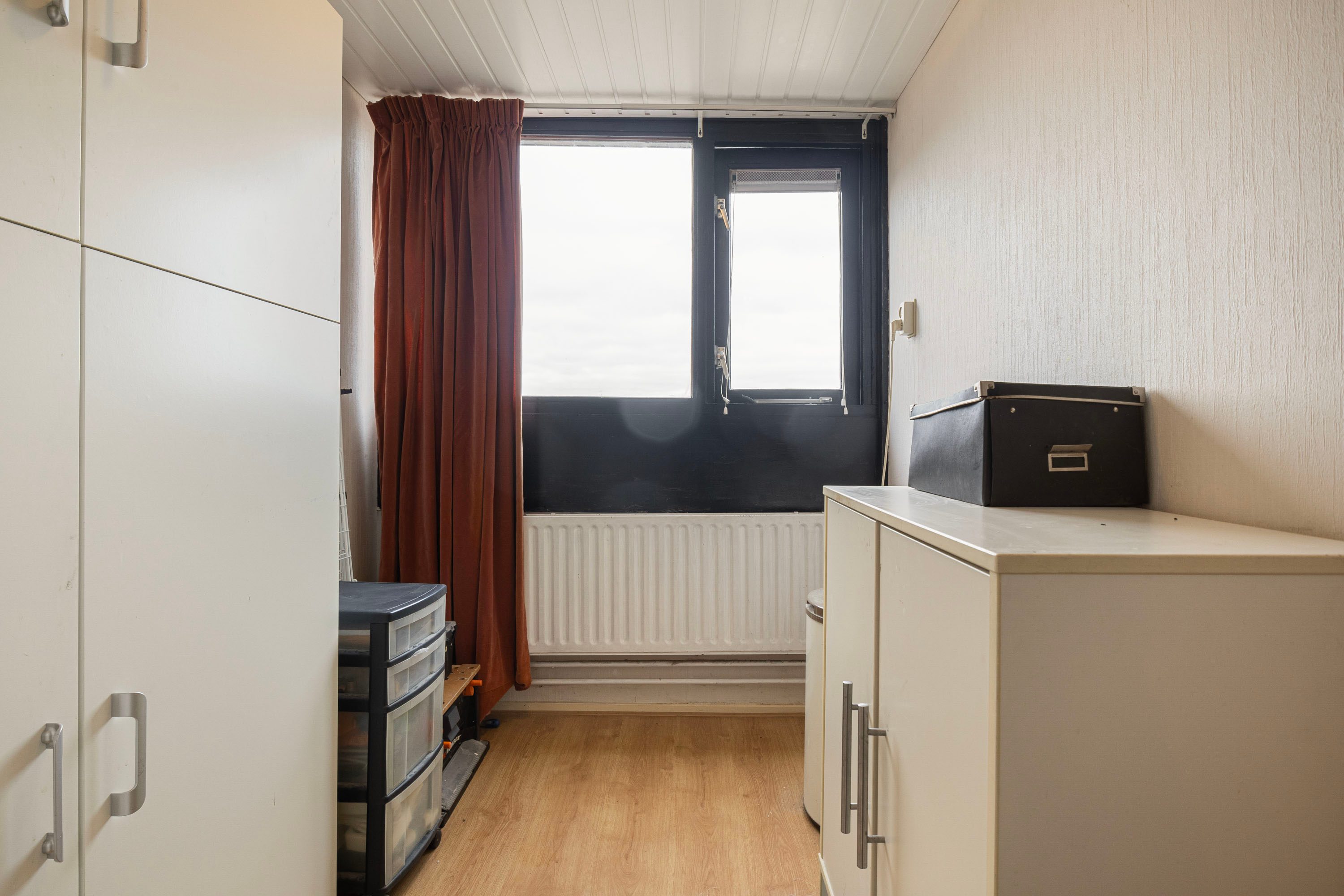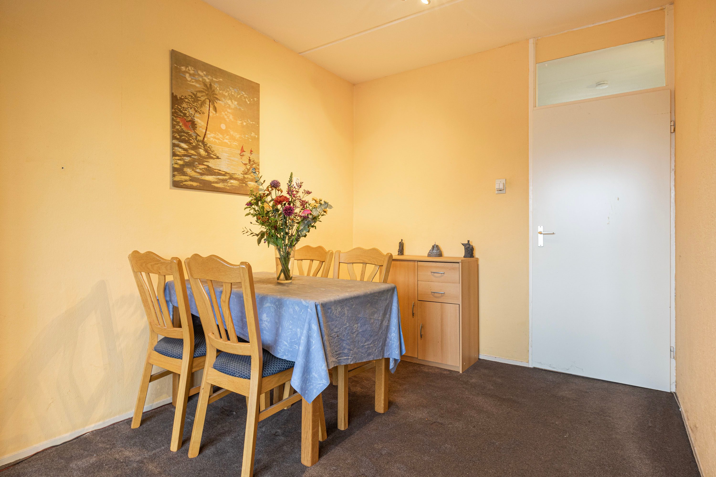 Bij binnenkomst word je verwelkomd in een ruime hal, die toegang biedt tot de woonkamer, keuken, toiletruimte en de trap naar de verdieping. Het balkon van ongeveer 6 m² nodigt uit om even buiten te ontspannen en te genieten van het uitzicht. Op de verdieping beschik je over vier kamers en een badkamer. Daarnaast beschikt de woning over een eigen berging, ideaal voor opslag of het stallen van de fiets. Deze woning biedt de kans om geheel naar eigen wens te moderniseren. De speelse indeling doet denken aan een complete gezinswoning, maar met het gemak van onderhoud binnen een Vereniging van Eigenaren.