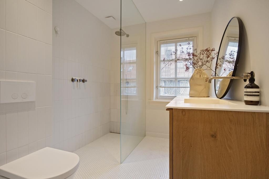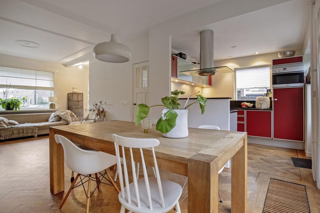 Wanneer je via de hal binnenkomt, word je meteen verwelkomd door de lichte en ruime woonkamer, waar een sfeervolle houtkachel centraal staat. Deze ruimte straalt warmte en gezelligheid uit, perfect voor ontspanning. Als je verder loopt richting de keuken, kom je langs de eethoek, die uitnodigt tot gezellige maaltijden en lange gesprekken. De openslaande deuren naar de tuin zorgen voor een naadloze overgang tussen binnen en buiten, waardoor je op zonnige dagen eenvoudig de frisse lucht naar binnen kunt laten. De keuken, verbonden met de eethoek, biedt een praktische en aangename plek om te koken en te genieten van culinaire creaties. Het geheel vormt een harmonieuze leefruimte waar comfort en functionaliteit hand in hand gaan.