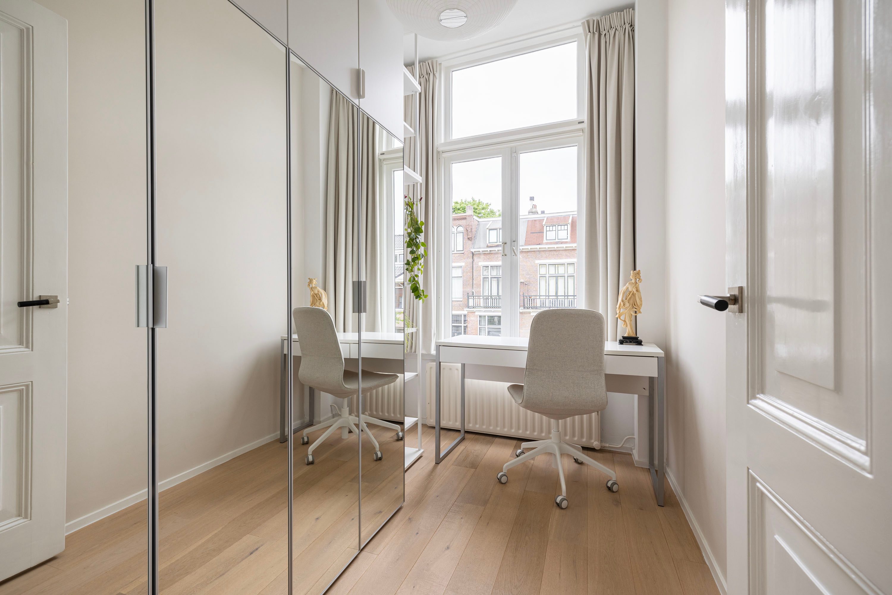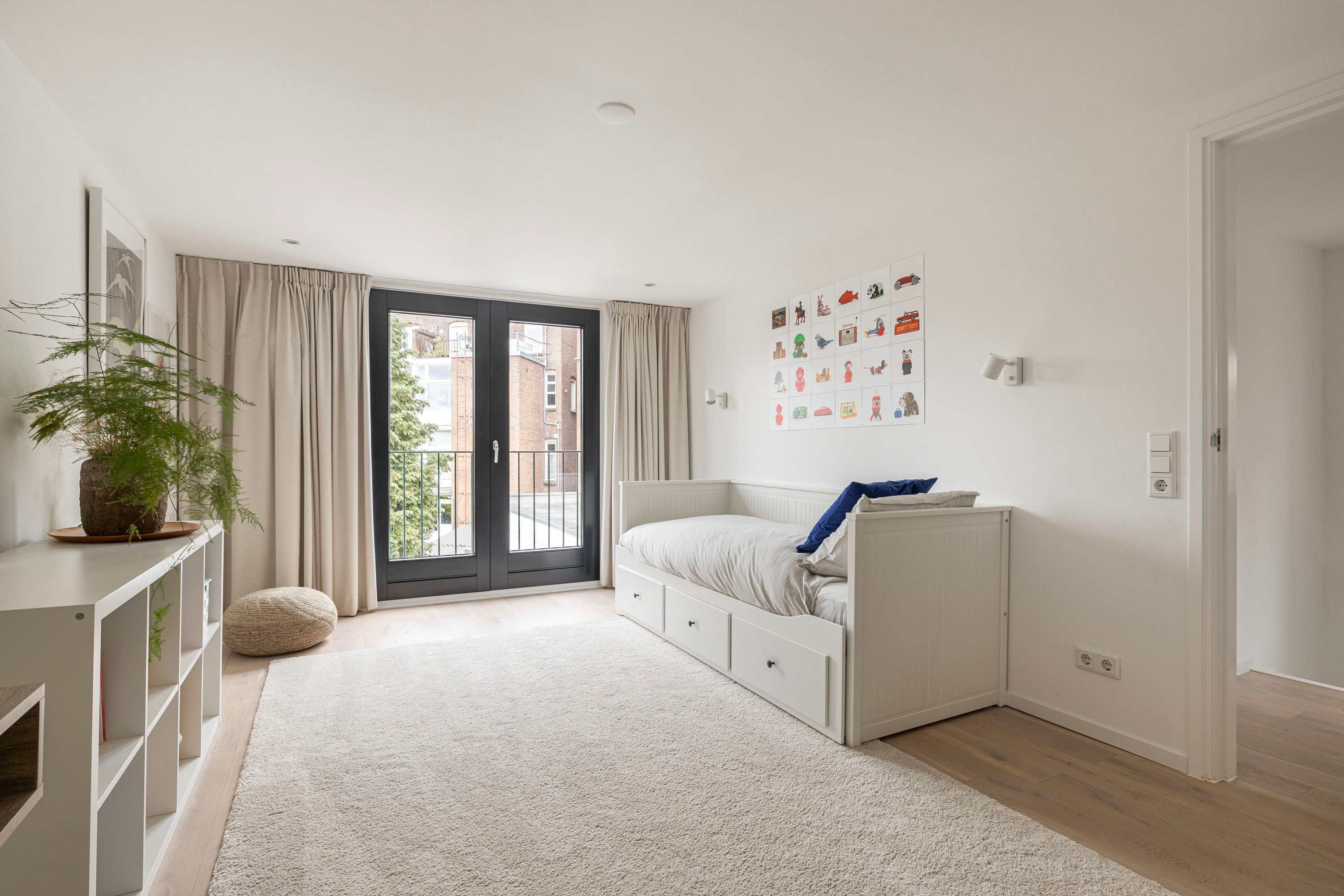 Deze verdieping is volledig gerenoveerd in 2021 en biedt twee ruime slaapkamers van ca. 17 en 18 m² met veel lichtinval dankzij de nieuwe dakkapel en frans balkon. Tevens is hier een tweede badkamer aanwezig met een inloopdouche, toilet en wastafel. Een aparte technische ruimte biedt plaats aan de cv-ketel en extra bergruimte.