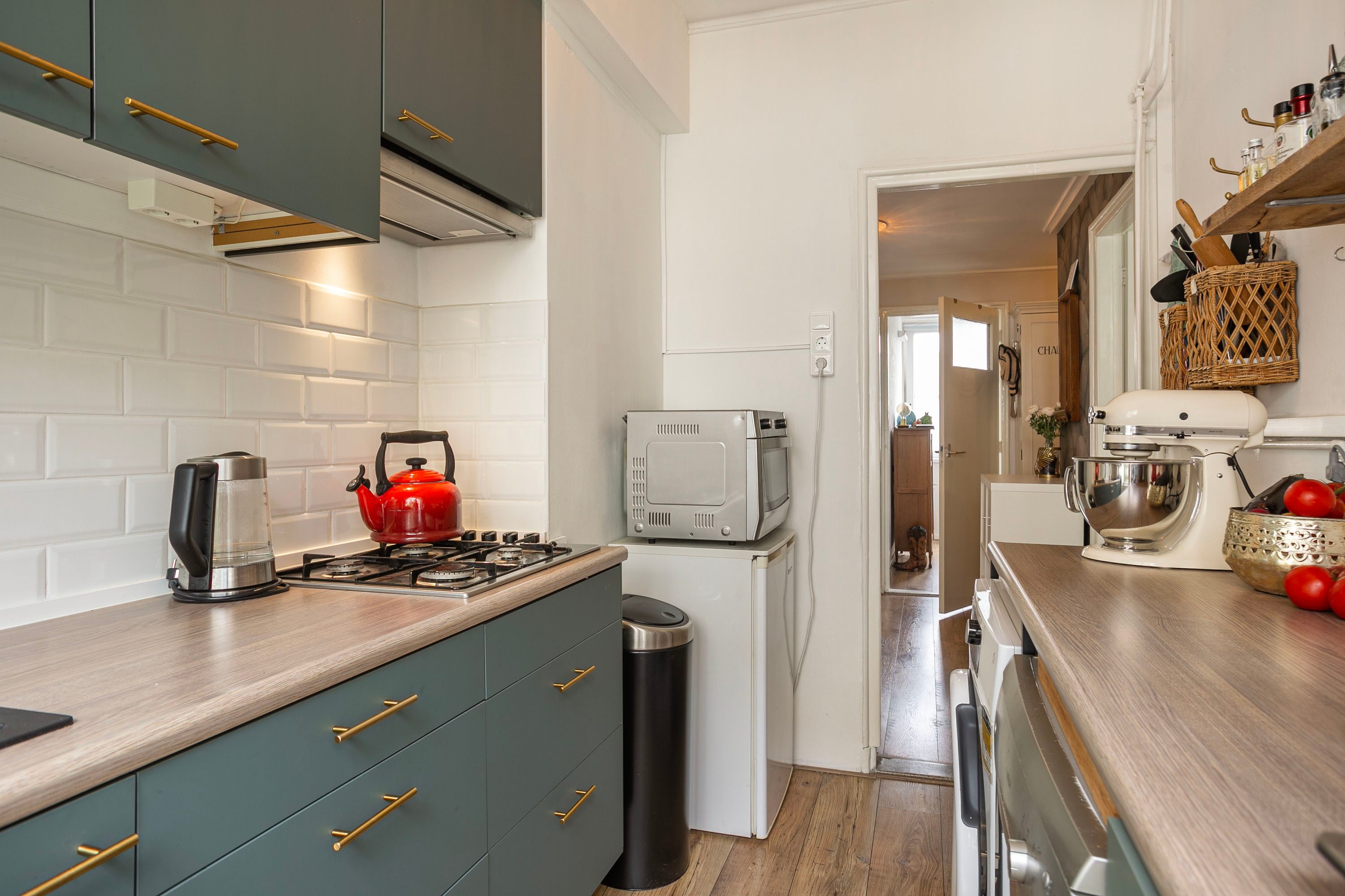 - Deurtjes, grepen, aanrechtbladen en spoelbak van de keuken zijn in 2024 vernieuwd