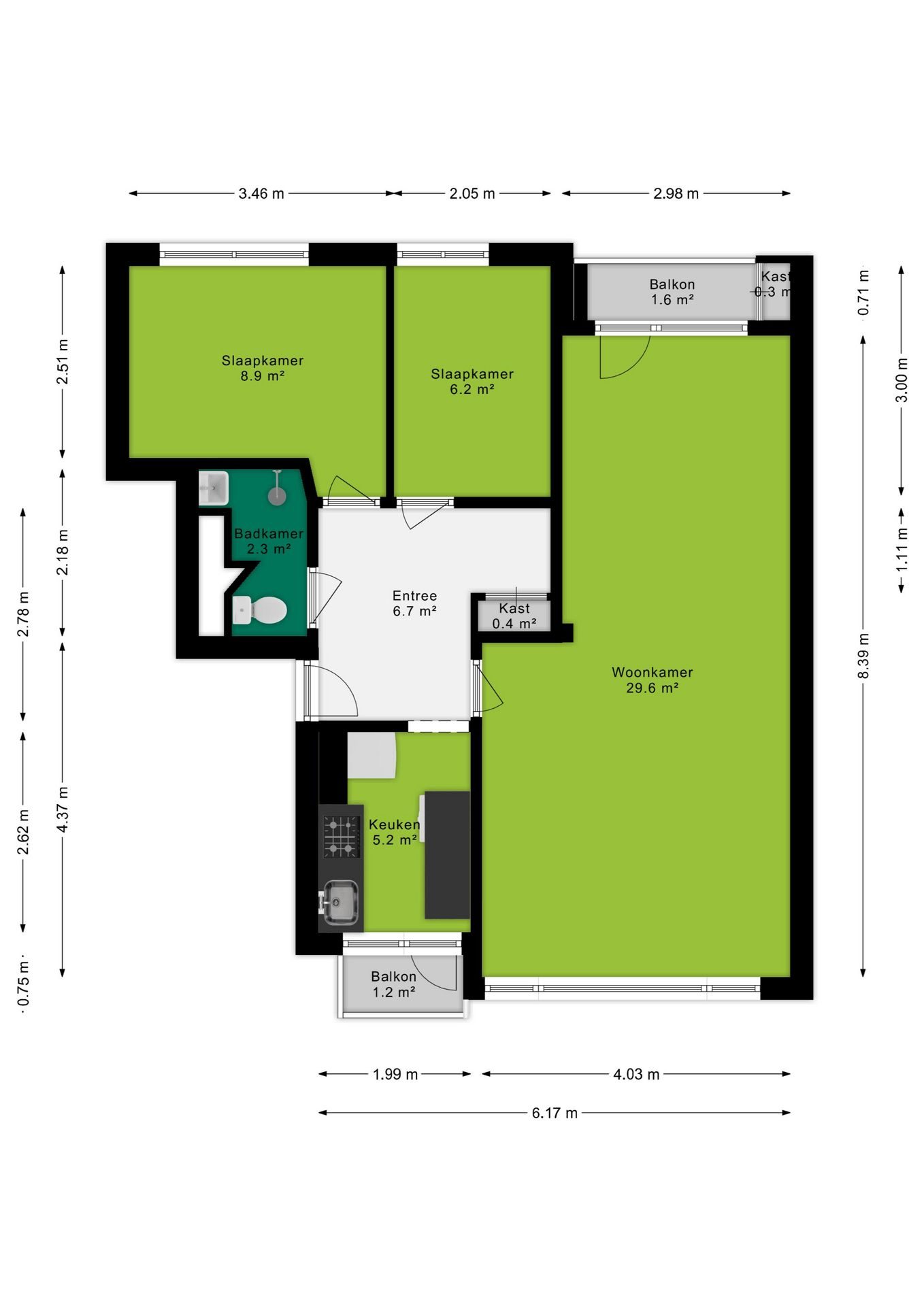 Balkonligging: 2 balkons (oosten en westen)