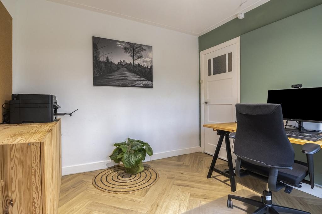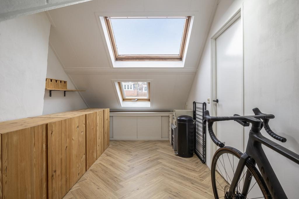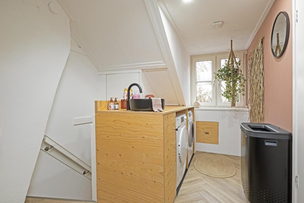 Via een vaste trap bereik je de volwaardig tweede verdieping. In 2022 is hier een dakkapel geplaatst waardoor je nog meer woongenot ervaart. Hier bevindt zich ook de vierde (slaap)kamer met een afmeting van 11,7m². Deze (slaap)kamer is eveneens voorzien van een visgraatvloer en heeft mede dankzij 2 dakramen voldoende lichtinval. Op de voorzolder bevindt zich de uit zicht weggewerkte C.V.-ketel uit 2022, de wasmachine-aansluiting en de omvormer voor de zonnepanelen. In een mooie ombouw, waarop ook een wastafel is gerealiseerd, is plaats voor een wasmachine en -droger.
