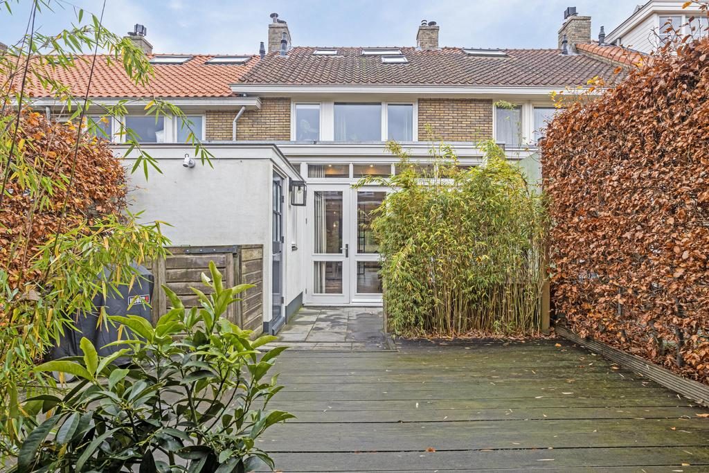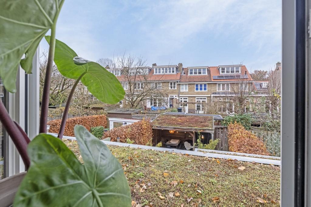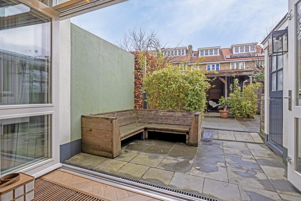 De heerlijke achtertuin is gelegen op het noorden en in de zomer is er door de diepte altijd wel een plekje in de zon of schaduw te vinden. Door de fijne afmeting is het mogelijk om eventueel een speelplekje te creëren. Achter in de tuin staat een gezellige veranda voorzien van elektra en een gootsteen met kraan. Ook is er een stenen schuurtje om bijvoorbeeld fietsen in te plaatsen. Een tuindeur verschaft toegang achterom.