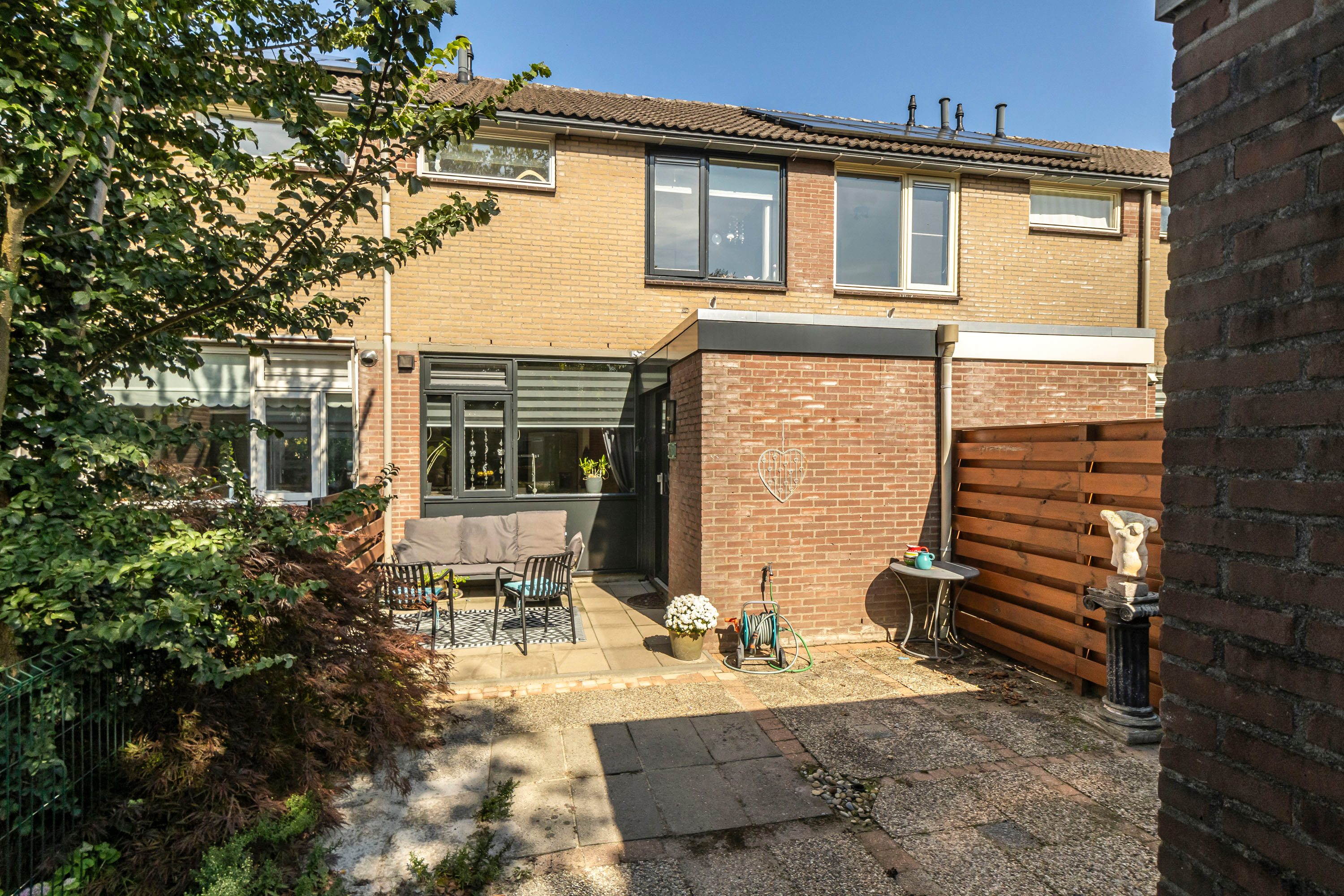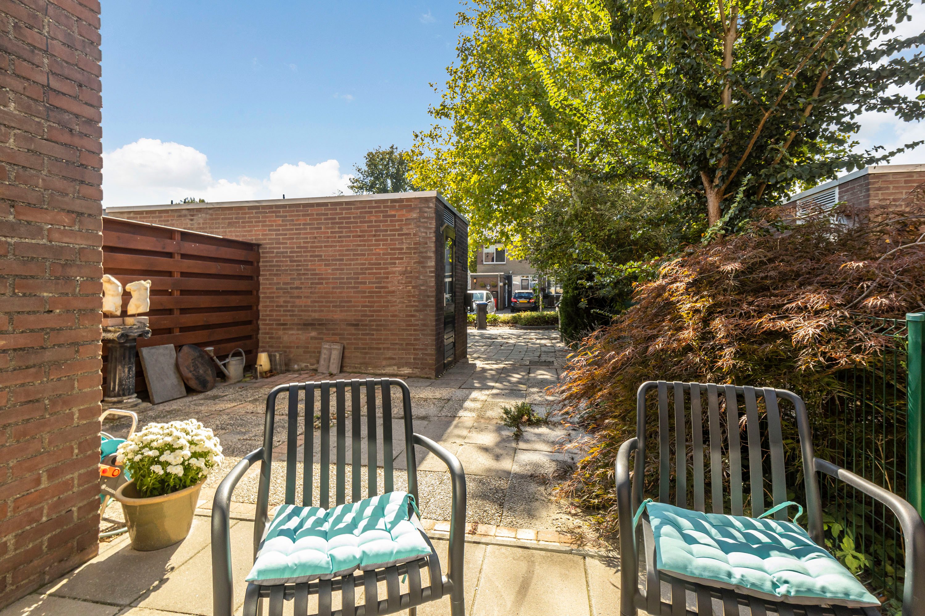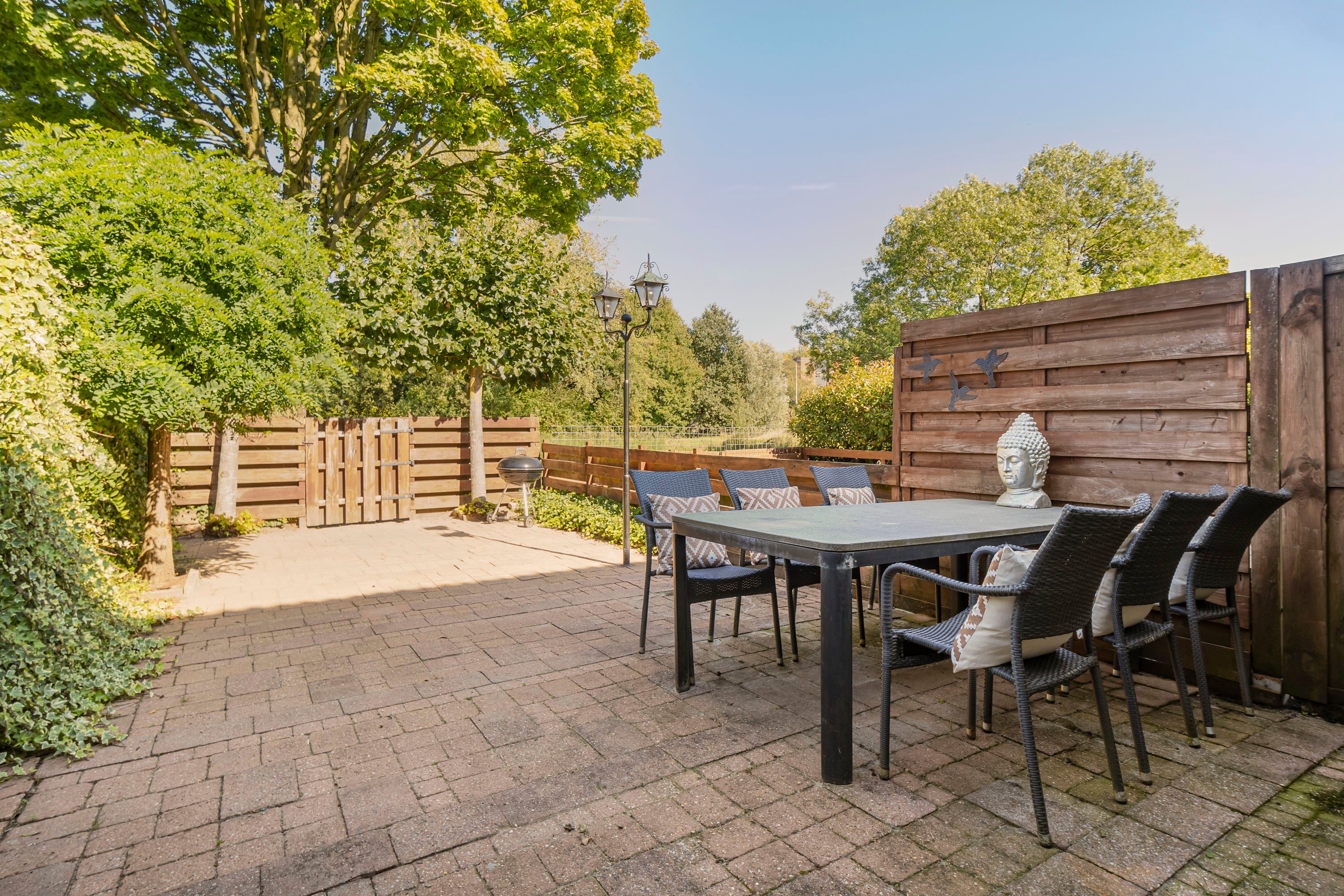 De ruime en diepe tuin is georiënteerd op het noorden en biedt zowel zonnige plekjes als koele, schaduwrijke hoekjes. In de achtertuin kun je onder de overkapping heerlijk in de schaduw ontspannen, terwijl je in de voortuin volop van de zon kunt genieten. Ook in de achtertuin vind je ideale plekjes om in de zon ter genieten. Er is volop ruimte om diverse zit- en speelplekken in te richten en te genieten van een uitzicht op groen. Bovendien tref je in de voortuin een praktische (fietsen)berging en eigen parkeergelegenheid.