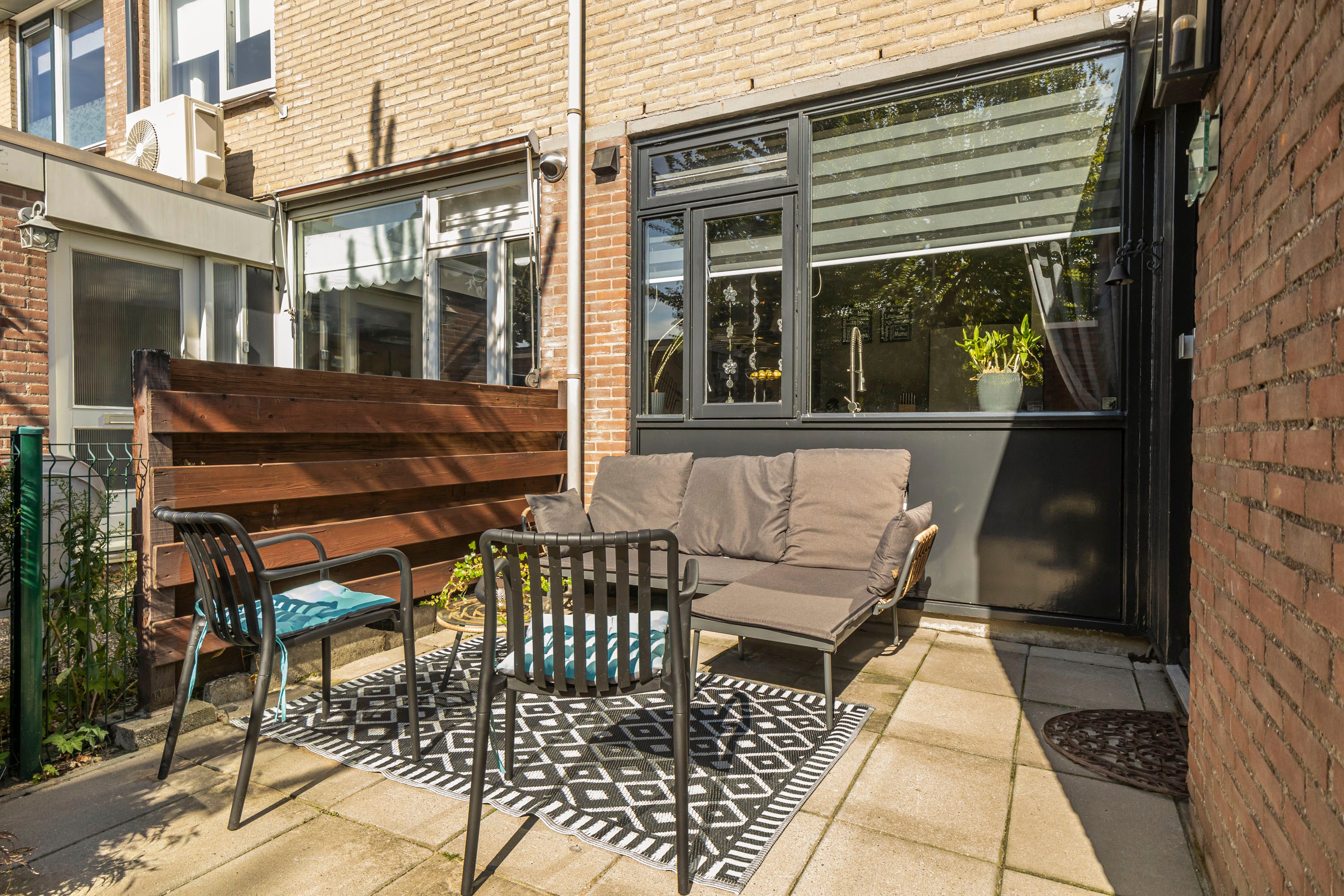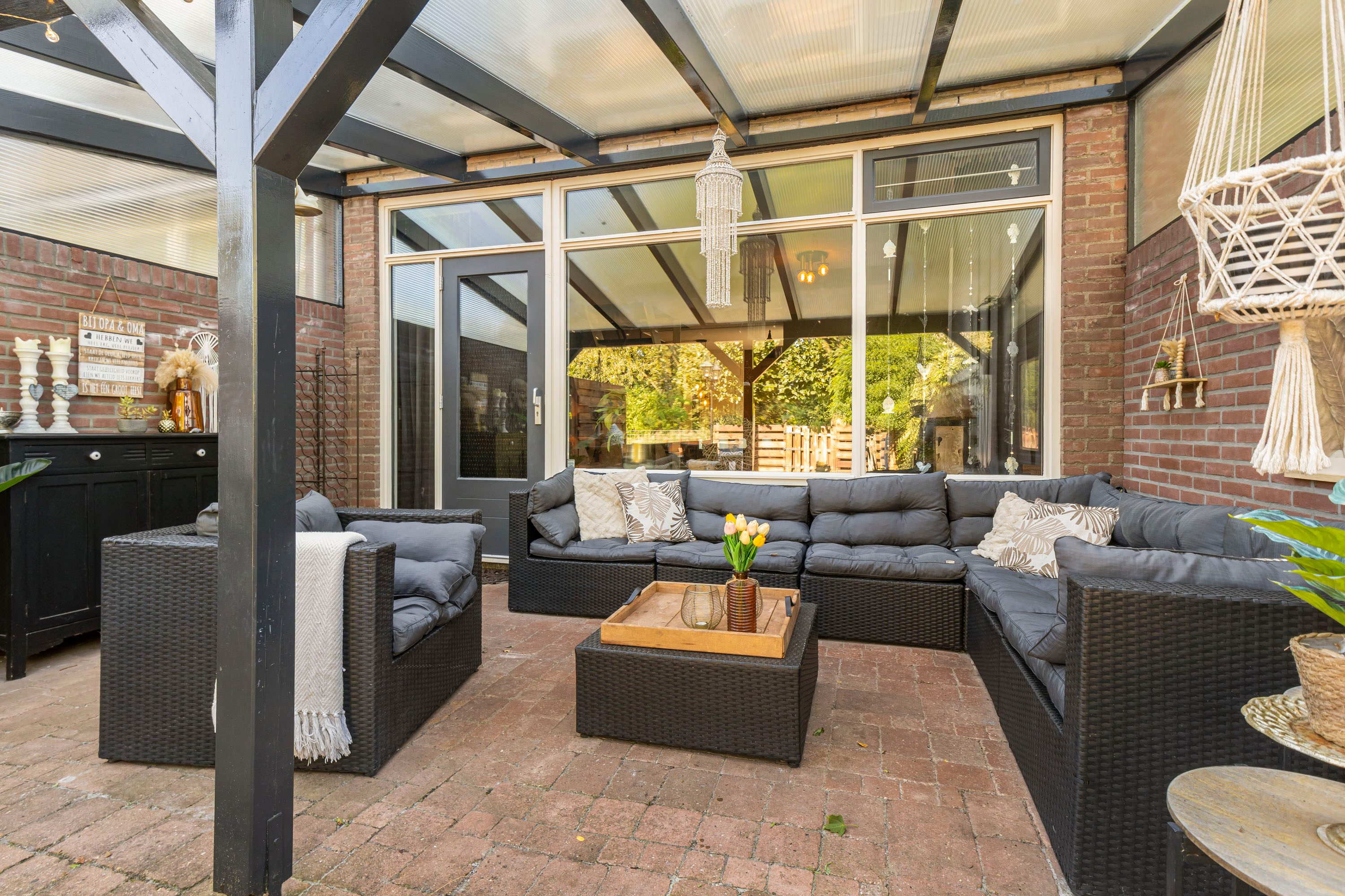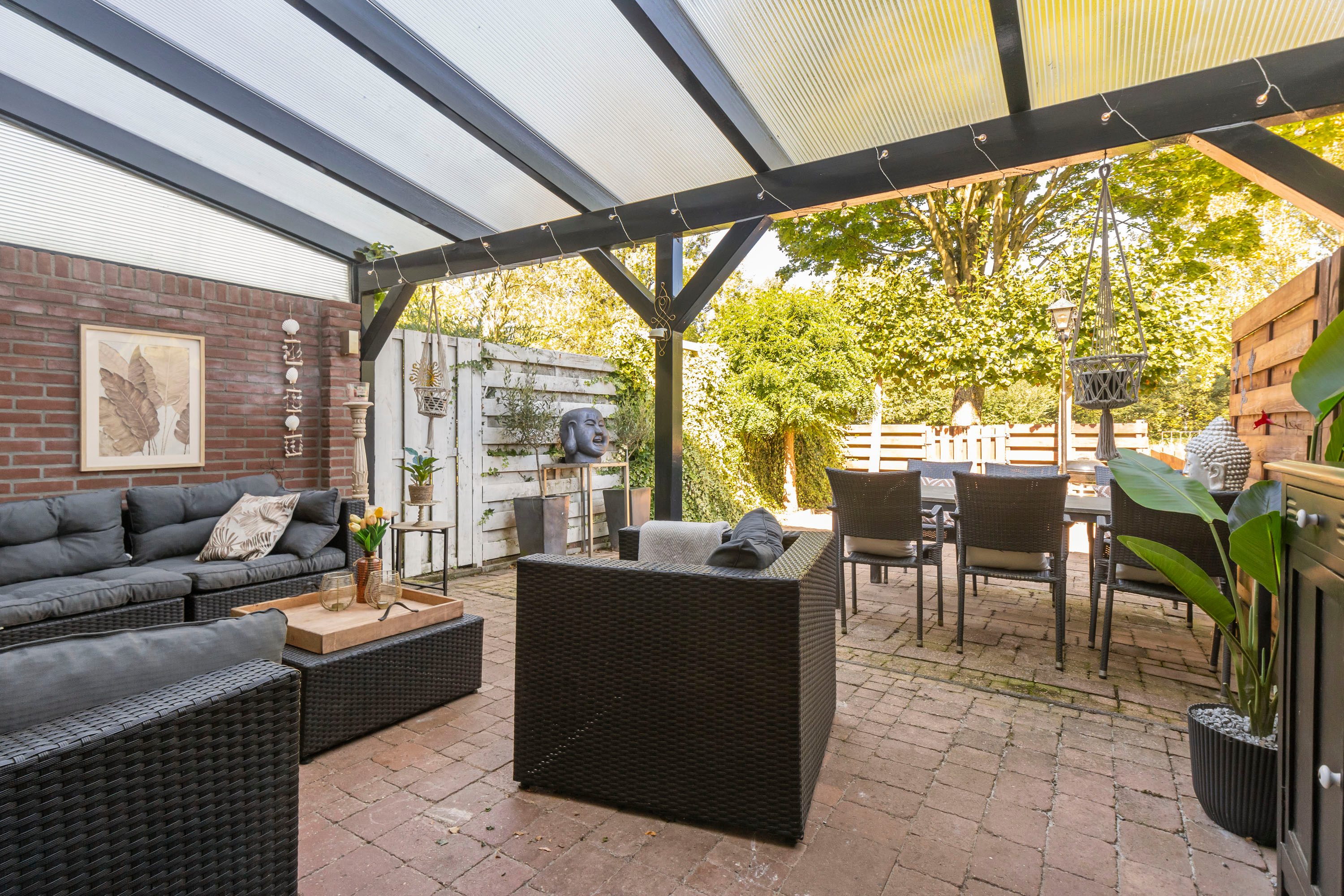 - Een heerlijke voortuin op het zonnige zuiden en een diepe achtertuin met overkapping