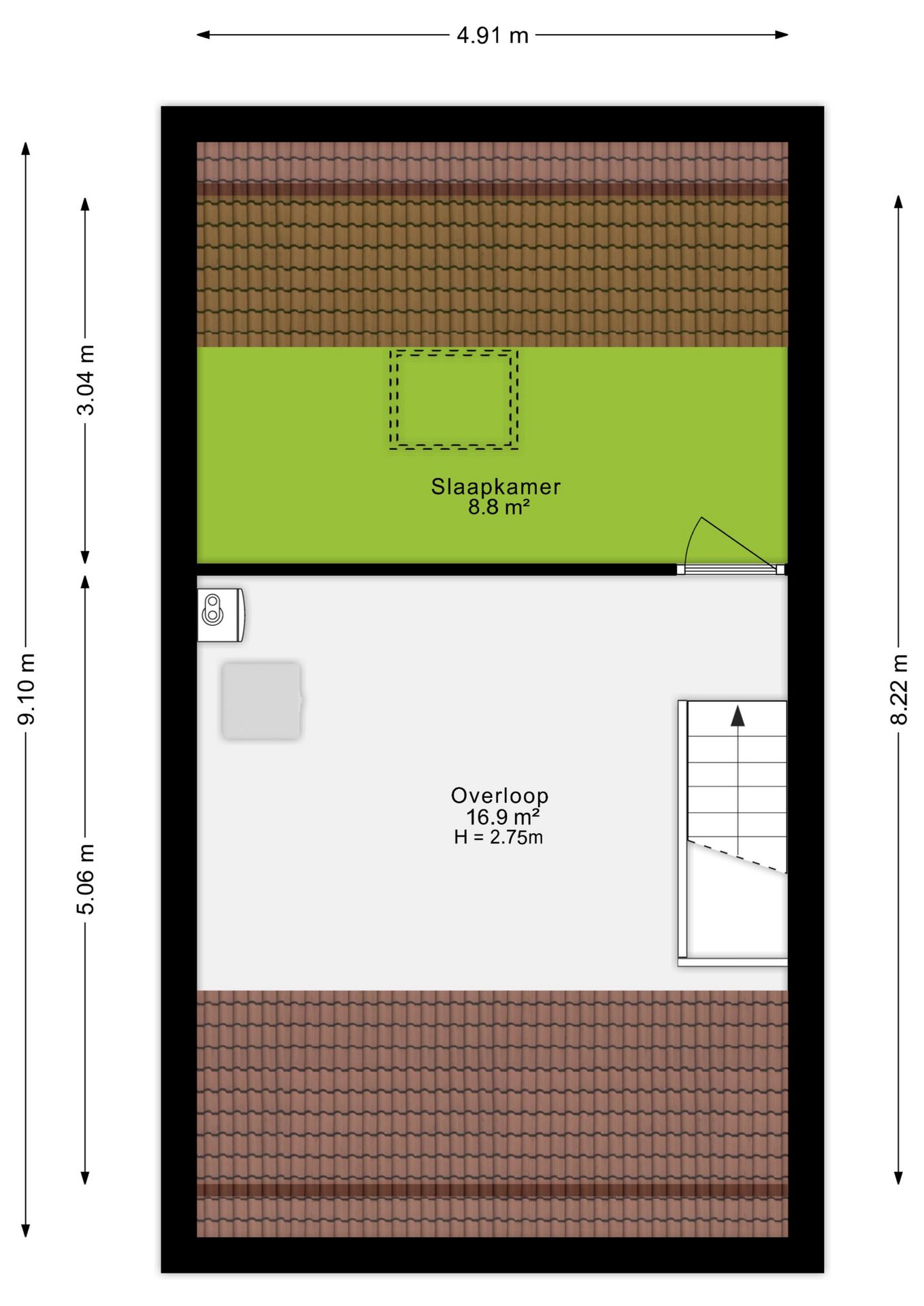Via een vaste trap bereik je de volwaardig tweede verdieping. Deze verdieping is voorzien van een ruime overloop (17m²) waar de C.V.-ketel staat opgesteld en de witgoed-aansluiting is. Tevens tref je op deze verdieping een vierde slaapkamer. Deze slaapkamer heeft een afmeting van circa 9m² en is voorzien van een groot dakraam.