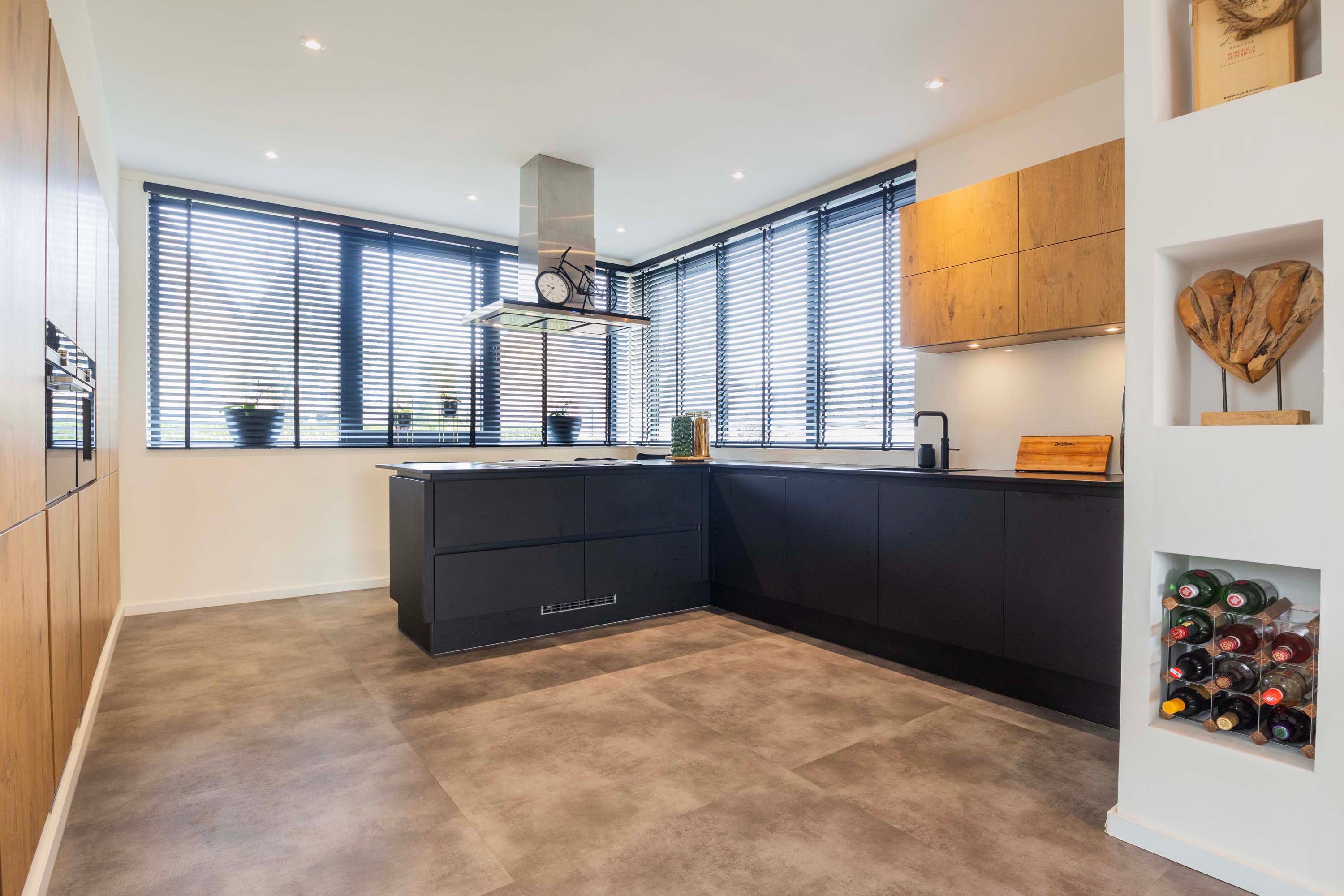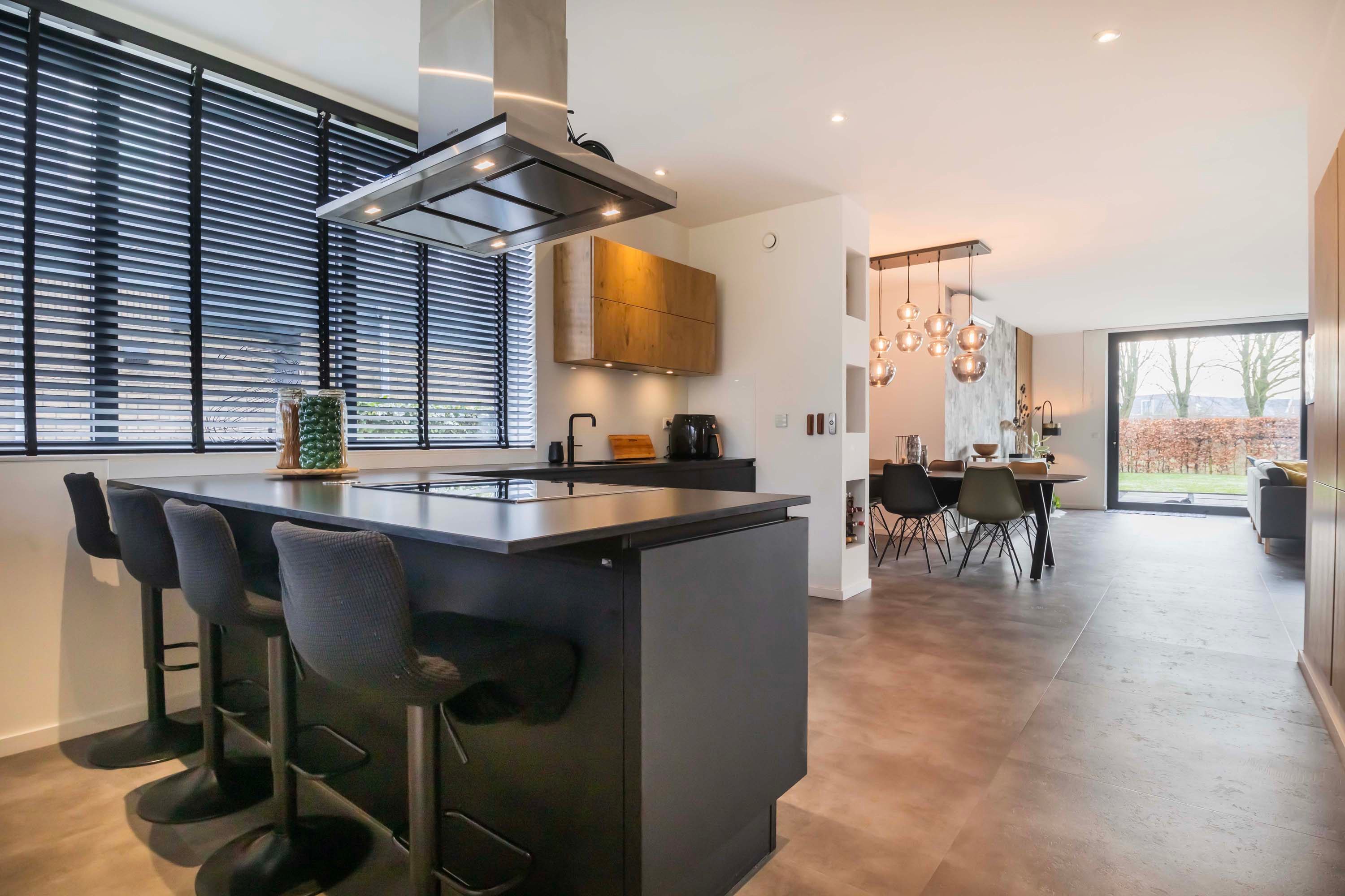 Via een eigen oprit, waar je gemakkelijk meerdere auto's kunt parkeren, bereik je de woning. De entree met ruime hal, meterkast en zwevend toilet geeft je toegang tot de woning. De royale en sfeervolle woon-eetkamer is voorzien van een PVC vloer en heerlijk veel lichtinval door de vele raampartijen. De luxe keuken met schiereiland is opgesteld met een combinatie van zwart en hout en is voorzien van diverse inbouwapparatuur, te weten: een kookplaat, afzuigkap, combi-oven/magnetron, koelkast, vriezer en een vaatwasser. Tevens is er veel kastruimte aanwezig in de kastenwand. De gehele begane grond is voorzien van vloerverwarming.