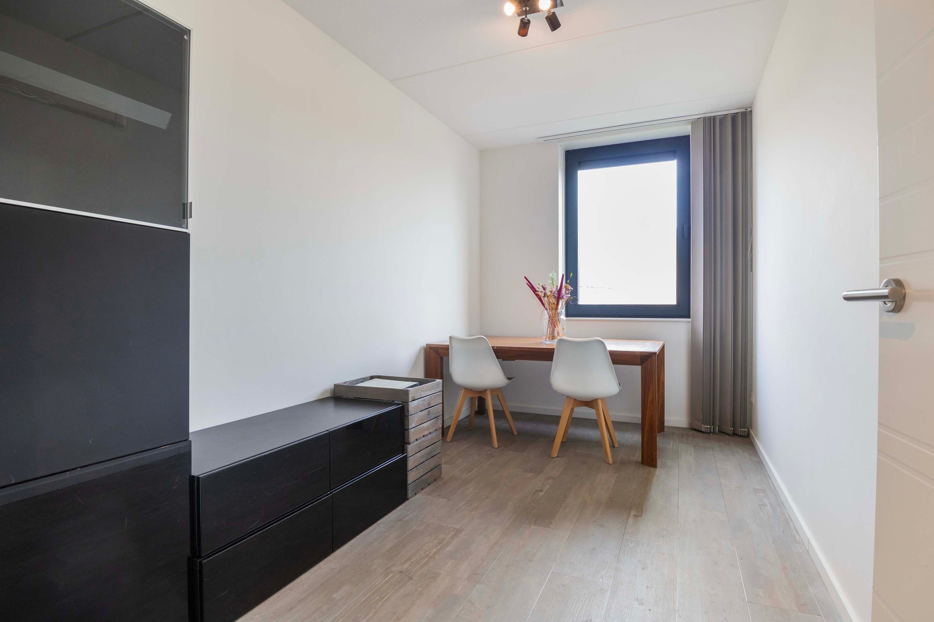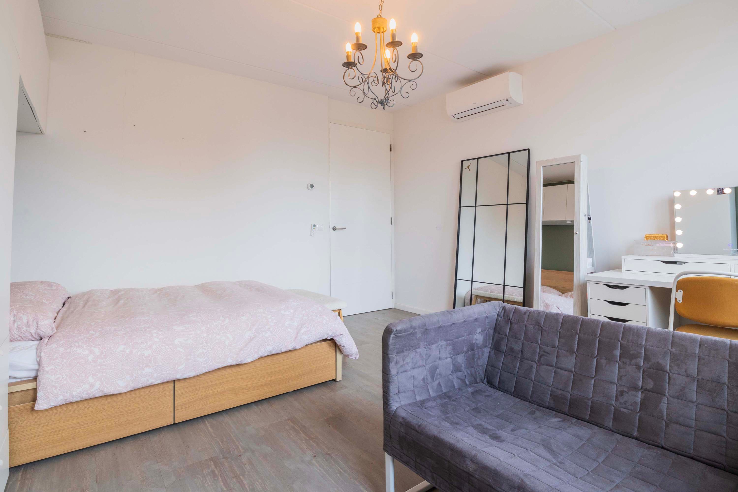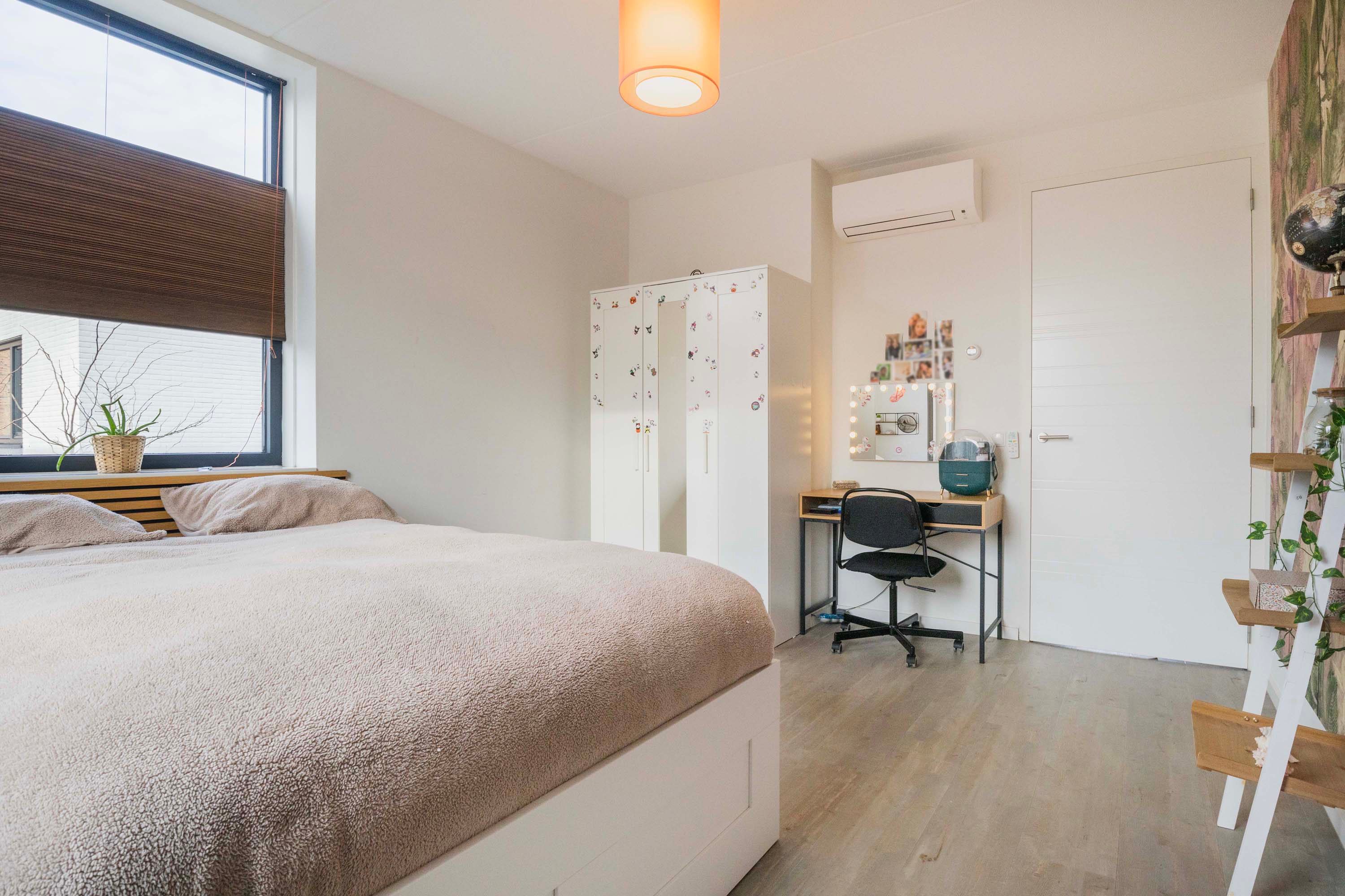 Via een vaste trap bereik je volwaardig 2e verdieping en deze verdieping zal je echt verrassen! Hier bevindt zich namelijk nog een slaapkamer welke een afmeting heeft van 31,3m². Deze slaapkamer is voorzien van een inloopkast, een eigen badkamer en geeft je toegang tot het ruime dakterras. De badkamer is eveneens opgesteld in een moderne kleurstelling en voorzien van een inloopdouche, wastafel met wastafelmeubel en een toilet. Deze etage is ook gemakkelijk voor andere doeleinden te gebruiken. Op de overloop is nog een berging te bereiken waarin de wasmachine-aansluiting aanwezig is.