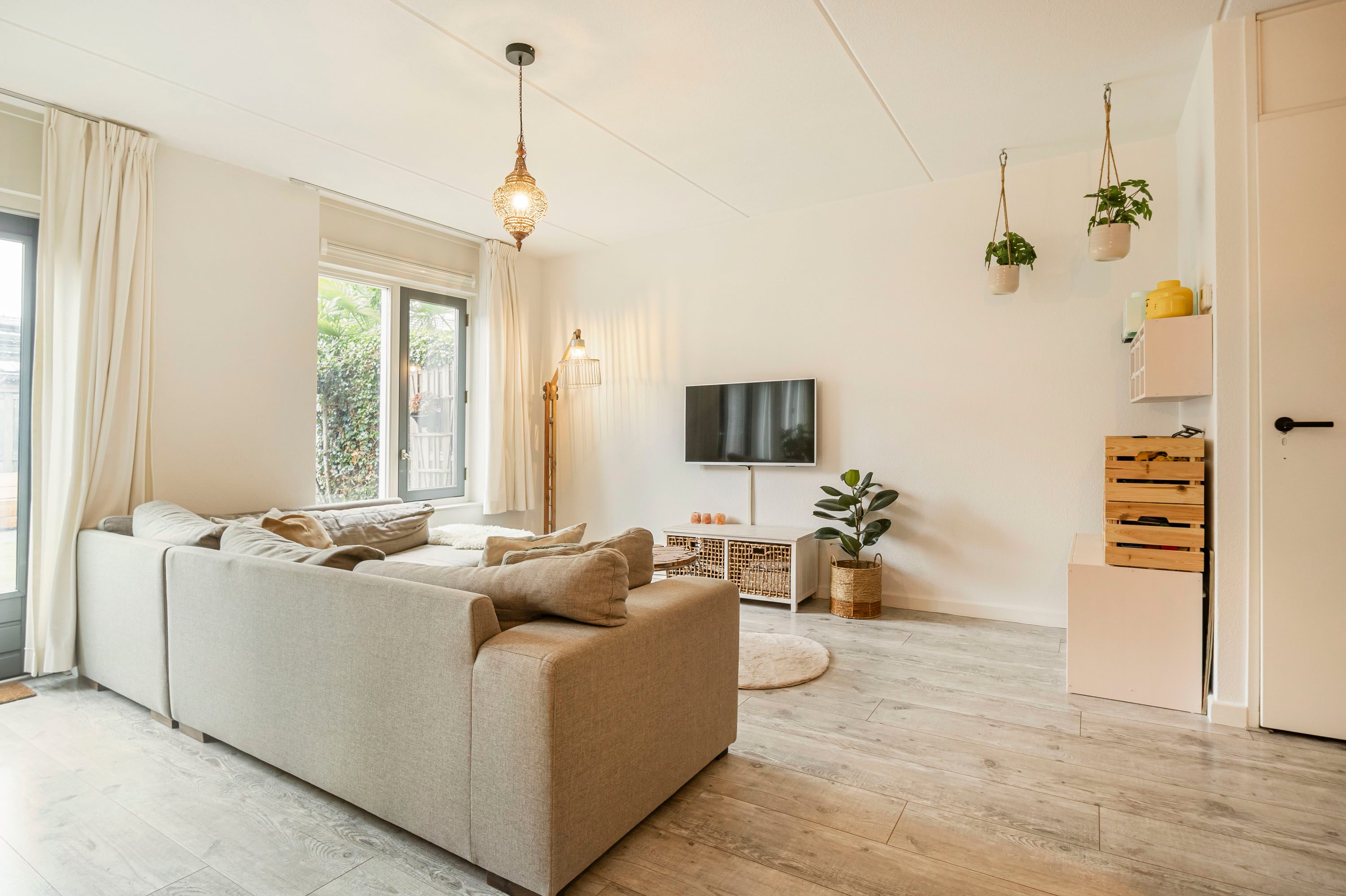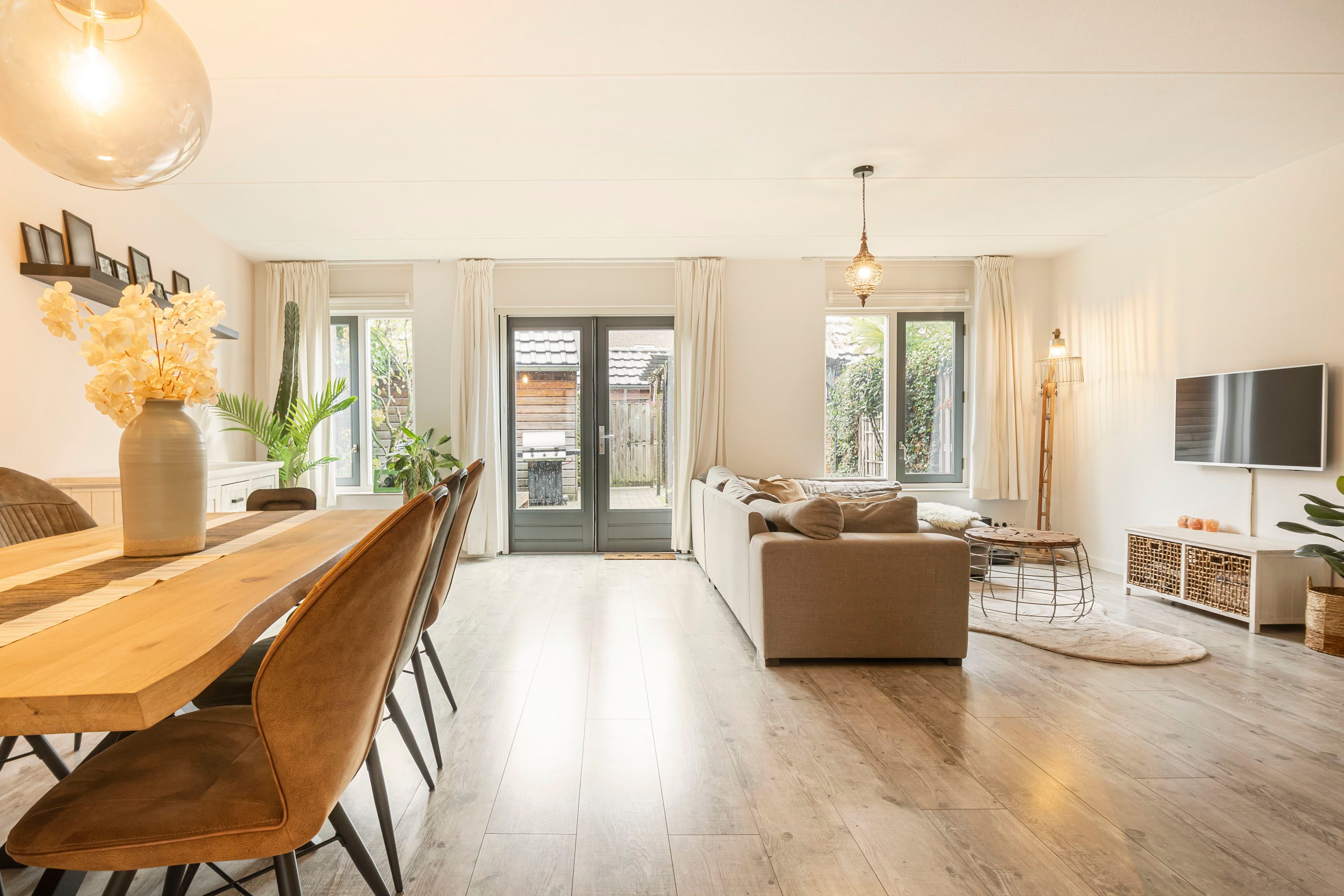 - Brede woonkamer met openslaande deuren naar de tuin