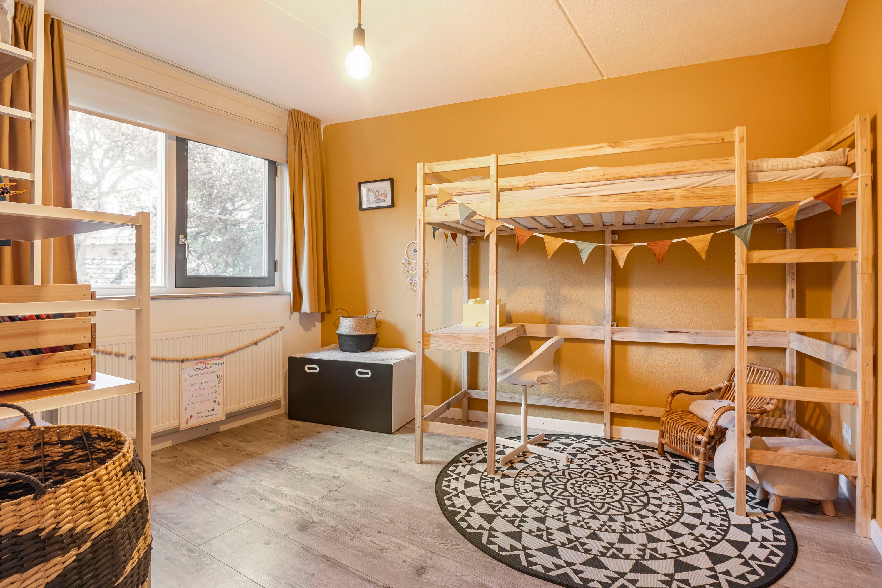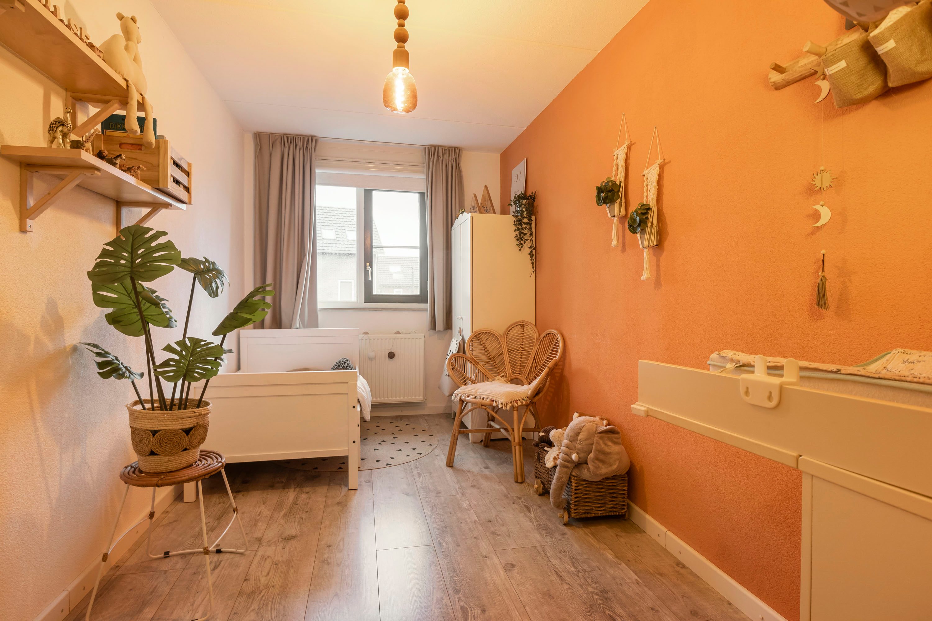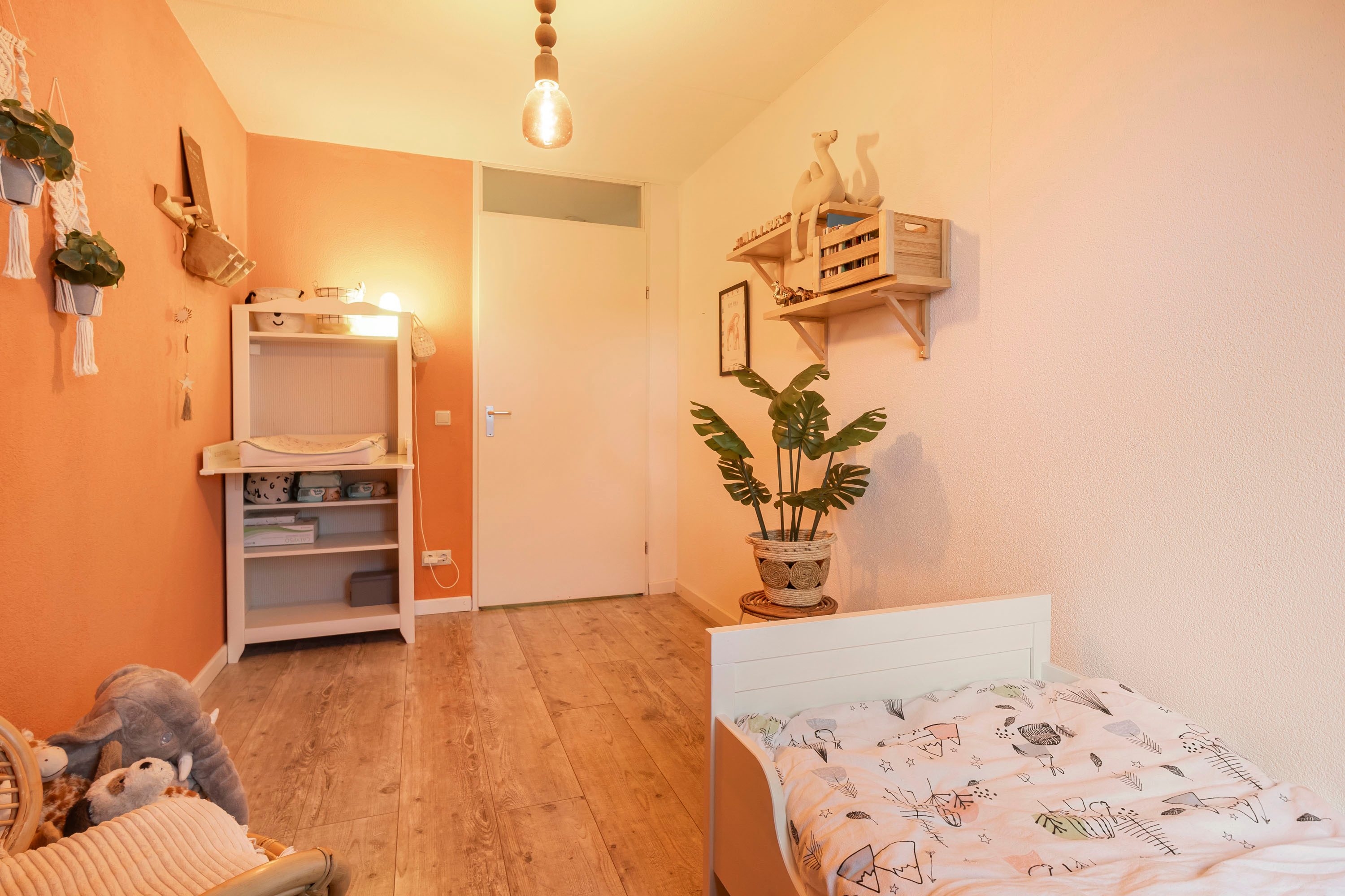 De tweede verdieping is praktisch ingedeeld en beschikt over een ruime overloop met een handige wasruimte. Op deze verdieping is een vierde slaapkamer gerealiseerd, voorzien van een dakkapel die zorgt voor extra licht en ruimte. Onder de schuine kanten is extra bergruimte aanwezig, ideaal voor het opbergen van seizoensspullen.