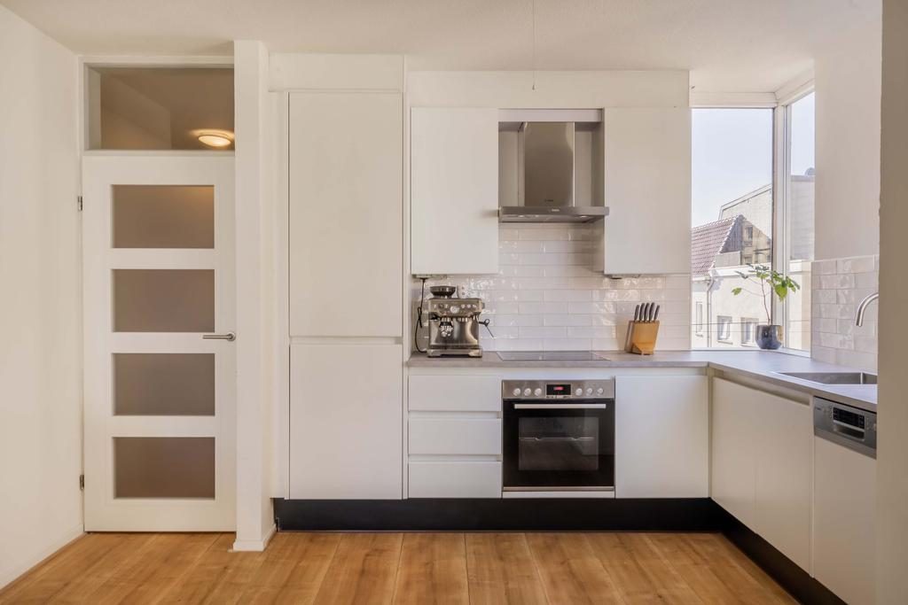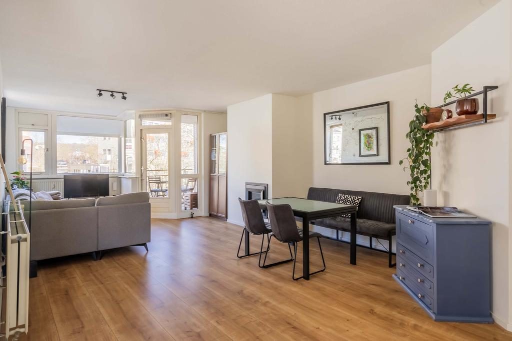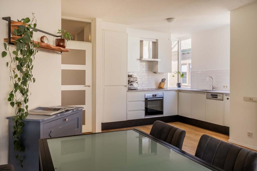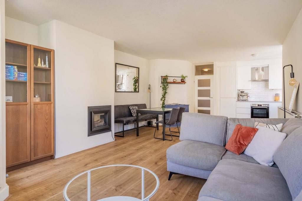 Middels een centrale entree, met de brievenbussen, bereik je via de lift of het trappenhuis het appartement. Via de entree met hal is er toegang naar alle vertrekken. De ruime woonkamer is voorzien van een sfeervolle ingebouwde kachel en een laminaatvloer. Daarnaast is de woonkamer voorzien van een fijn natuurlijk lichtinval door de aanwezige raampartijen. Vanuit de woonkamer is er toegang naar het balkon. De open keuken beschikt over een hoekkeuken in een lichte kleurstelling en beschikt over de volgende apparatuur: kookplaat, afzuigkap, oven, koelkast, vriezer en een vaatwasser. Door de raampartijen in de keuken ervaar je hier ook een prettig daglicht.