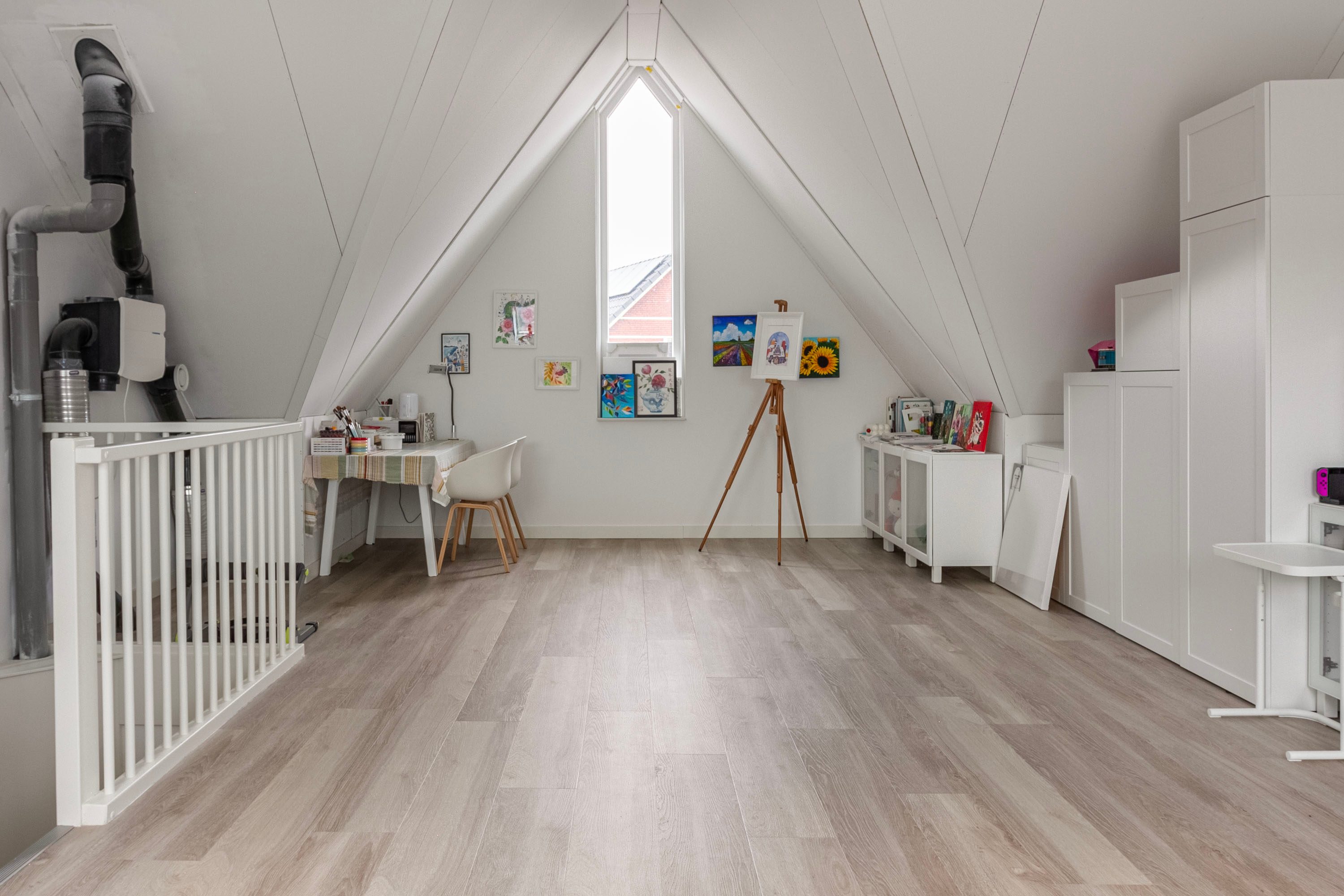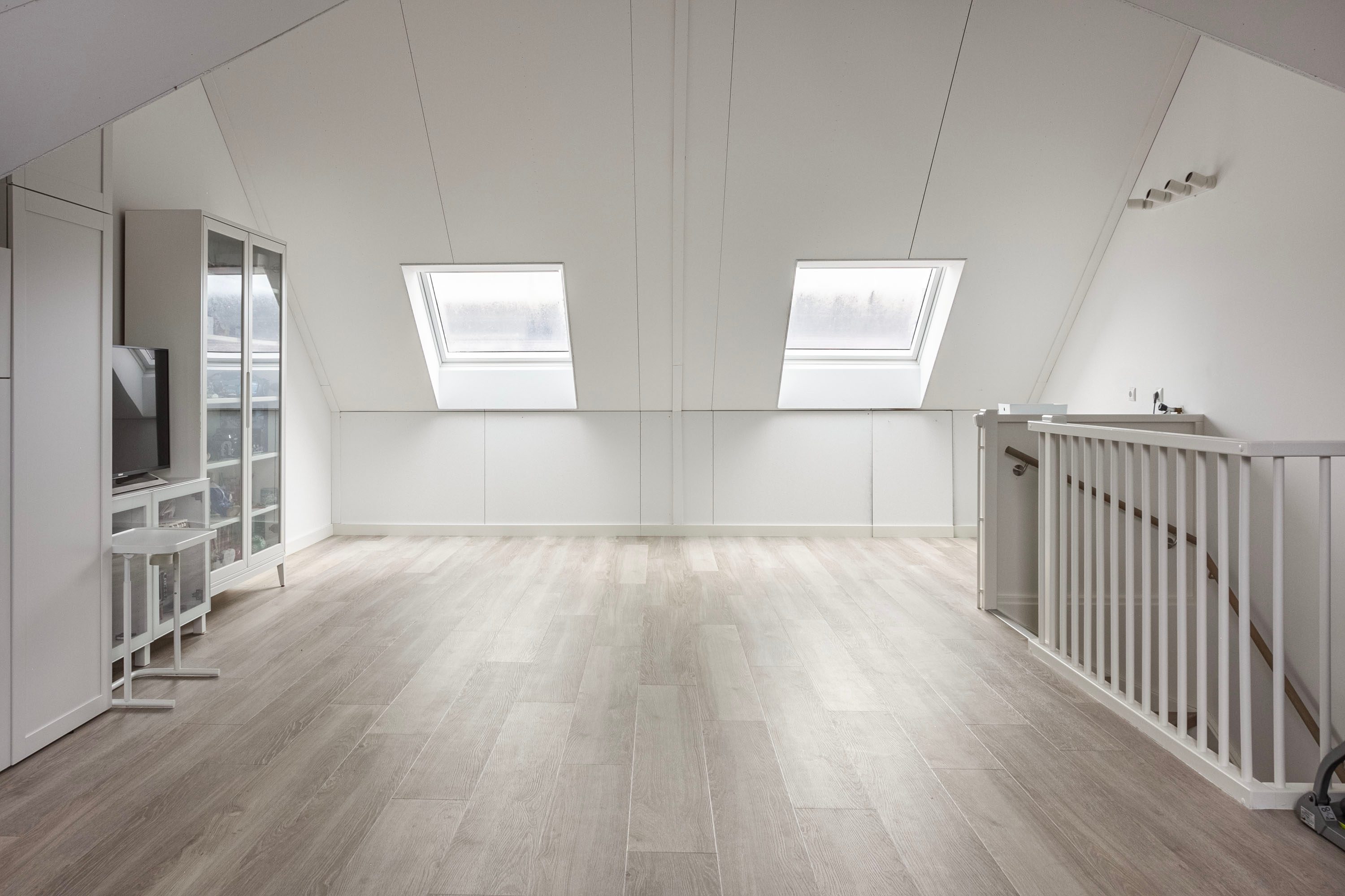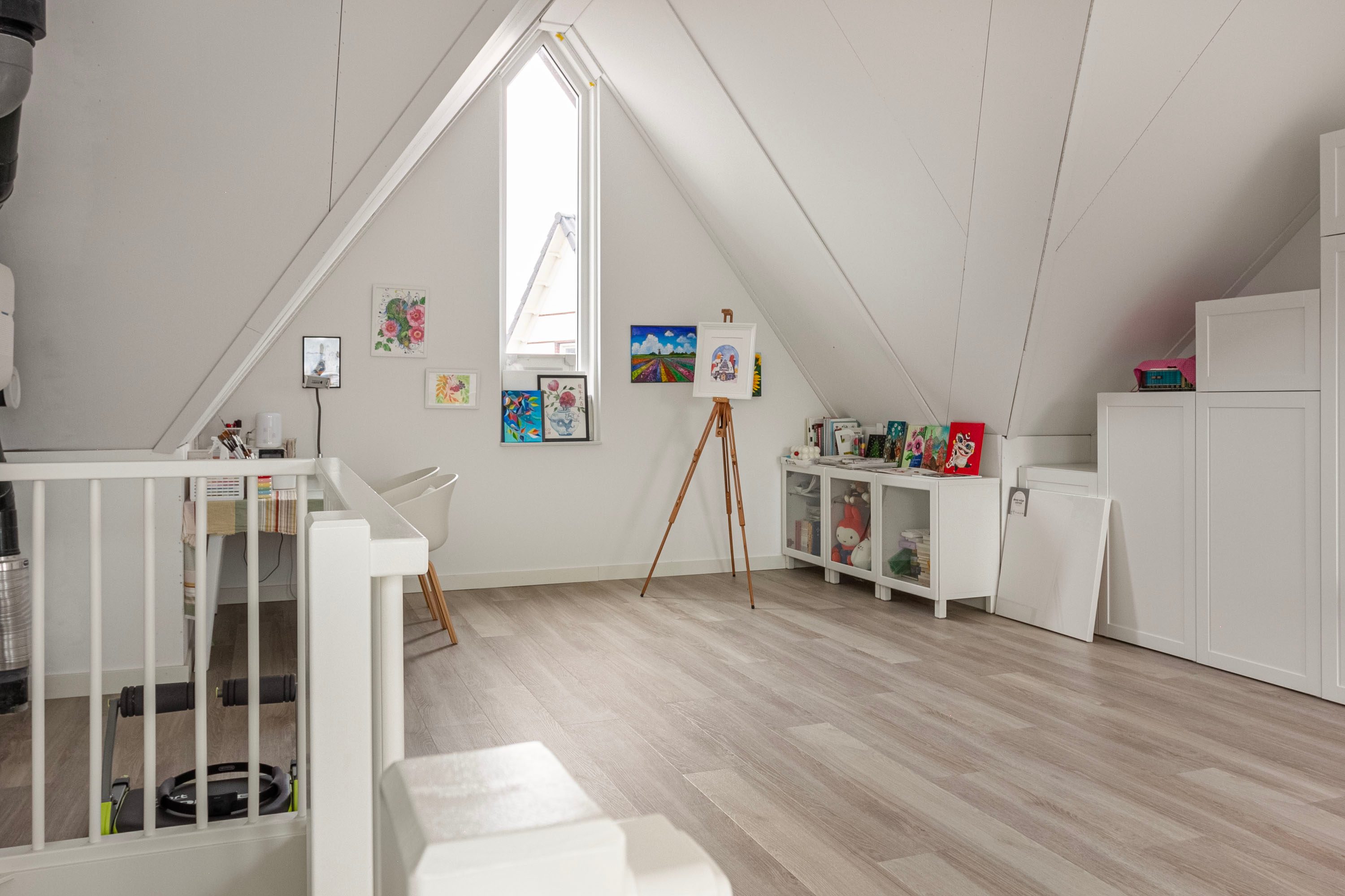 De tweede verdieping is een echte verrassing: een fraaie, ruime en multifunctionele ruimte met veel lichtinval, ideaal als master bedroom, studio of hobbyruimte. Hier bevinden zich tevens de wasmachineaansluiting en extra opbergmogelijkheden.