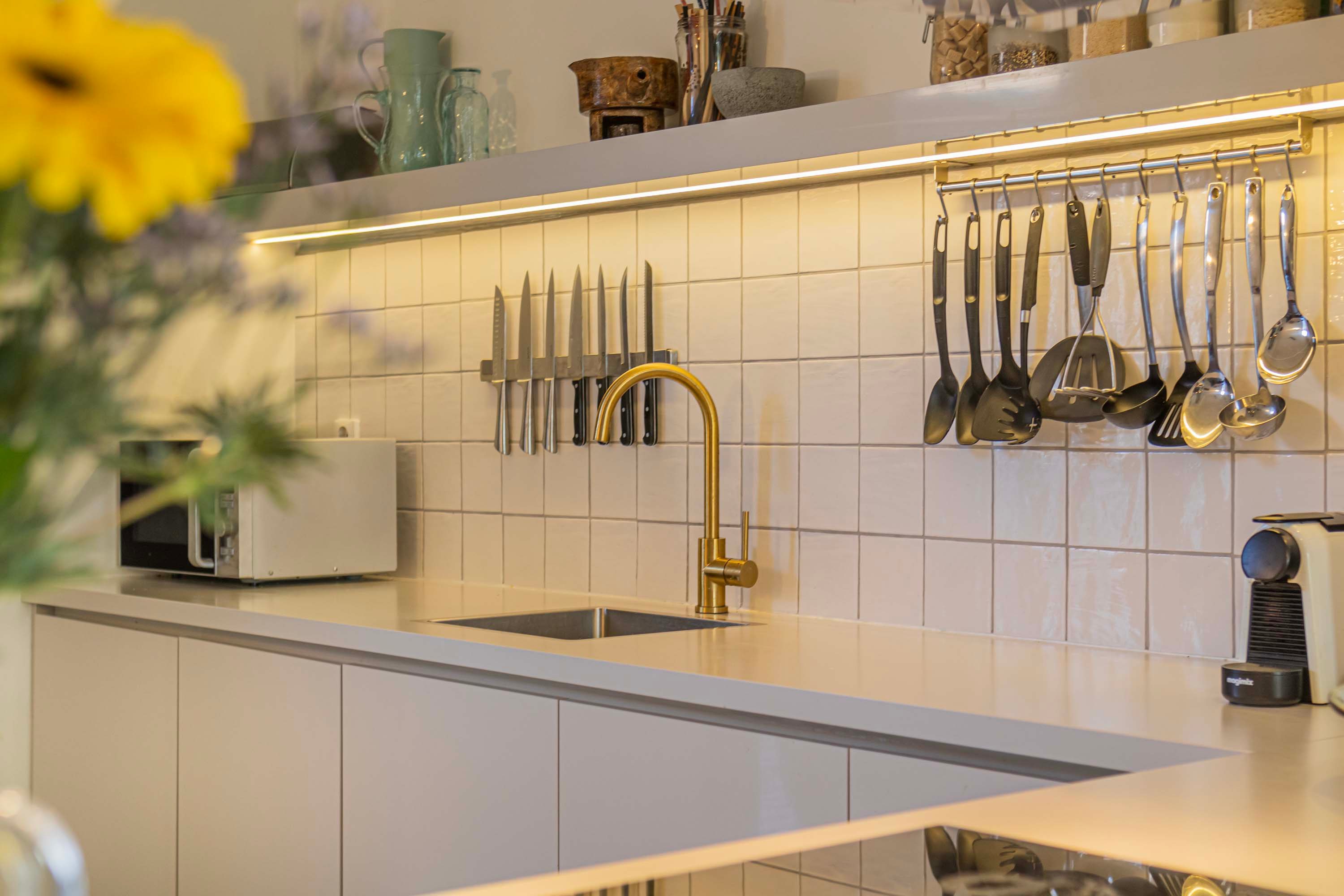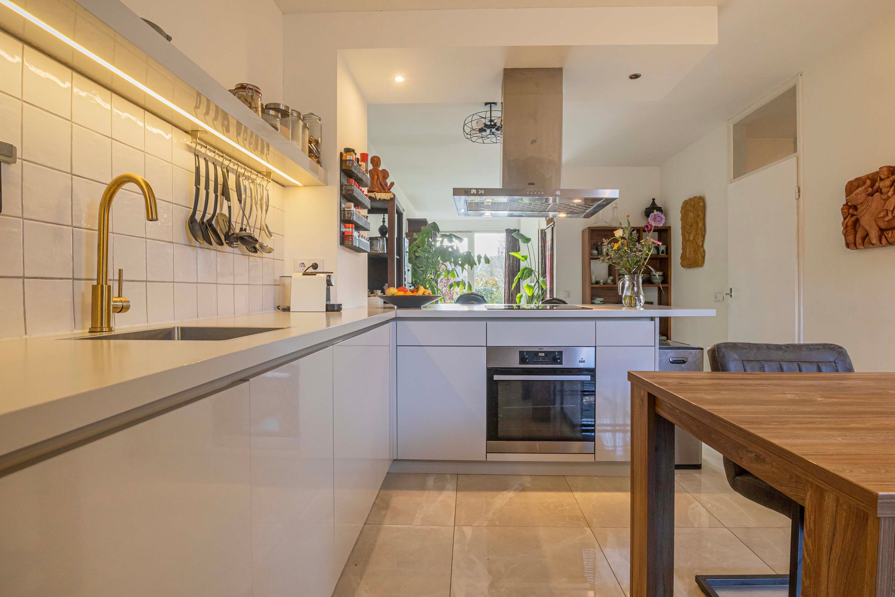 lichte kleurstelling en voorzien van diverse inbouwapparatuur, te weten: een kookplaat, afzuigkap, oven, koel-vriescombinatie (2021) en een vaatwasser (2021).