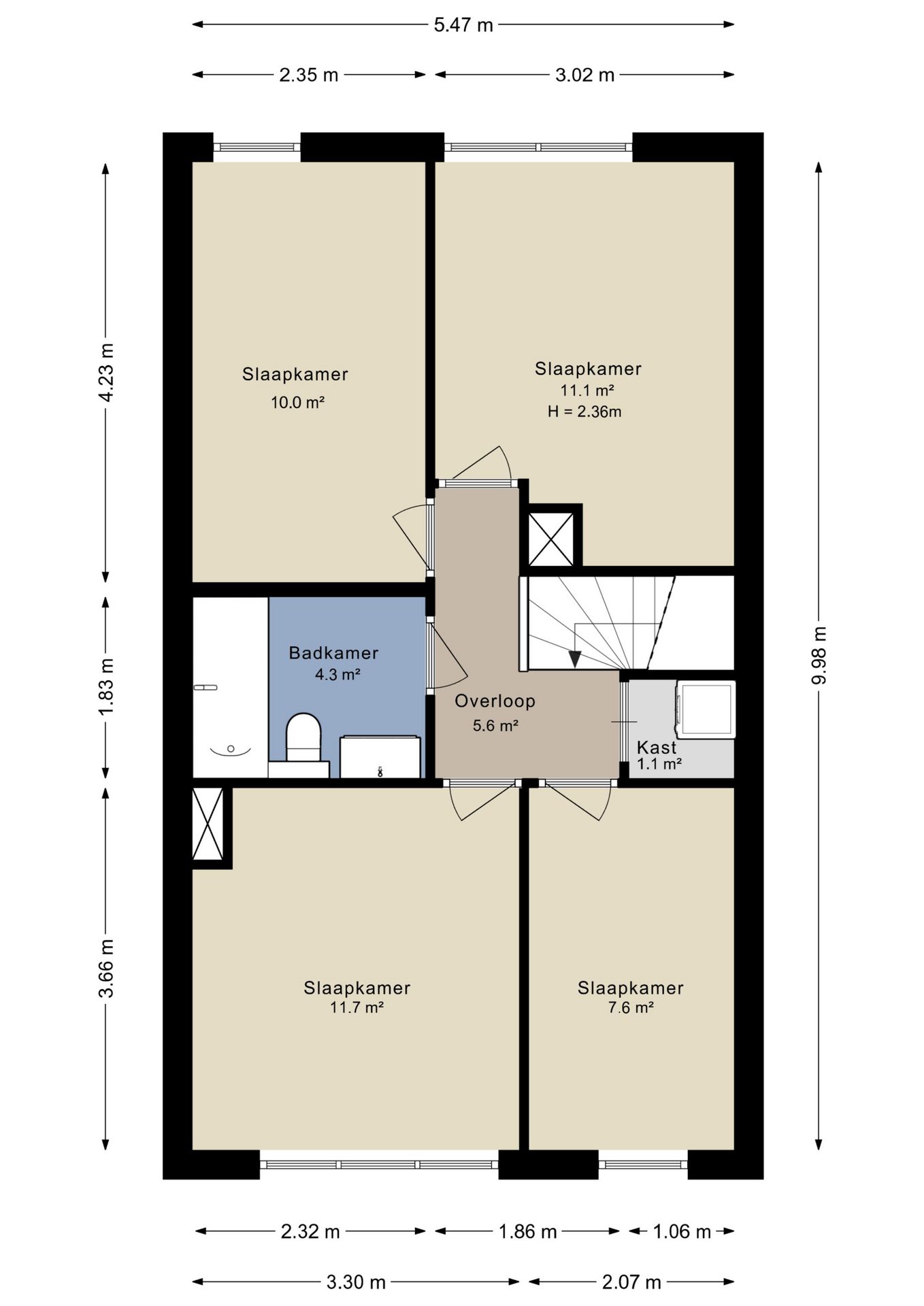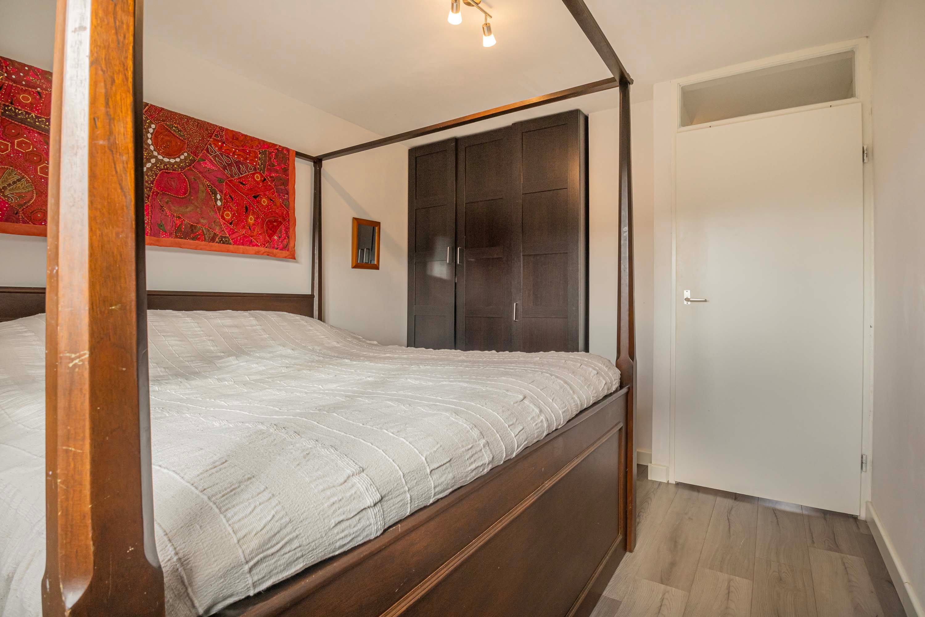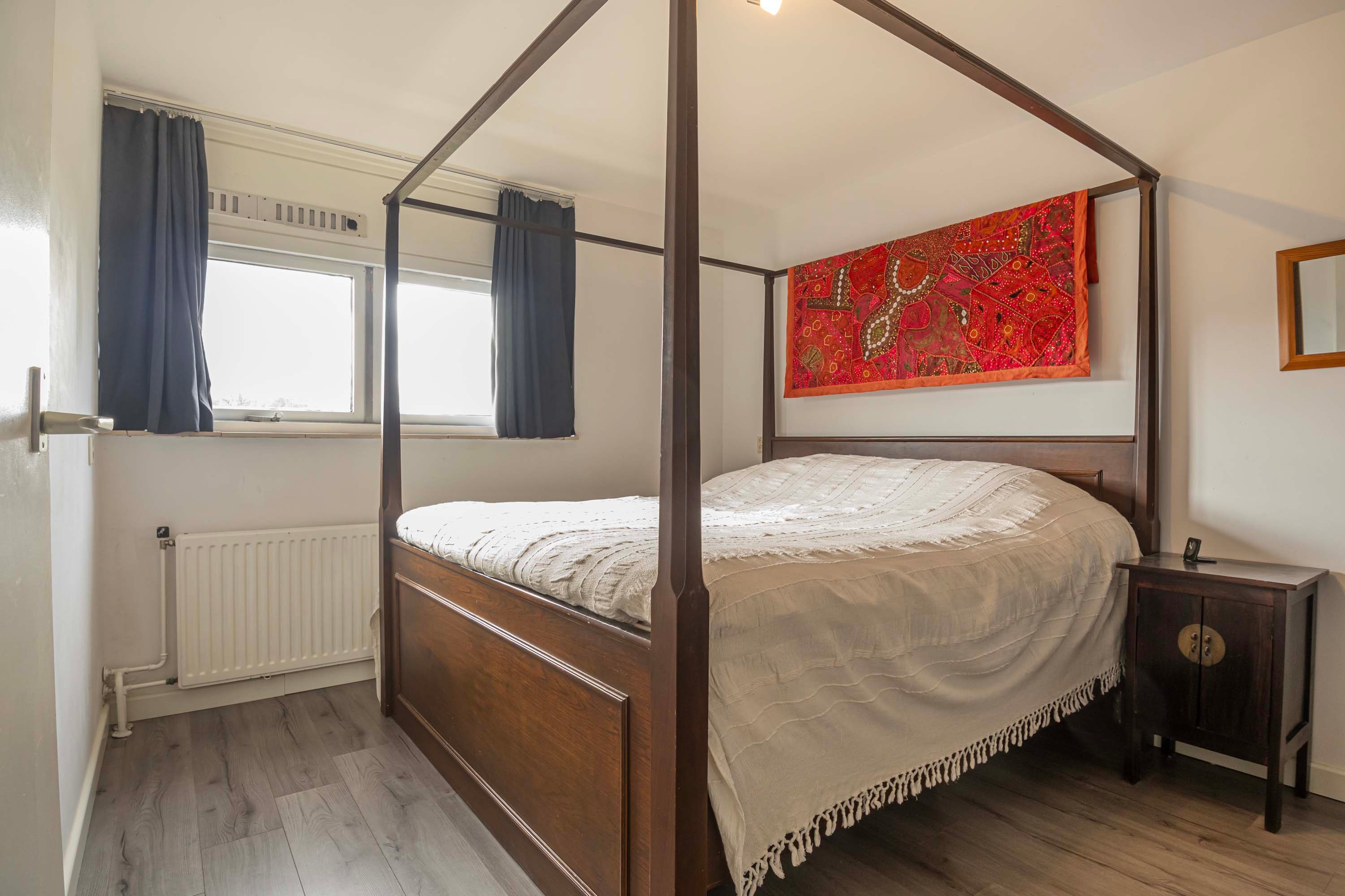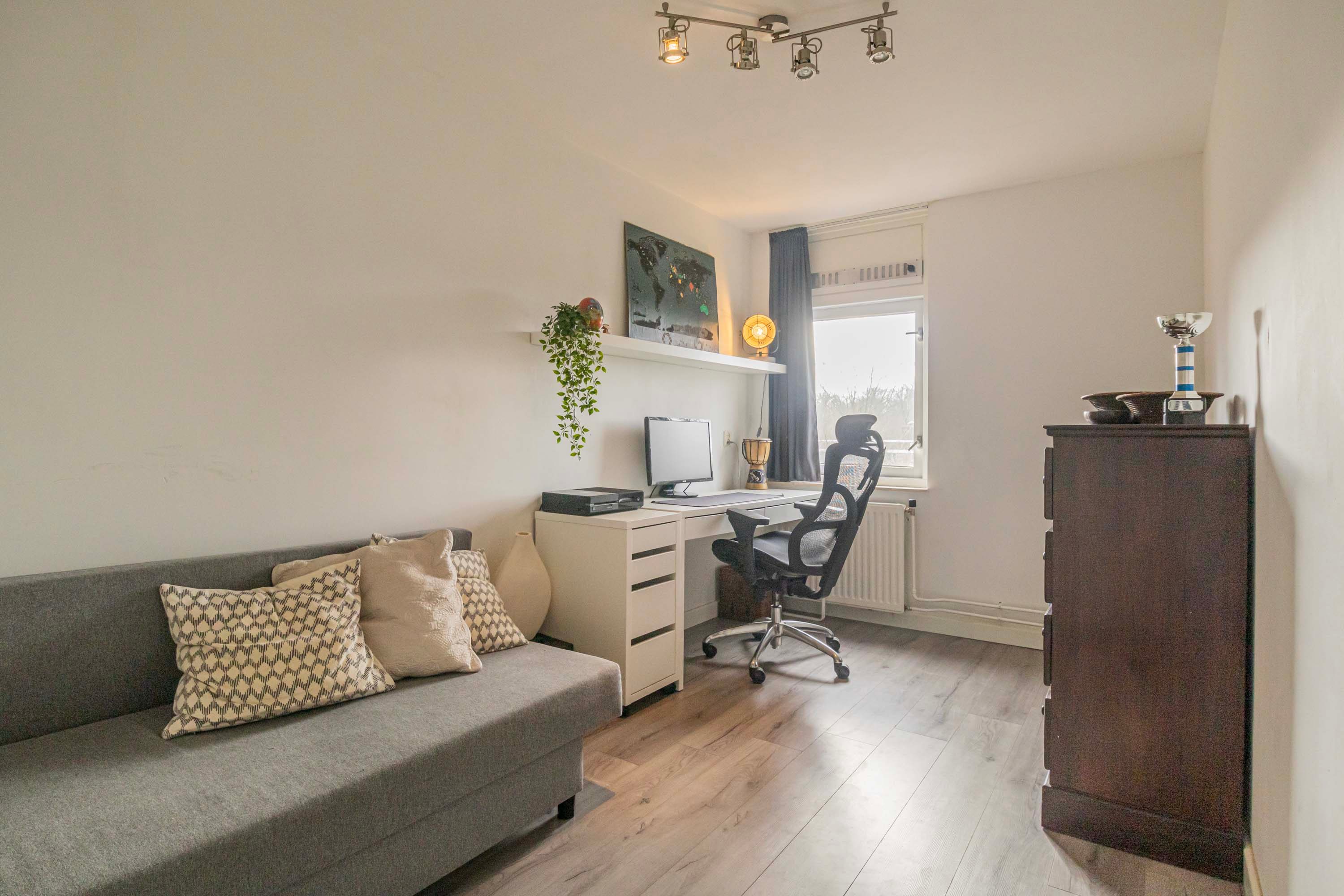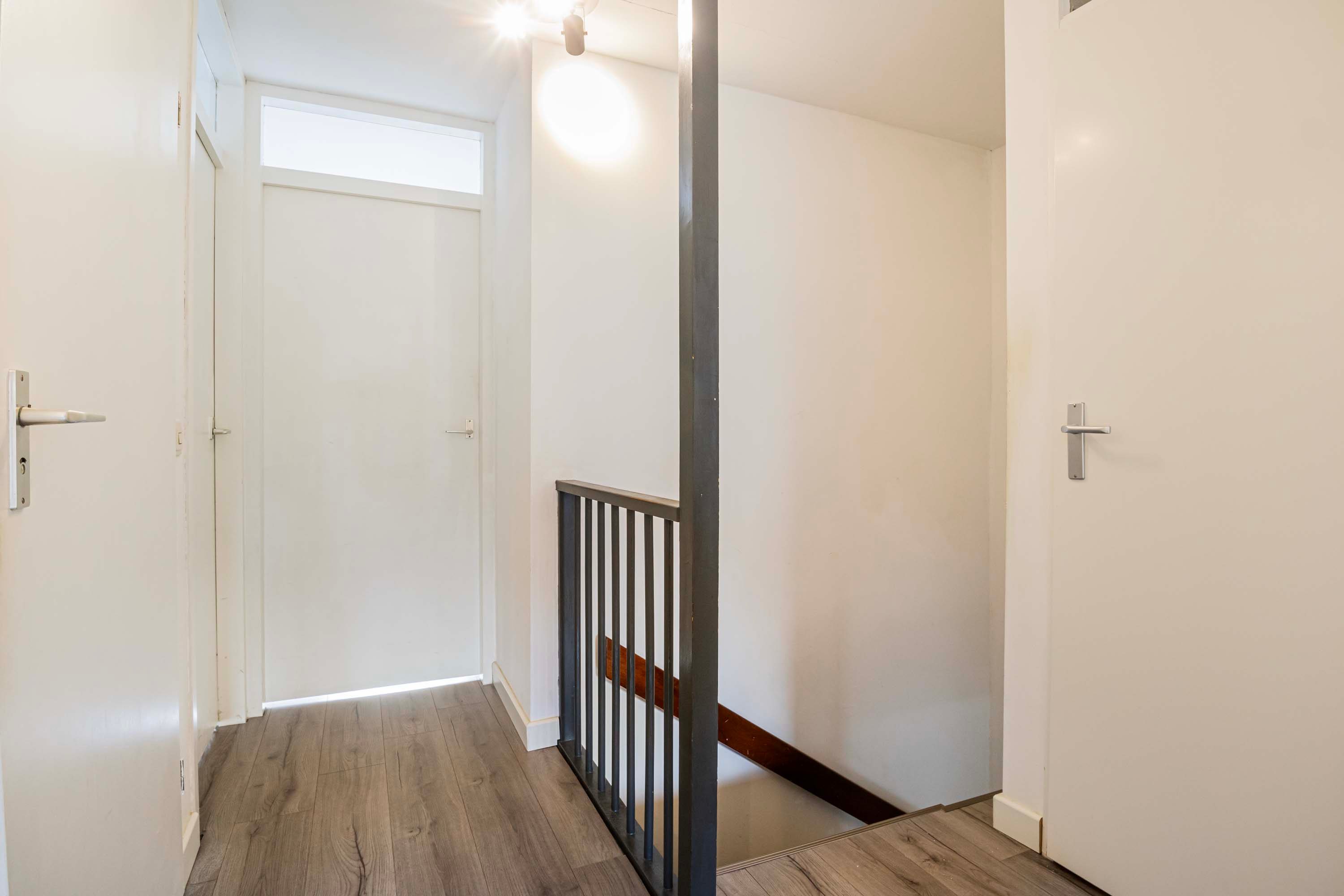 De overloop geeft toegang tot de slaapkamers en de badkamer. De slaapkamers zijn goed bemeten met een afmeting van 11,7m², 11,1m², 10m² en 7,6m² en zijn voorzien van een laminaatvloer en voldoende lichtinval. De badkamer (2019) is in een moderne kleurstelling en beschikt over een ligbad met douche, wastafel met wastafelmeubel en een toilet. Op de overloop bevindt zich tevens nog een vaste kast met wasmachine-aansluiting.