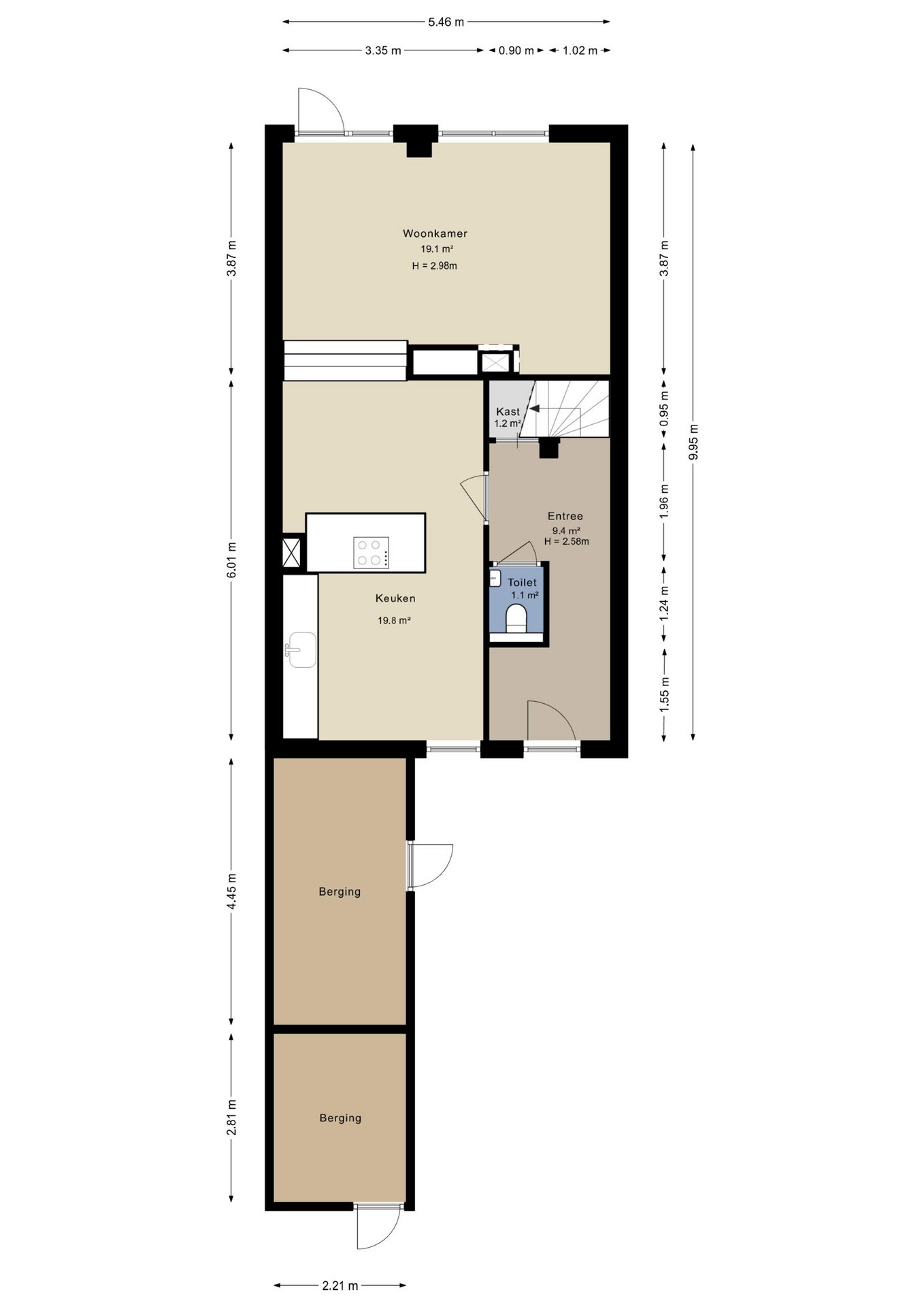 + Gedeeltelijk voorzien van kunststof kozijnen;