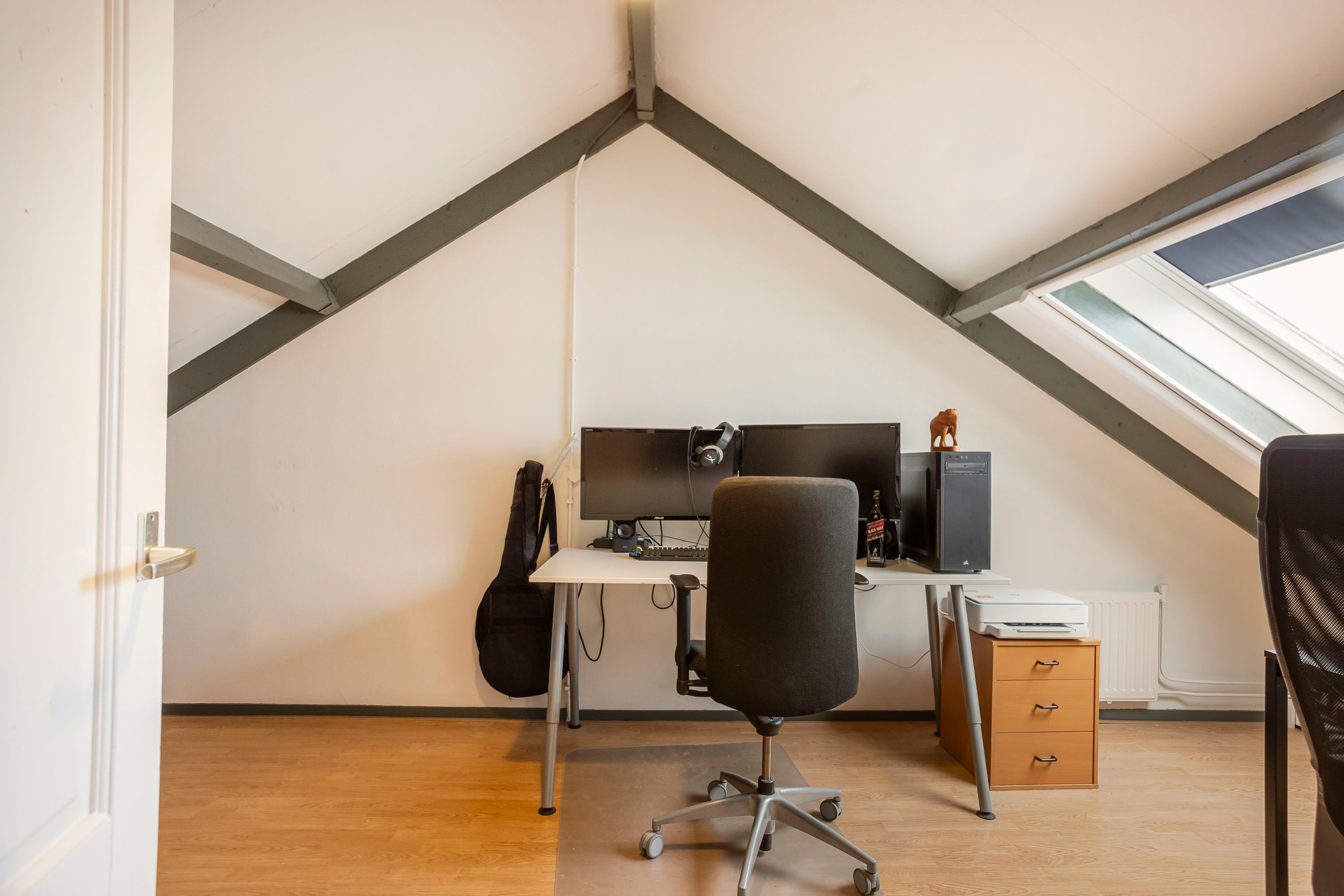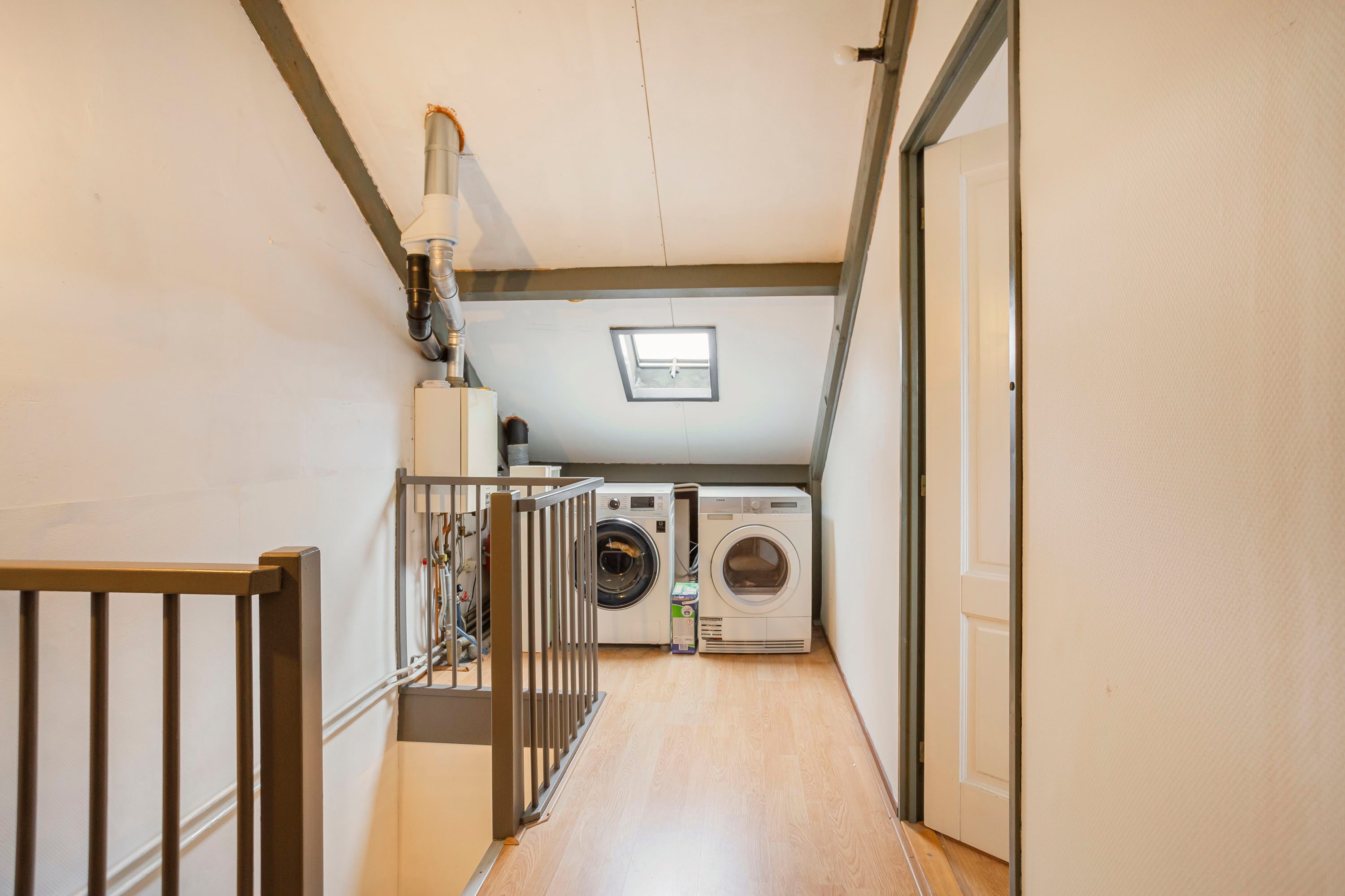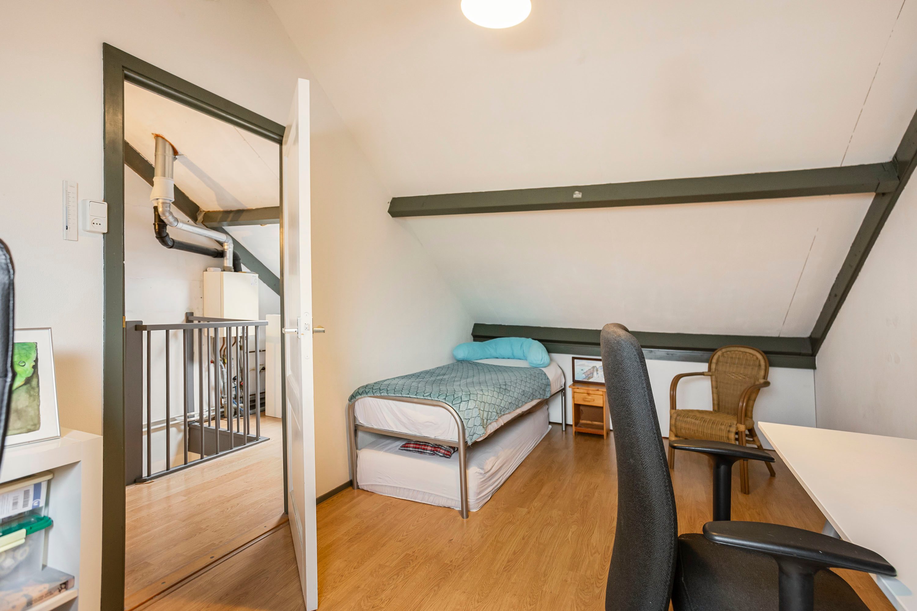 Via een vaste trap is de tweede verdieping bereikbaar. Op de voorzolder bevinden zich de witgoedaansluiting en de cv-installatie. Daarnaast is er een ruime vierde slaapkamer van circa 17 m², voorzien van laminaatvloer, dakraam en bergruimte. Deze ruimte kan ook perfect worden gebruikt als kantoor of logeerkamer.