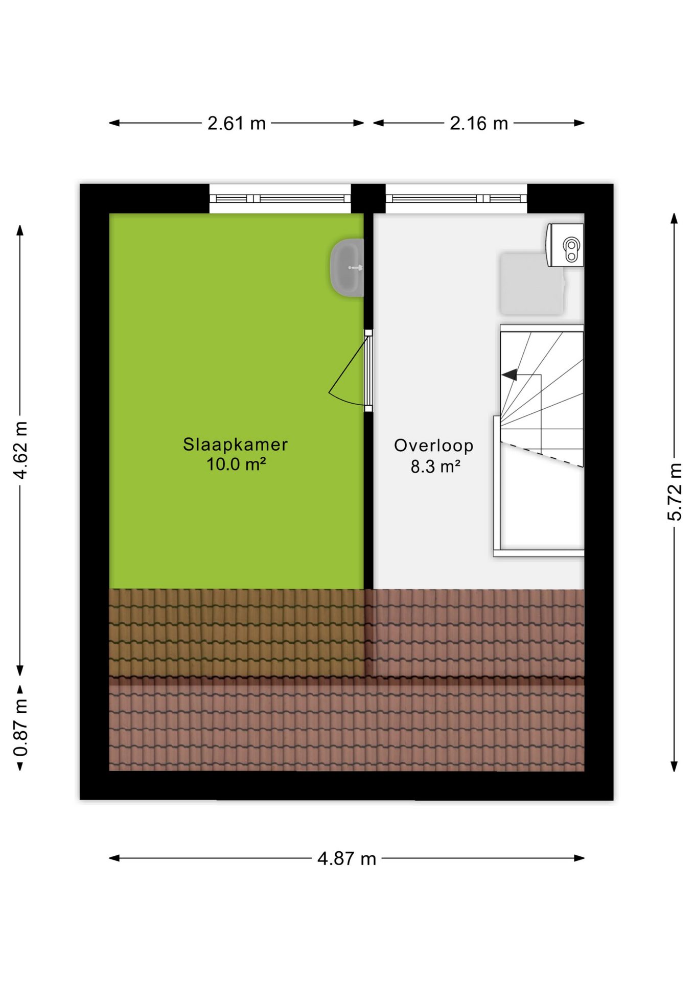 Via een vaste trap bereik je de tweede verdieping. Hier beschik je over een vierde slaapkamer van circa 10 m². Op de overloop bevinden zich de cv-opstelling en de aansluitingen voor witgoed.