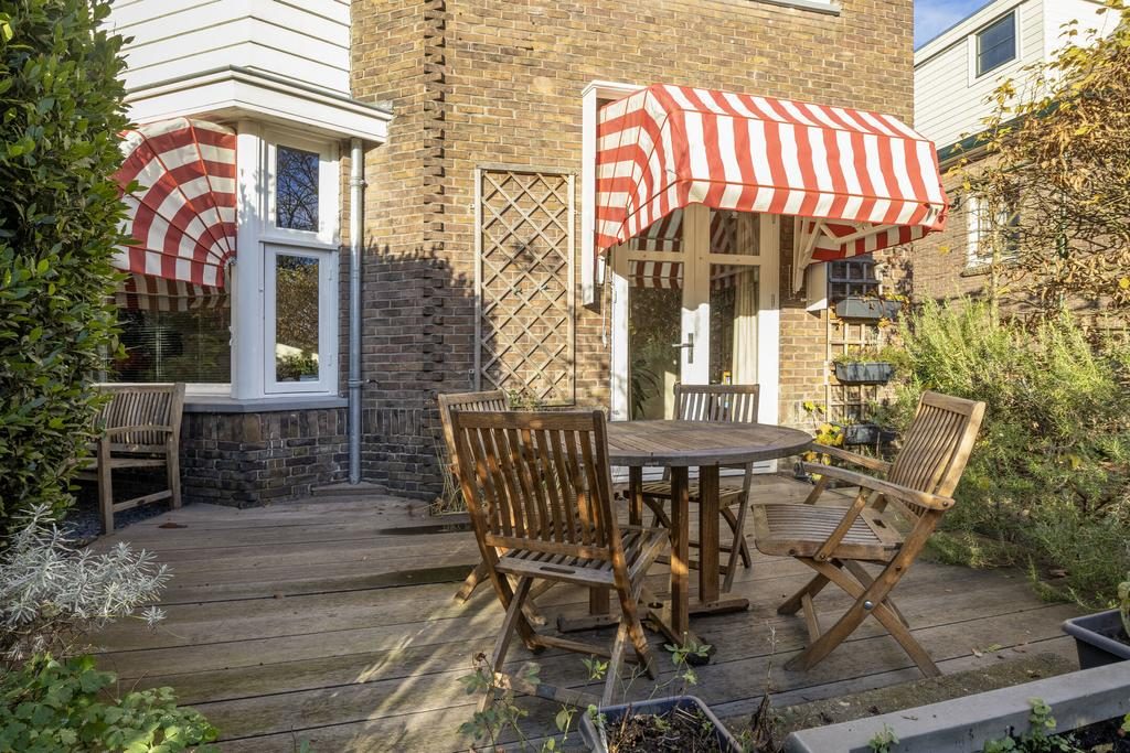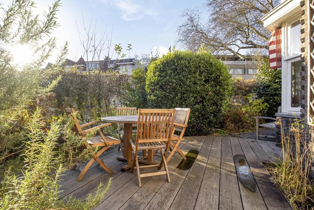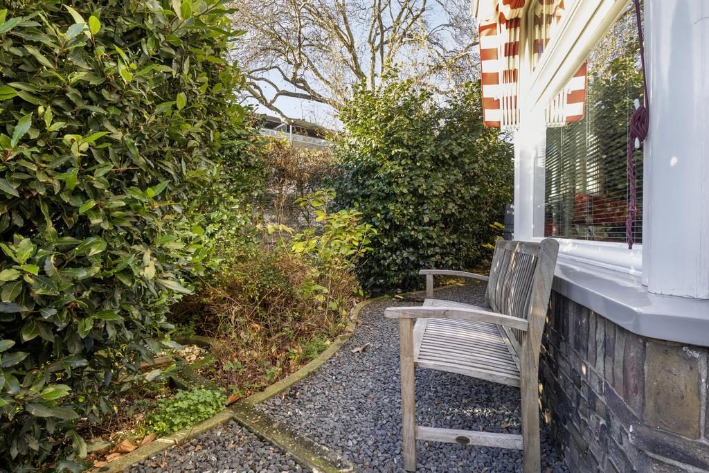 De buitenruimtes zijn net zo indrukwekkend als het interieur! Aan de achterzijde vindt je een gezellige plaats, terwijl de voorzijde een seizoenstuin biedt met een hardhouten terras. Deze tuin transformeert met de seizoenen: in de winter biedt de bladverliezende haag veel zonlicht, terwijl het vanaf het voorjaar een besloten groene oase wordt, volledig afgeschermd van de straat. Je kunt hier optimaal van het buitenleven én het zonnetje genieten. Er is tevens een handige berging aanwezig, ideaal voor het stallen van je fiets.