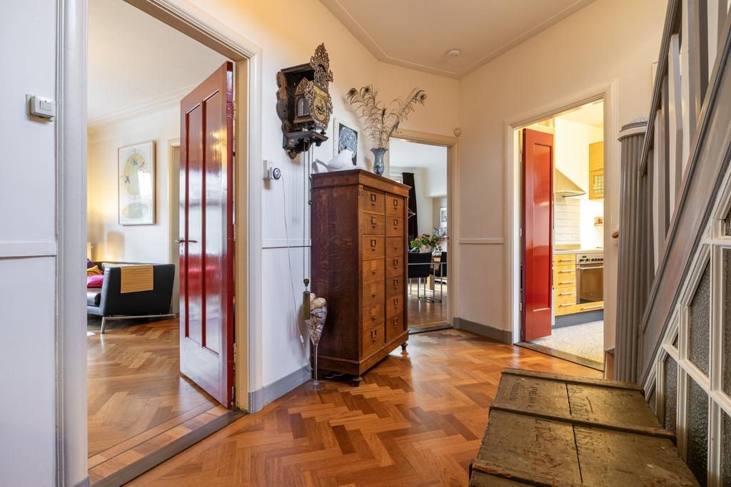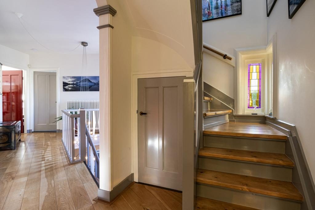 Gelegen in één van de mooiste wijken van Arnhem bevindt zich deze prachtige villa met een woonoppervlakte van 227m². Deze villa is gebouwd in 1926 en vele oorspronkelijke details zijn vandaag de dag bewaard gebleven die het karakter van het pand benadrukken. De villa onderscheidt zich door haar ruimtelijke en niet alledaagse ontwerp. Met een unieke oriëntatie op het zuidoosten, zuiden en zuidwesten, baadt de woning in natuurlijk licht gedurende de dag. Het bijzondere trappenhuis en de aparte trap naar de zolderverdieping voegen een extra dimensie toe aan de architectuur van het huis. De oorspronkelijke indeling van de villa is vrijwel geheel bewaard gebleven, wat bijdraagt aan de authentieke uitstraling en charme van het pand. De huidige eigenaren hebben veel aandacht besteed aan moderne comfort met verbeterde isolatie en dat is door de gehele woning terug te zien.