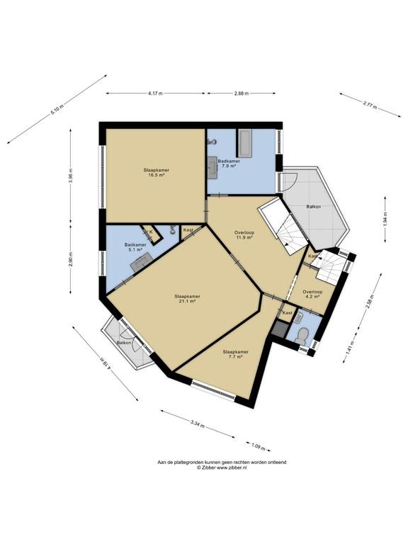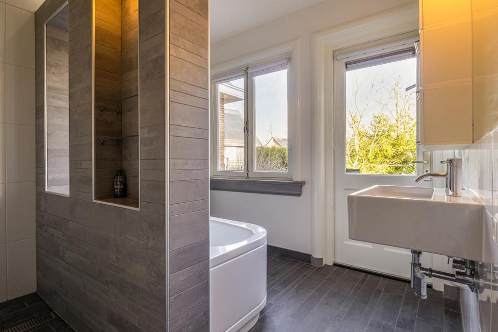 Het bijzondere trappenhuis geeft je toegang tot de eerste verdieping. Deze verdieping telt 3 slaapkamers, 2 badkamers en een separaat toilet. De slaapkamers zijn goed bemeten met een afmeting van 21,1m², 16,5m² en 7,7m². De grootste slaapkamer geeft toegang tot het balkon aan de voorzijde en aan de deze kamer grenst de eerste badkamer. Deze badkamer is voorzien van een inloopdouche, wastafel en een raam om te kunnen ventileren. De tweede badkamer is te bereiken via de royale overloop en is voorzien van een ligbad, inloopdouche en een wastafel. Vanuit deze badkamer krijg je toegang tot het 2e balkon welke is gelegen aan de achterzijde van de woning.