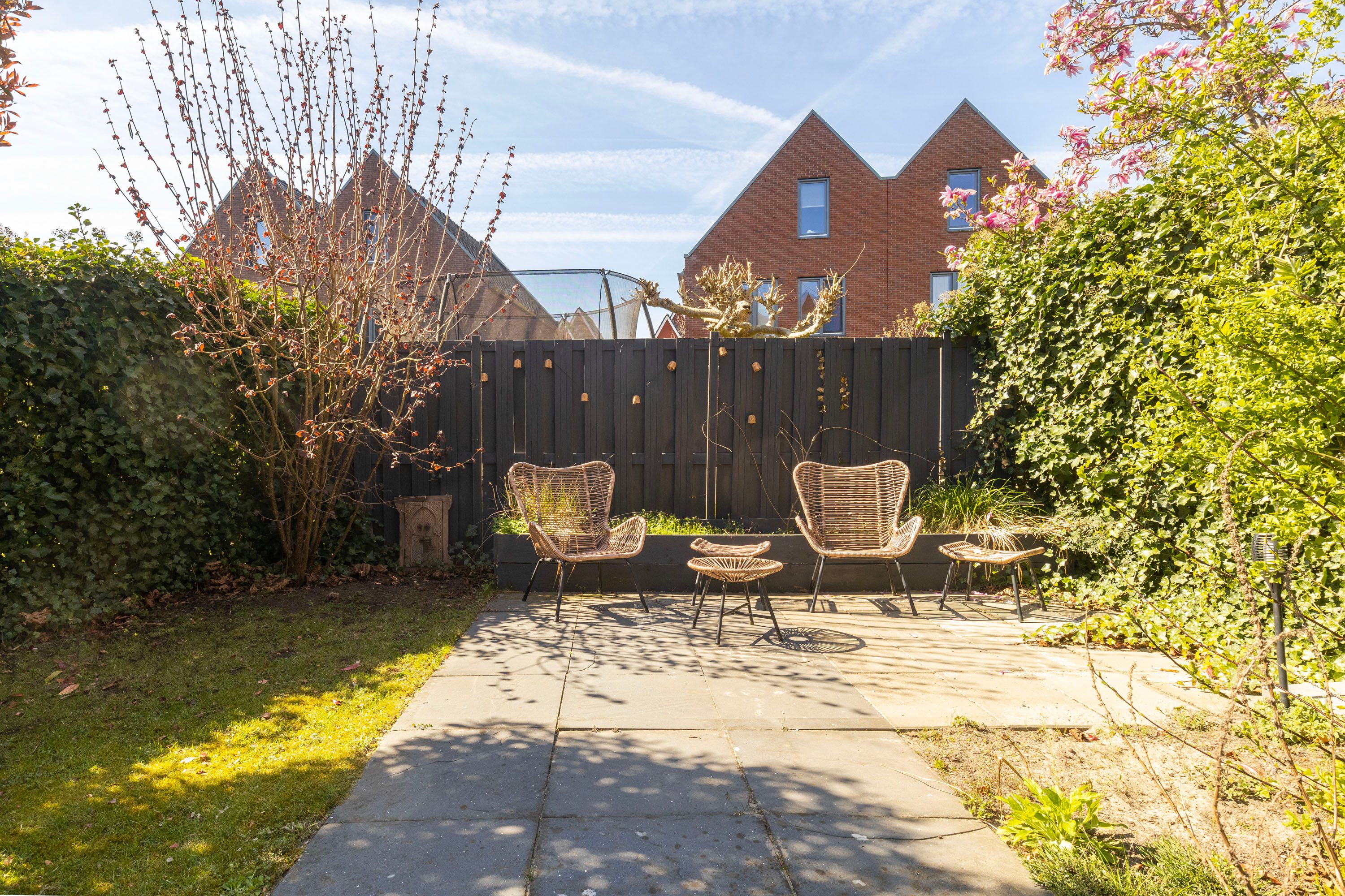 Wat een fantastische tuin! Hier kan je optimaal van het buitenleven, het zonnetje en de rust genieten. Door de huidige inrichting en beplanting ervaar je hier veel privacy en rust. Er is zowel een heerlijk terras grenzend aan de woonkamer als achterin de tuin, hierdoor kan je altijd genieten van een plekje in de zon of in de schaduw. Ook onder het elektrische zonnescherm kan je genieten van een plekje in de schaduw.
