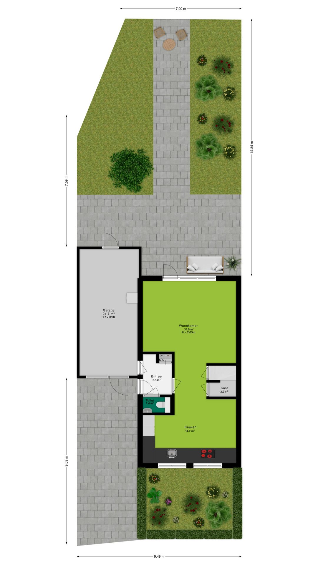 - Eigen oprit met parkeerplaats en laadpaal, garage en zonnige tuin op het zuidwesten