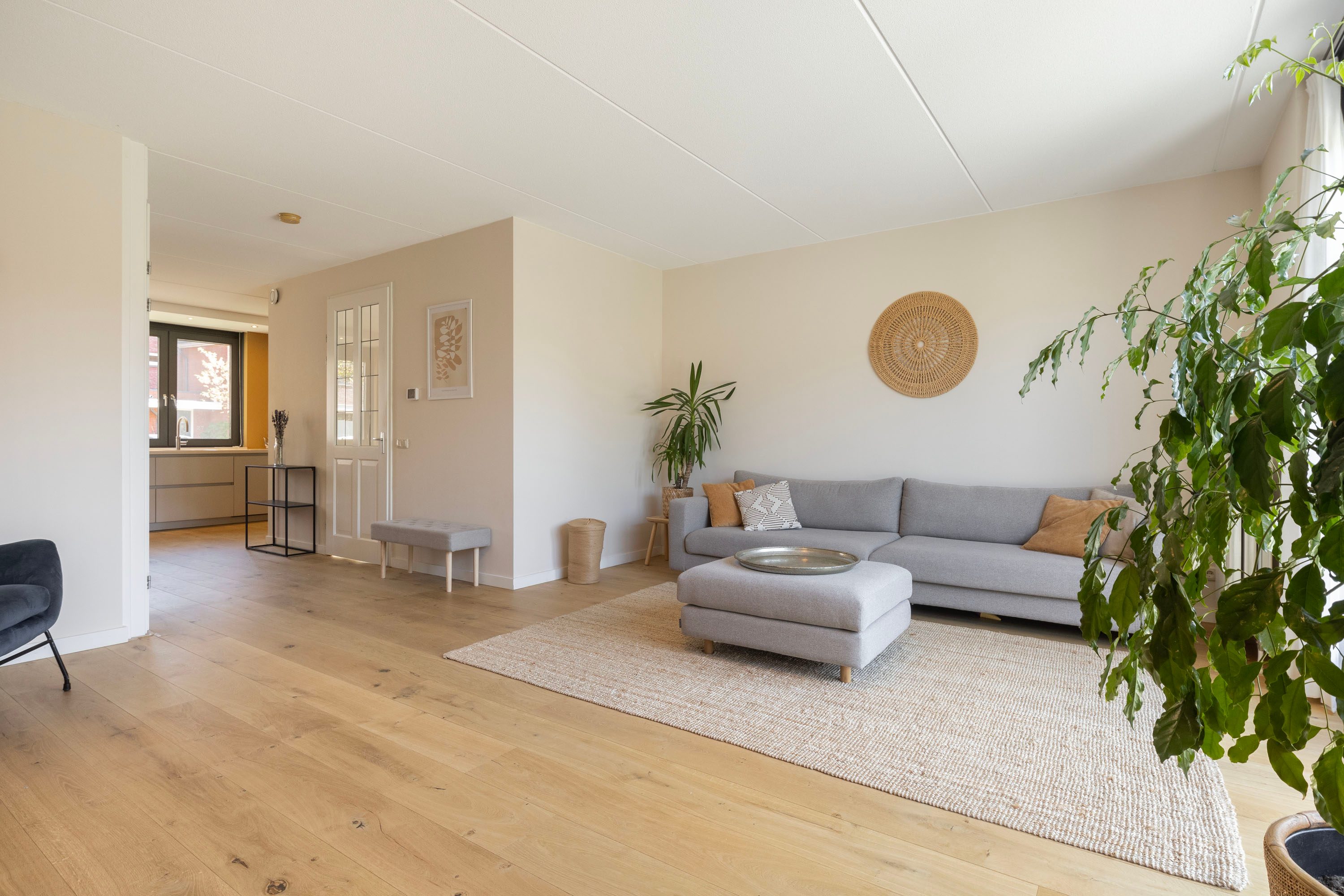Via een eigen oprit, waar je gemakkelijk de auto op eigen terrein kunt parkeren, bereik je de woning. De entree met ruime hal, meterkast, inpandige toegang tot de garage en toiletruimte geeft tot de leefruimte van de woning. De royale woonkamer is voorzien van een houten parket vloer en heerlijk veel lichtinval door de aanwezige raampartijen. De luxe keuken is geplaatst in 2024 en is gelegen aan de voorzijde van de woning. De keuken is opgesteld in een lichte kleurstelling, voorzien van hoogwaardige keukenkast-indeling en van diverse luxe a-merk inbouwapparatuur, te weten: een kookplaat met geïntegreerde afzuiging, combi-oven/magnetron, koel-/vriescombinatie en een vaatwasser. Tevens beschik je over een trapkast met een fijne bergruimte voor extra voorraad.
