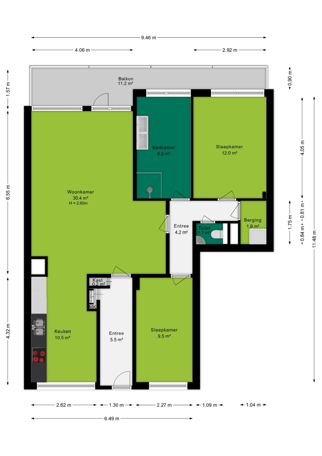 - Ruim balkon van 11 m², gelegen op het zuidoosten