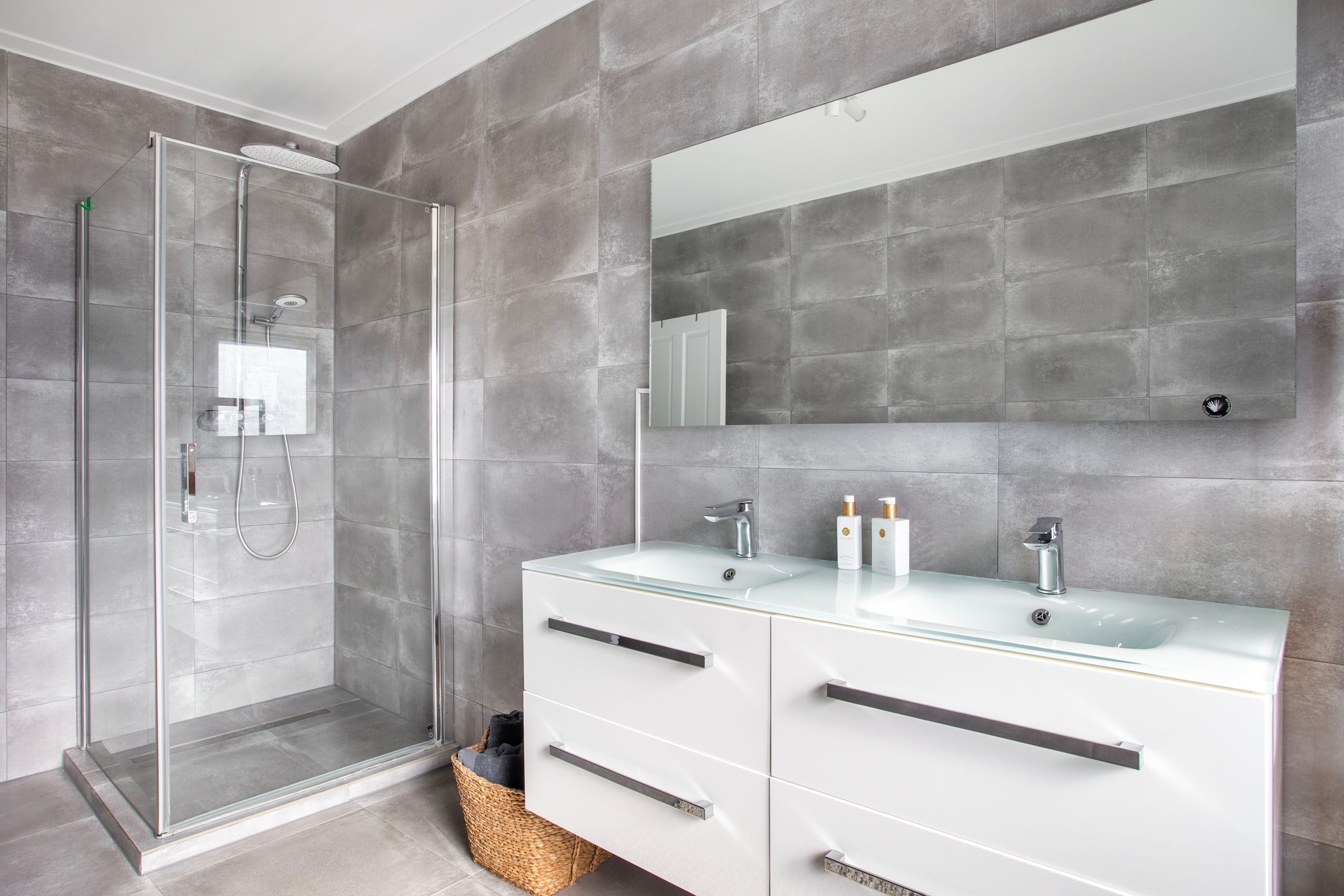 - Luxe, ruime badkamer met douche en dubbel wastafelmeubel