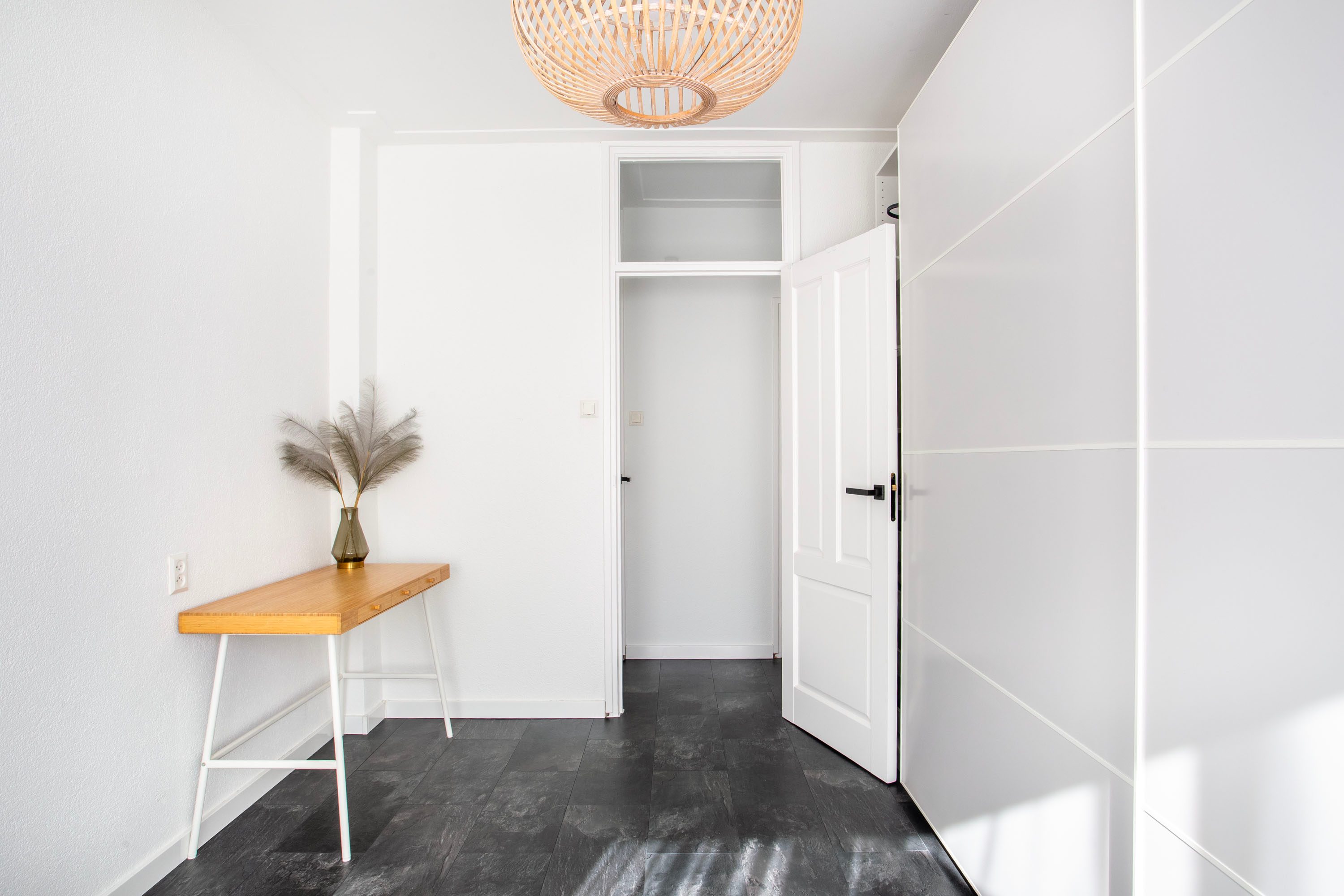Via de tussenhal bereik je de twee slaapkamers, de ruime badkamer, de berg-/wasruimte en het separate toilet. De grootste slaapkamer heeft een oppervlakte van circa 12 m². De tweede slaapkamer, met circa 10 m², is flexibel in te richten en ideaal als logeerkamer, werkruimte of hobbykamer.