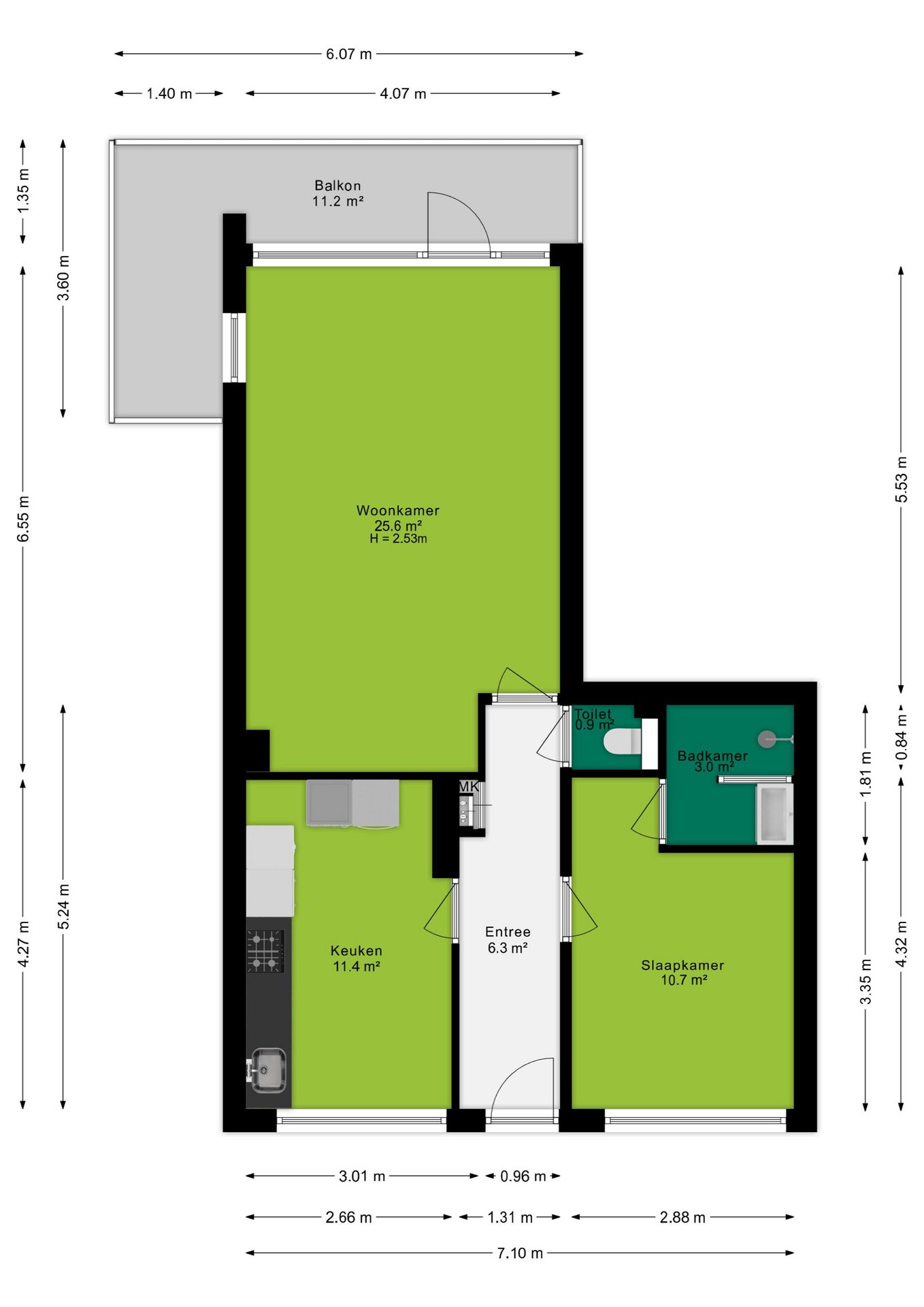 - Balkon op het zuidoosten (11 m²)