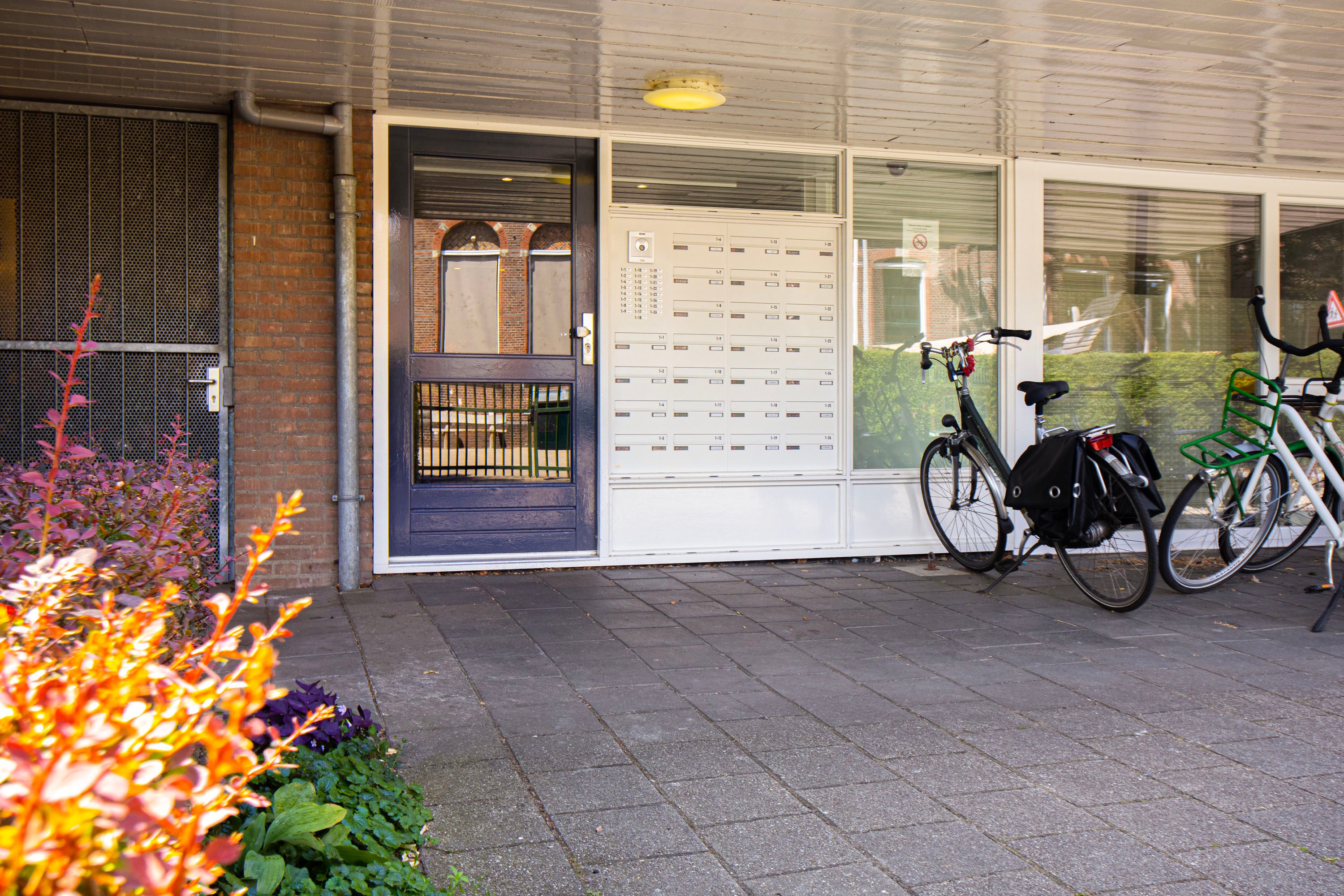 Afgesloten entree met intercominstallatie, brievenbussen, trappenhuis, liftpartij en toegang tot de berging in de kelder.