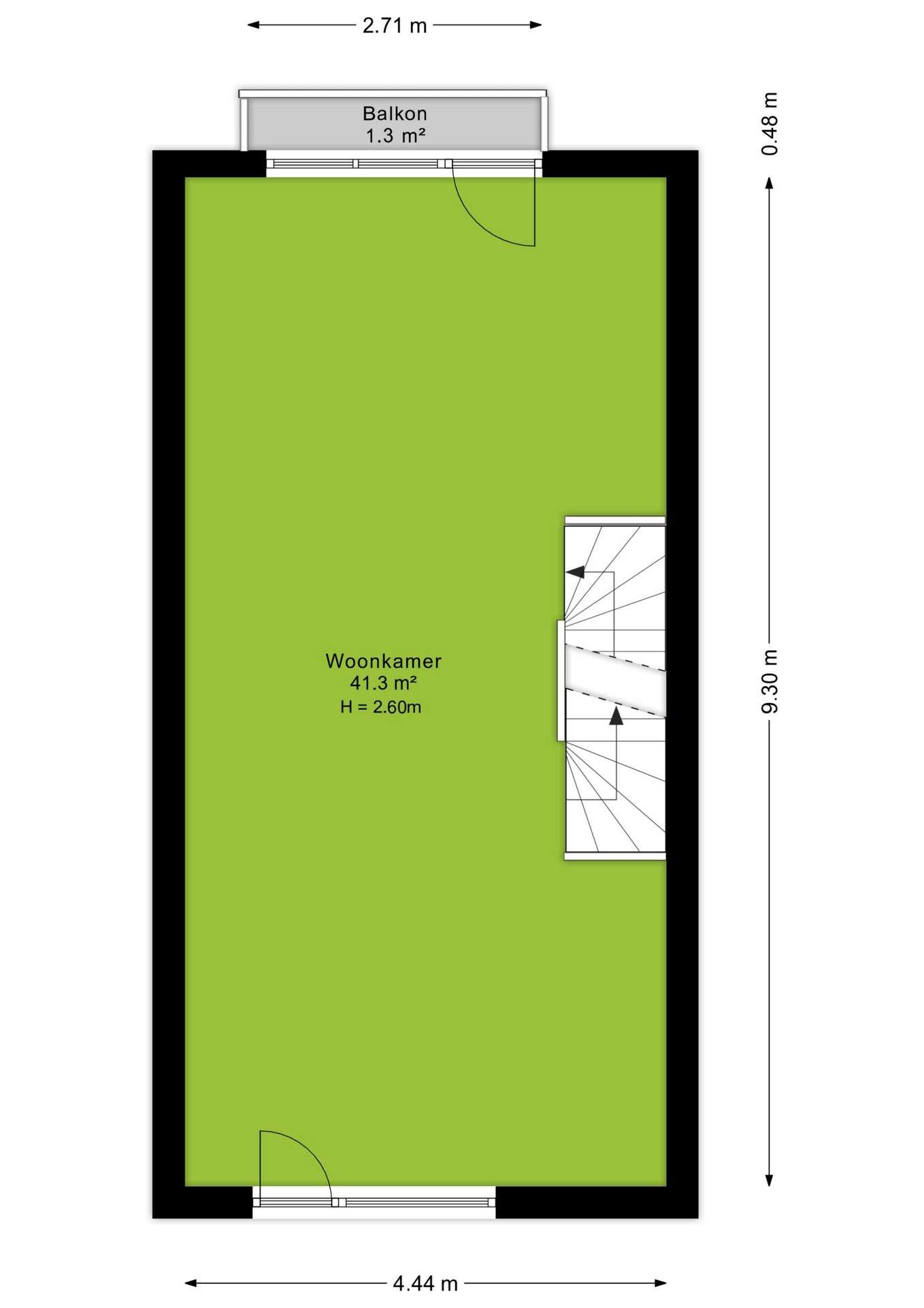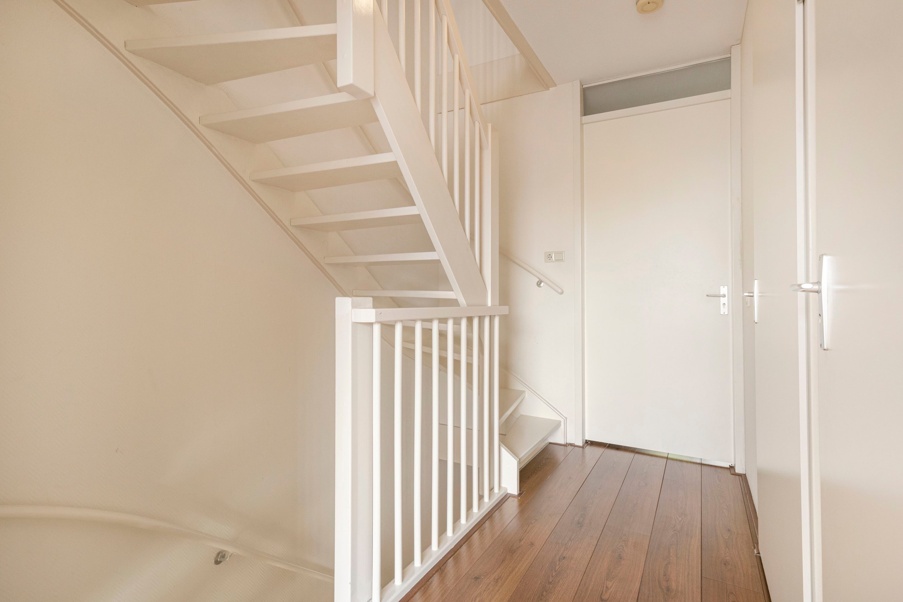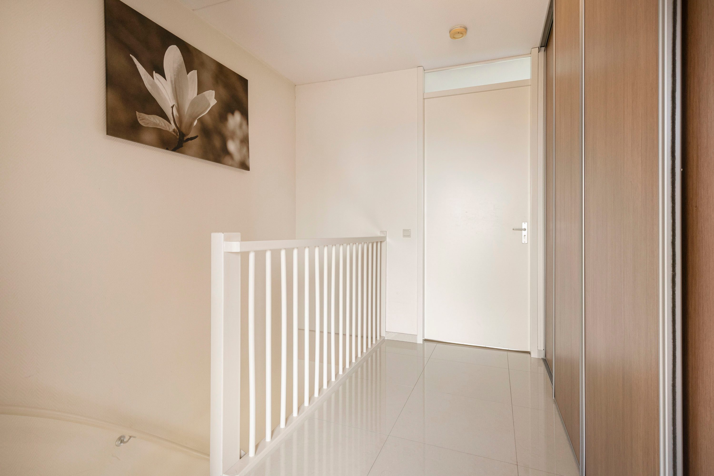 Op de eerste verdieping bevindt zich de royale woonkamer van circa 41 m² met laminaatvloer. Grote raampartijen aan beide zijden zorgen voor veel lichtinval. Ook geniet je hier van vrij en groen uitzicht. Aan de achterzijde is een klein balkon aanwezig.