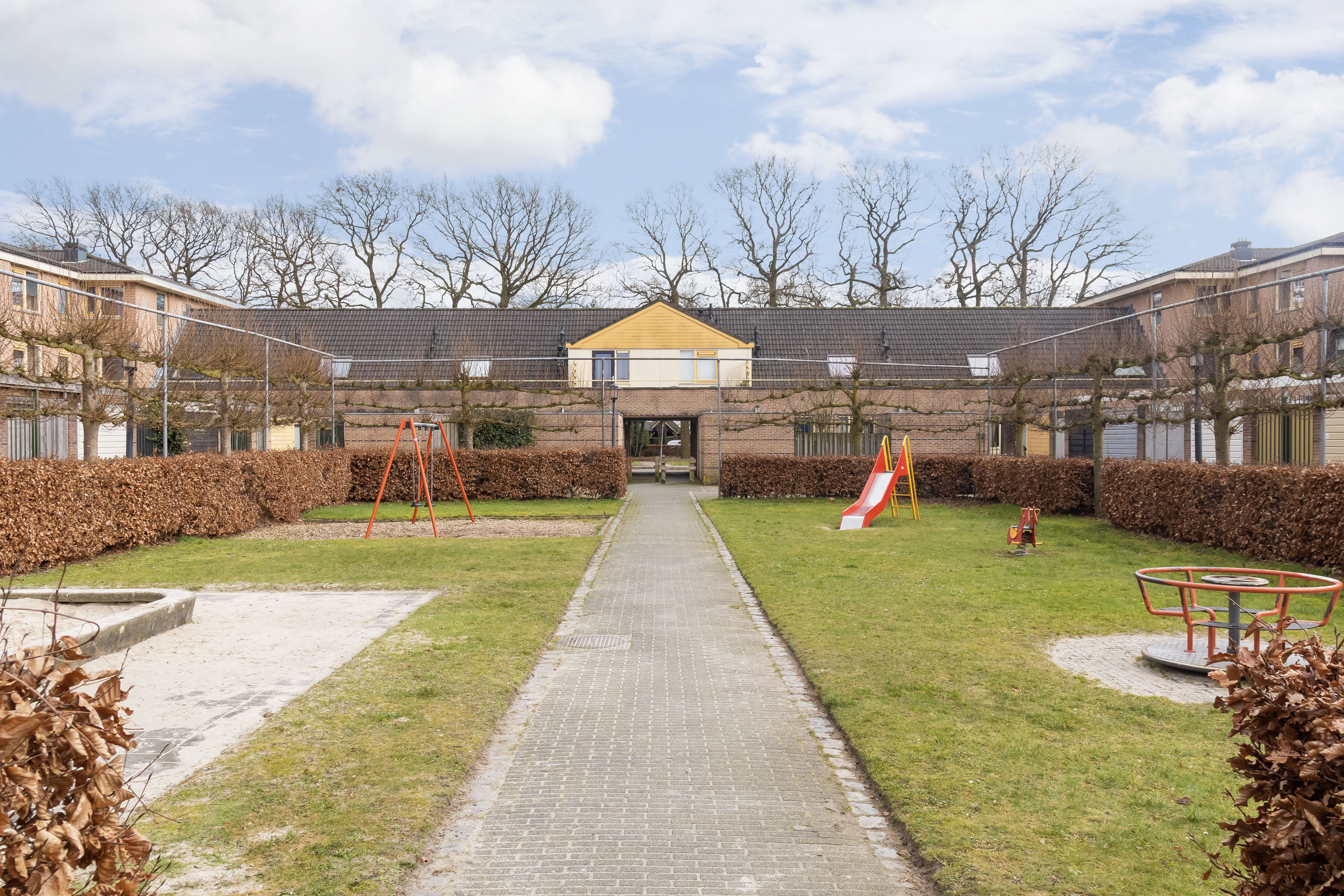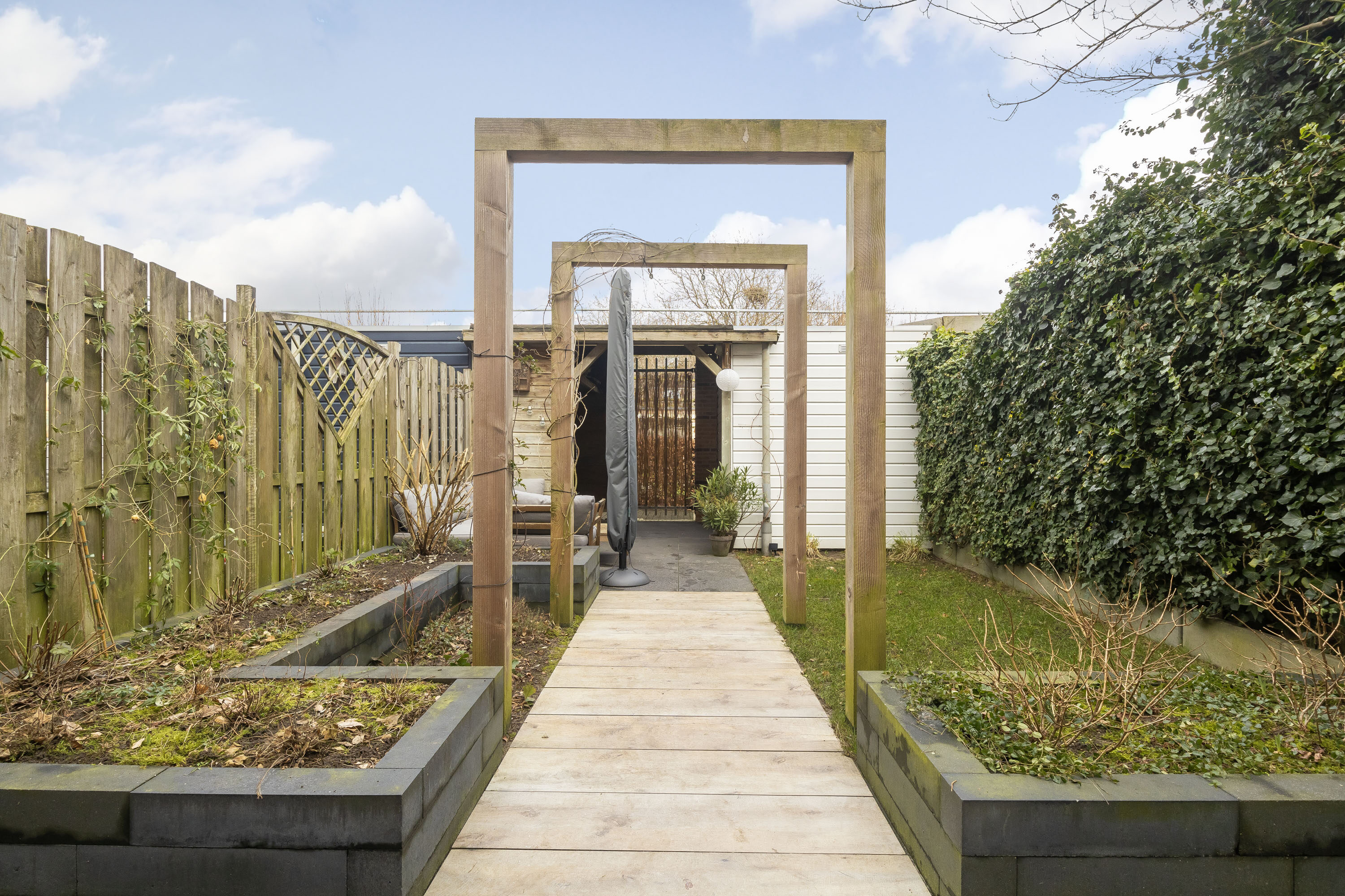 Via de deur in de woonkamer stap je de tuin in. De tuin is netjes aangelegd en verderop kun je heerlijk van de zon genieten. Achterin bevindt zich een houten berging. De tuin is ook bereikbaar via een achterom.